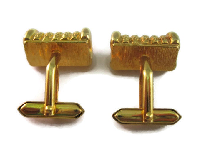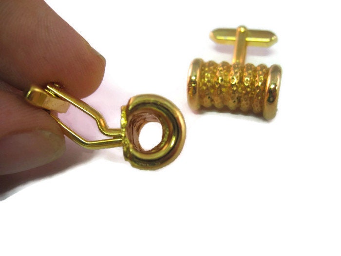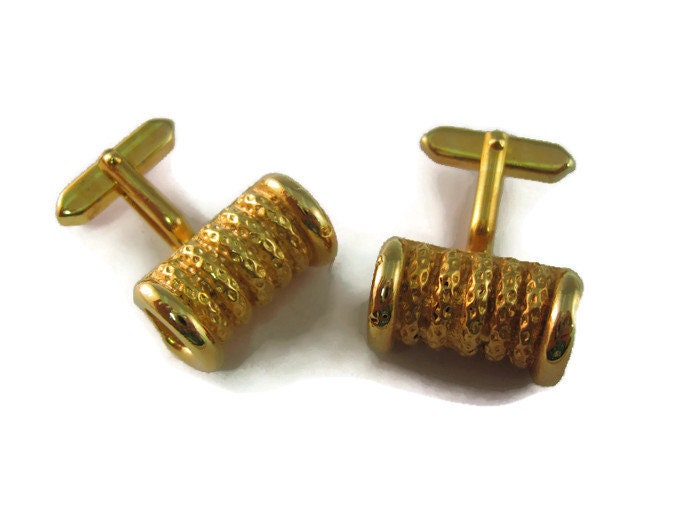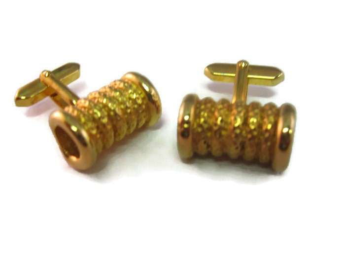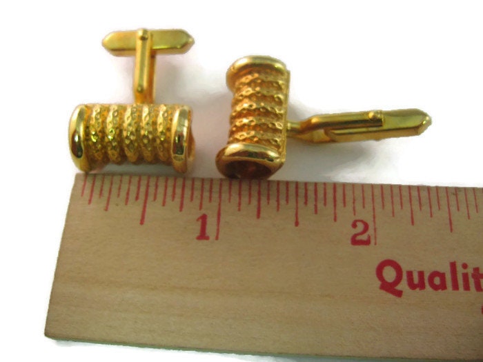 Vintage Cufflinks for Men: Brilliant Gold Tone Textured Art Tube Design