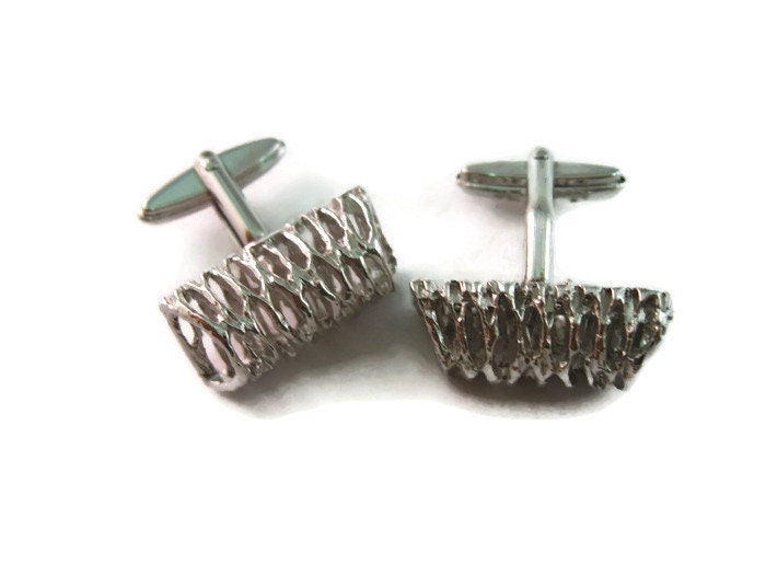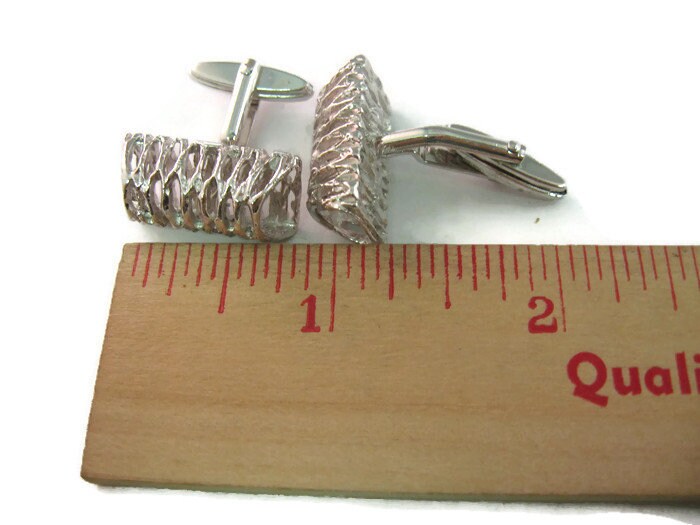 Vintage Cufflinks for Men: Silver Tone Textured Tube Art Design