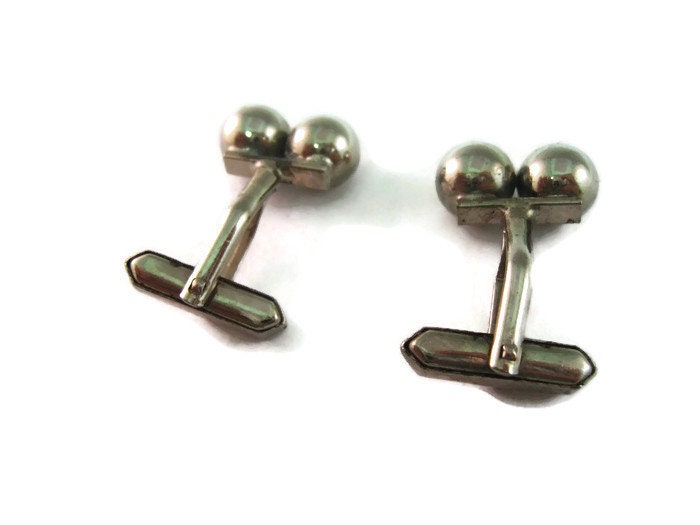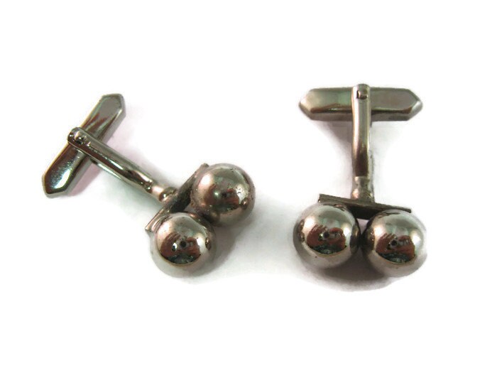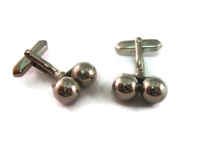 Vintage Cufflinks for Men: Double Ball Silver Tone Design