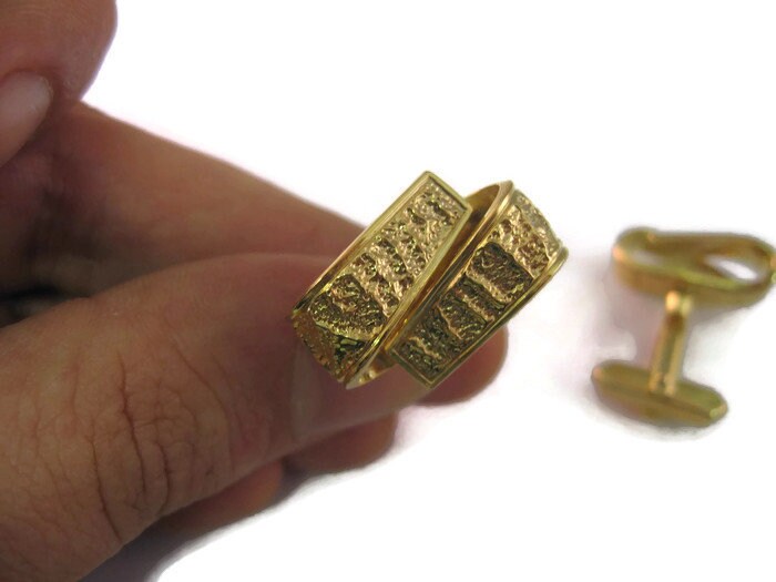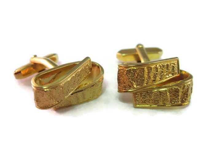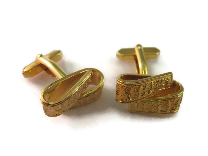 Vintage Cufflinks for Men: Gorgeous Textured Gold Tone Loop Design