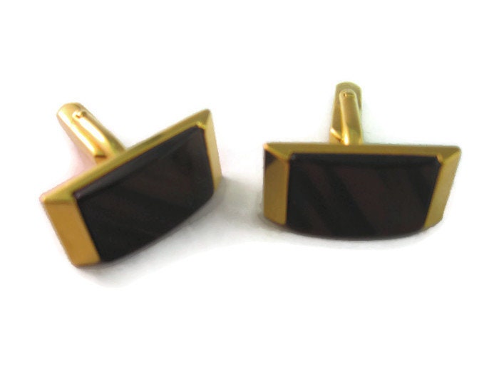 Vintage Cufflinks for Men: Brilliant Dark Opalescent Gold Tone Design