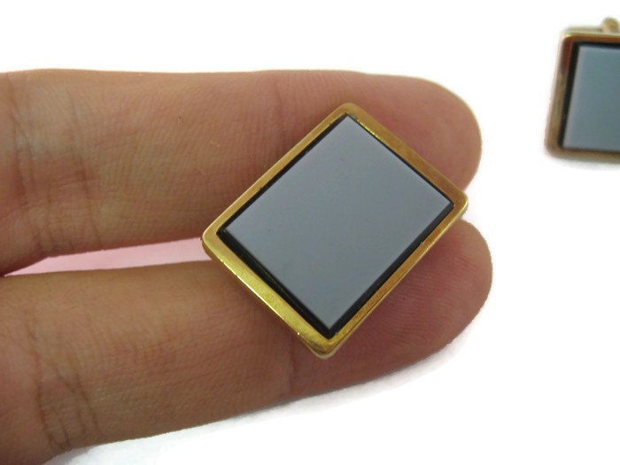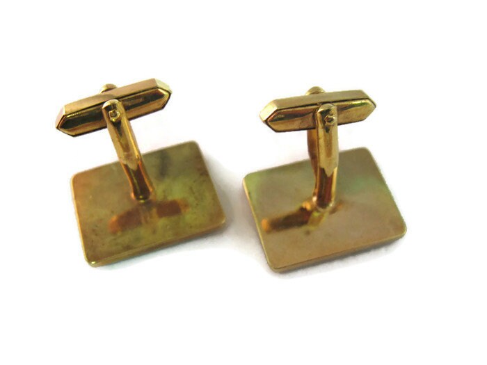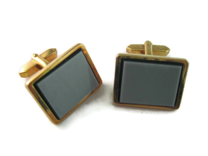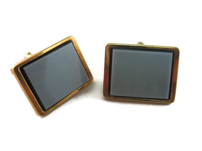Vintage Cufflinks for Men: Sleek & Classic Design Gold Tone Rectangle Pure Gray Center