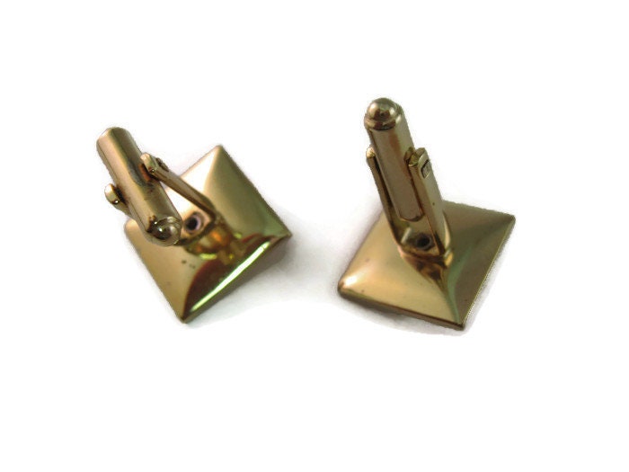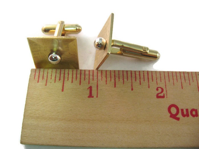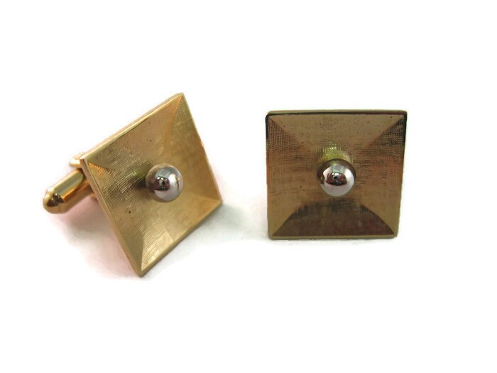 Vintage Cufflinks for Men: Silver Tone Ball Center Concave Textured Gold Tone Square Design