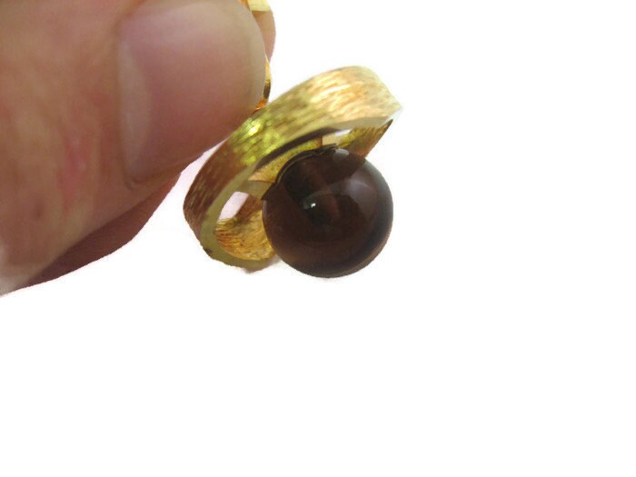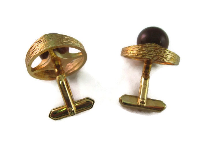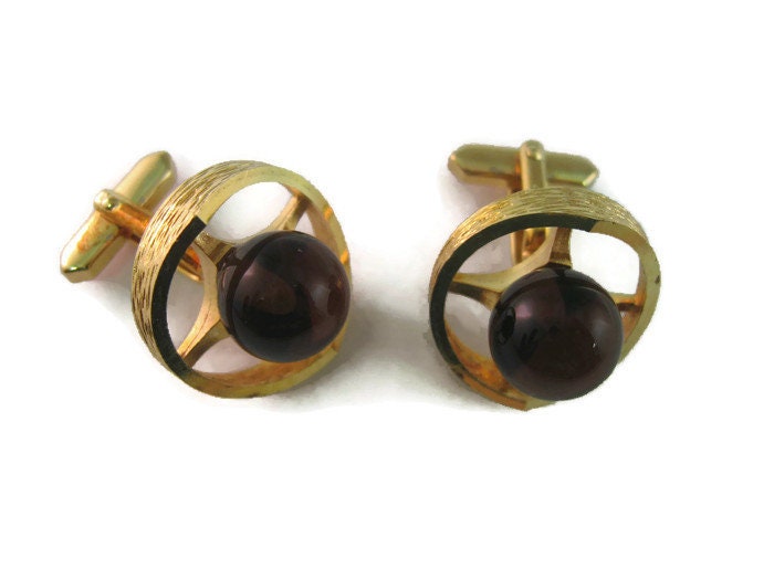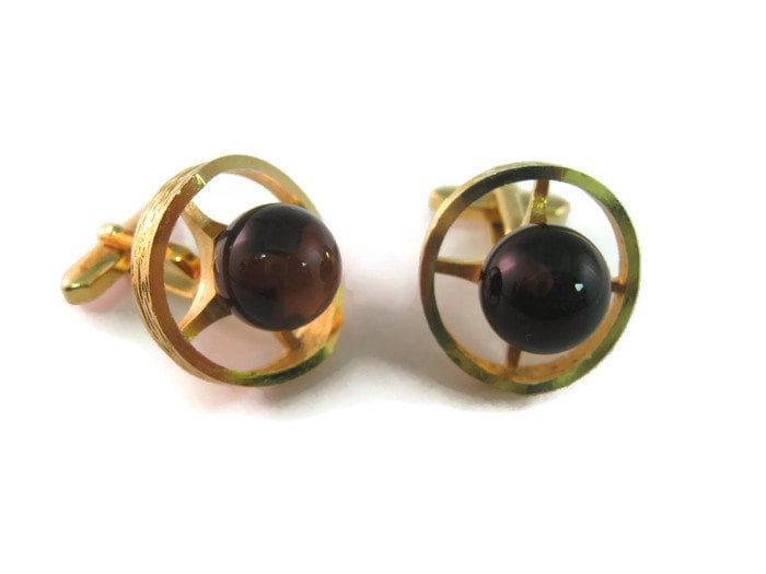 Vintage Cufflinks for Men: Nice Brown Glass Ball Center See Through Gold Tone Circle Design