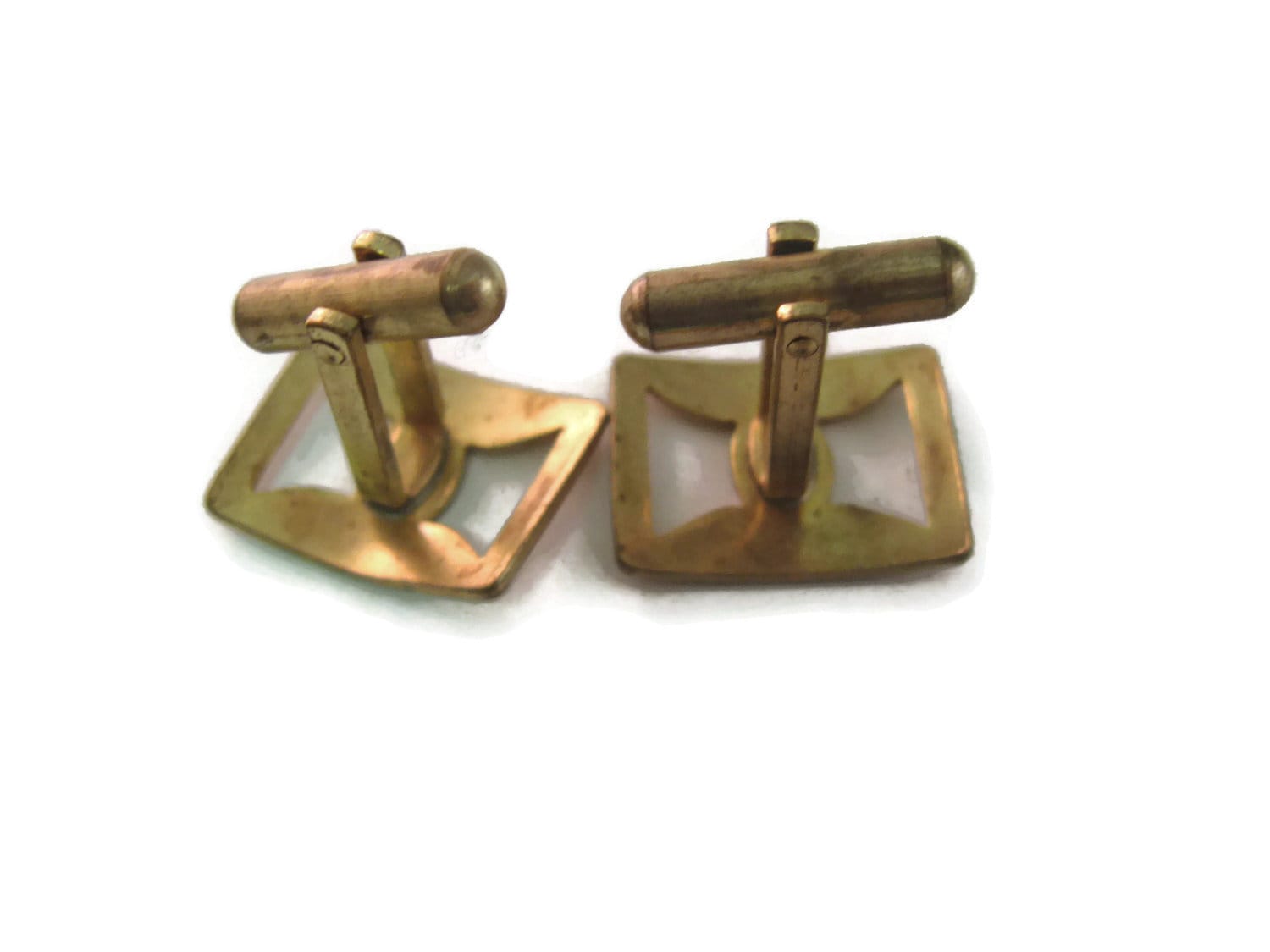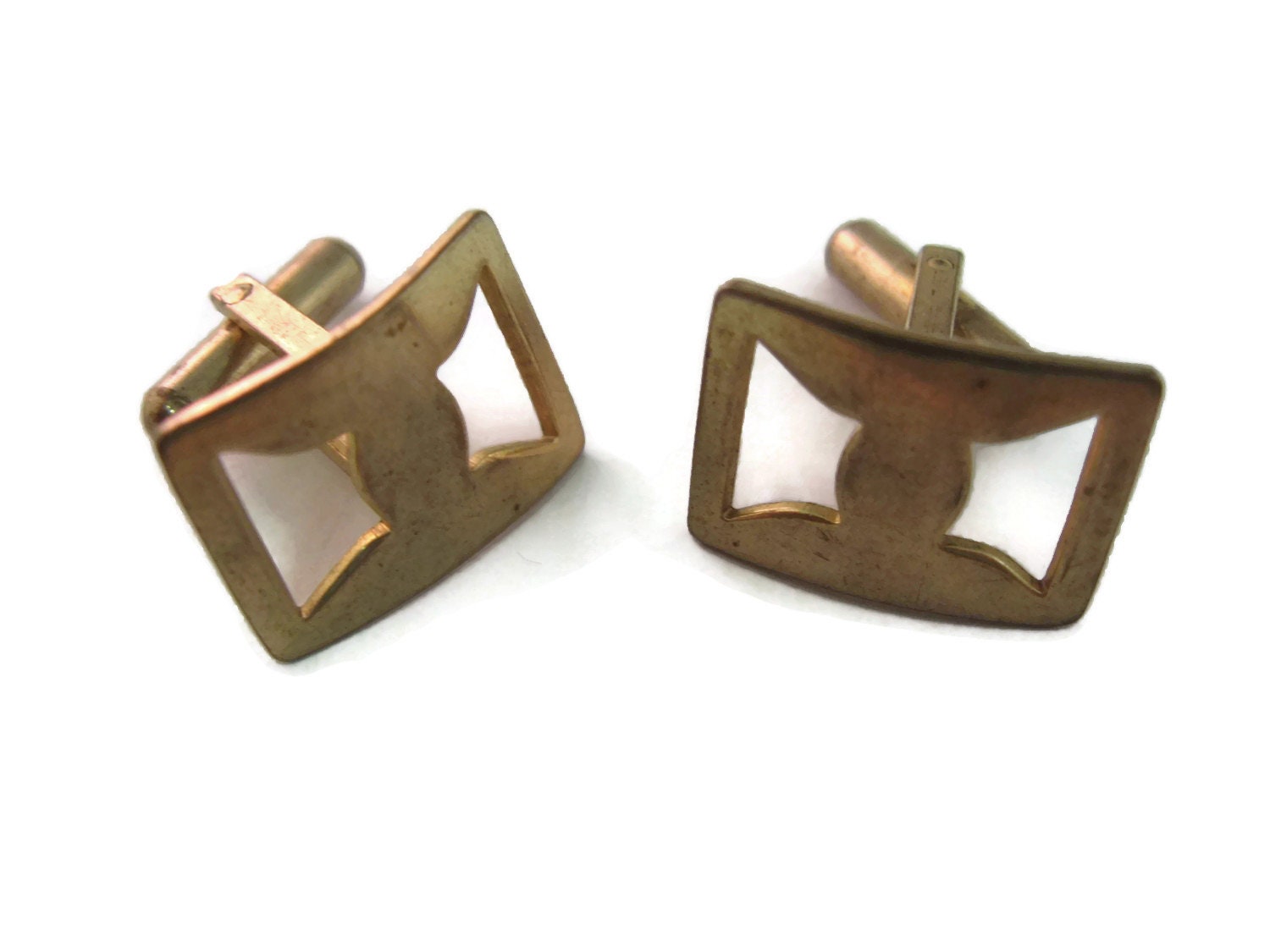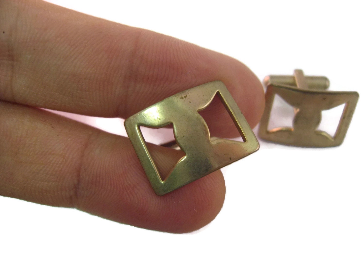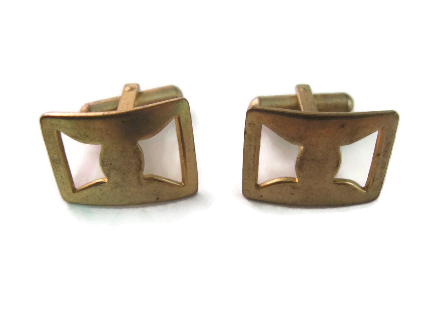 Vintage Cufflinks for Men: Gold Tone See Through Bow Tie Design