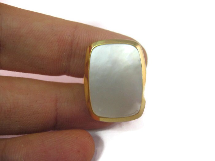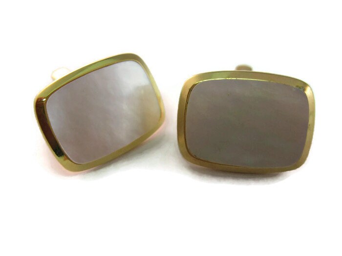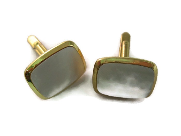 Vintage Cufflinks for Men: Mother of Pearl Beautiful Rounded Corner Rectangle Design