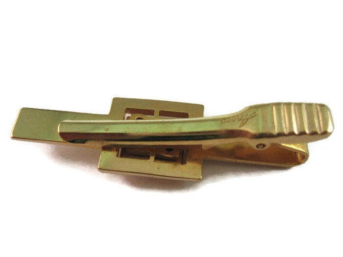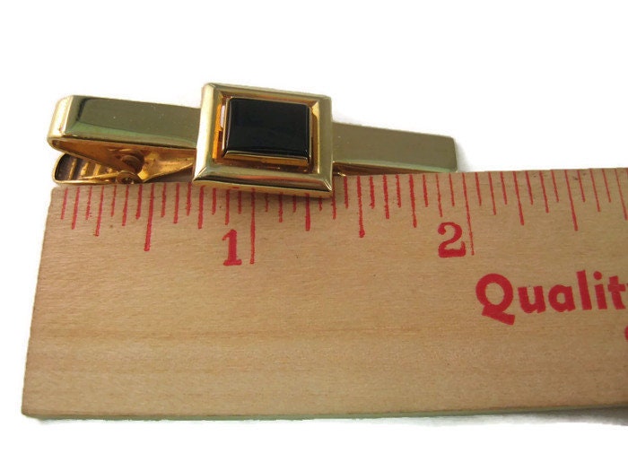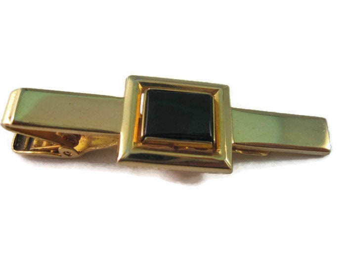 Vintage Men's Tie Bar Clip Jewelry: Nice Classic Black Square Gold Tone Design