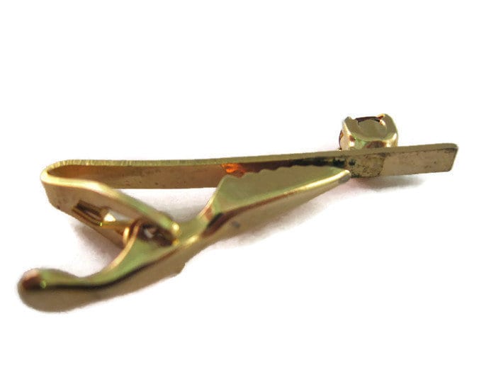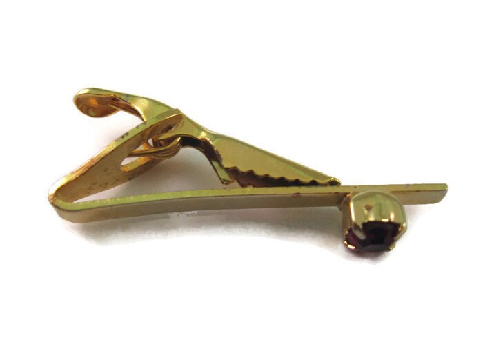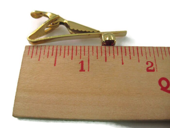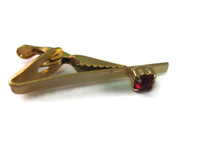 Vintage Men's Tie Bar Clip Jewelry: Red Jewel Gold Tone