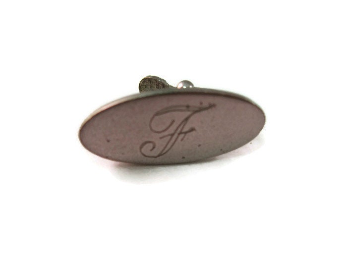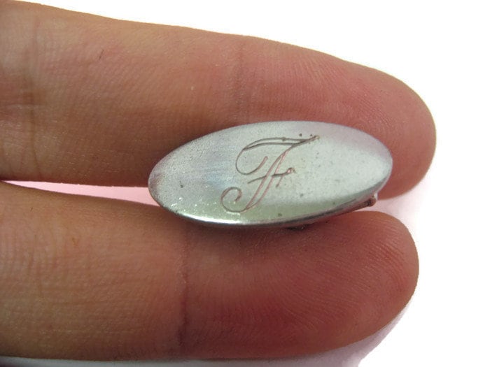 Vintage Men's Tie Bar Clip Jewelry: "F" Letter Initial Oval