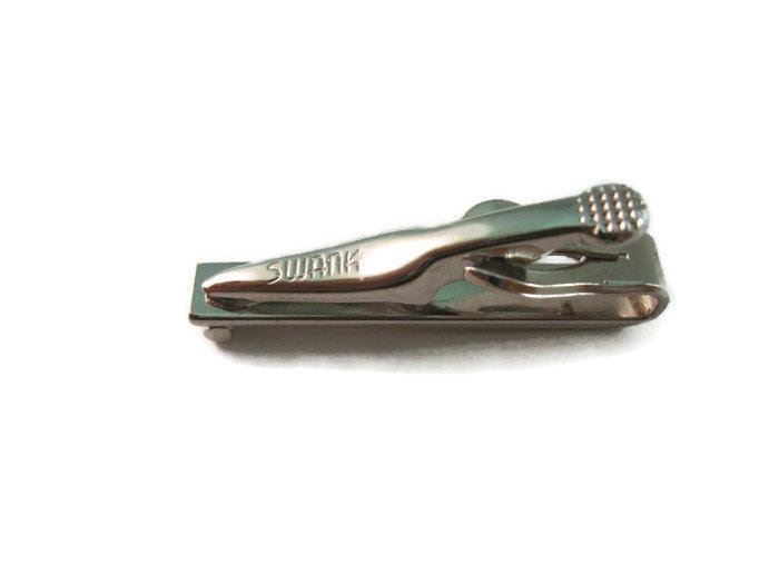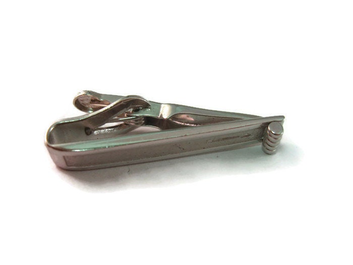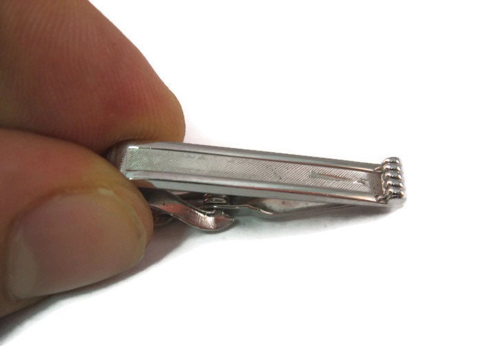 Vintage Men's Tie Bar Clip Jewelry: Stacked Tube Coil End Design Silver Tone
