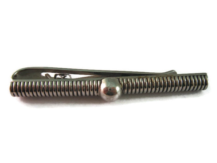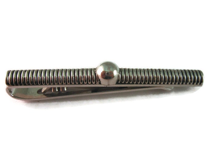 Vintage Men's Tie Bar Clip Jewelry: Very Cool Modernist Coil Ball Silver Tone Design
