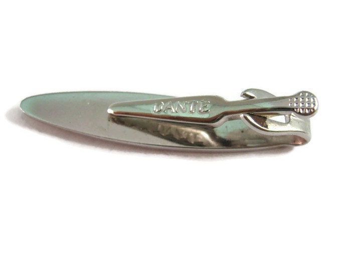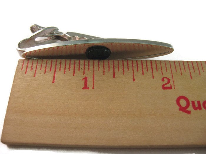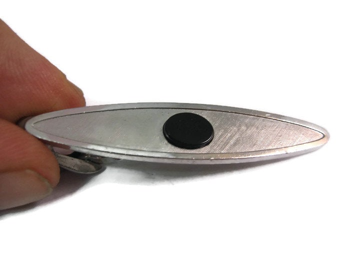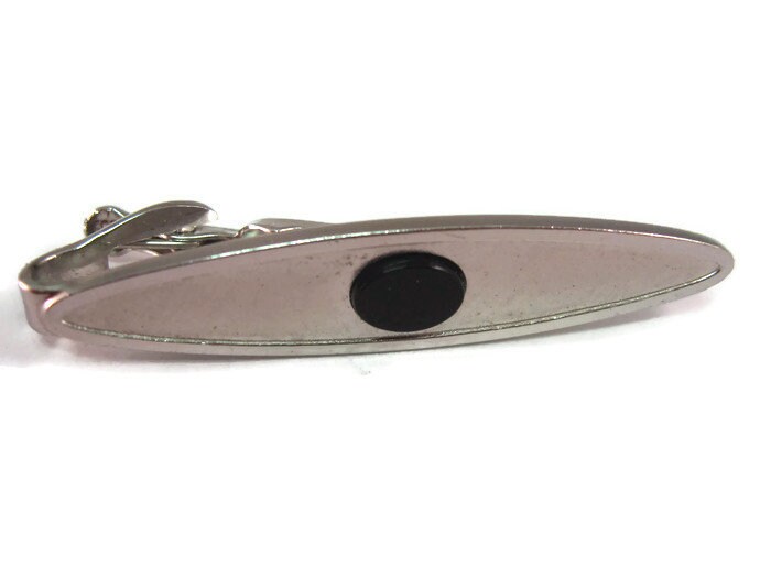 Vintage Men's Tie Bar Clip Jewelry: Classic Black Center Accent Textured Silver Tone Long Oval by Dante