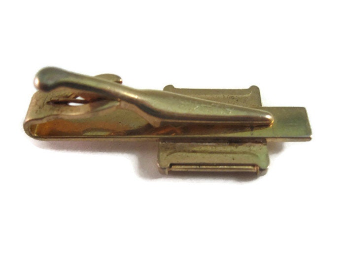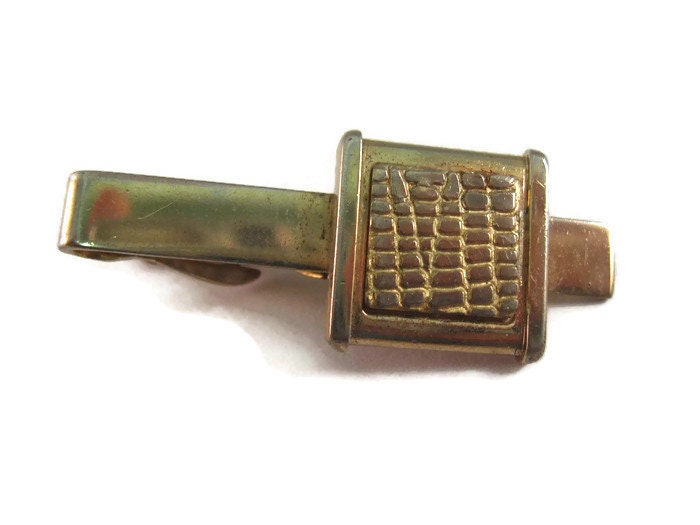 Vintage Men's Tie Bar Clip Jewelry: Alligator Texture Accent Gold Tone Design