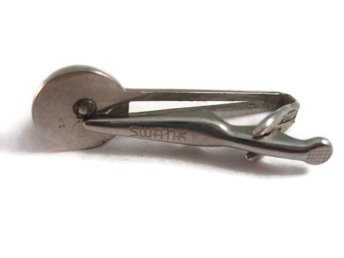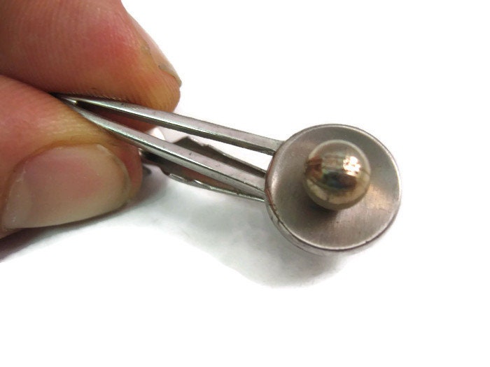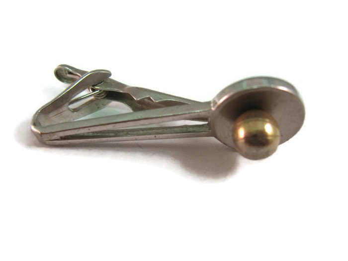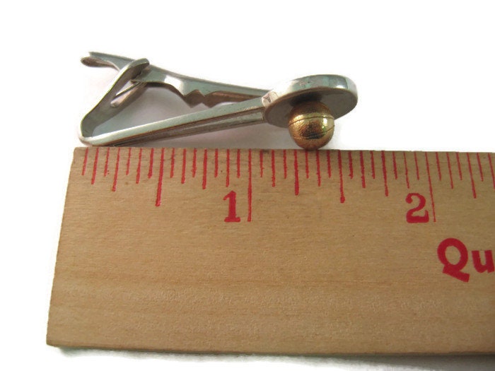 Vintage Men's Tie Bar Clip Jewelry: Small Gold Tone Basketball in Silver Tone Dish Sports Theme See Through Body Design