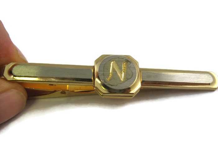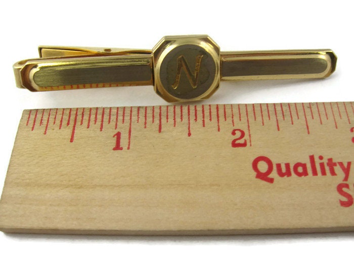 Vintage Tie Bar Clip: N Letter Initial (Obvious Glue Wear on Front)