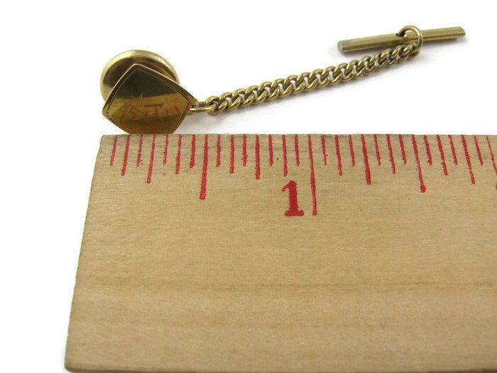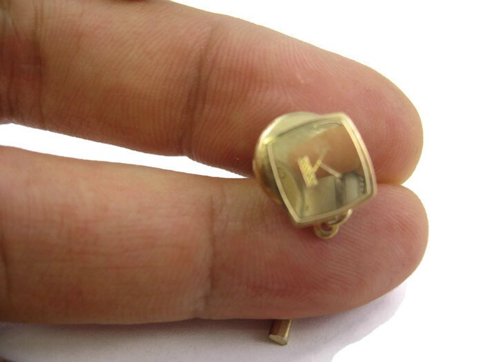 Vintage Tie Tack Tie Pin: Etched "K" Center Gold Tone Rectangle