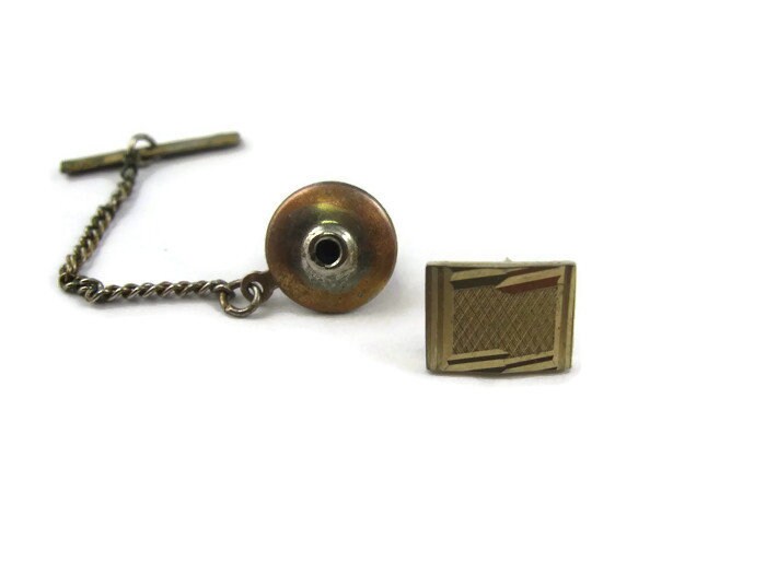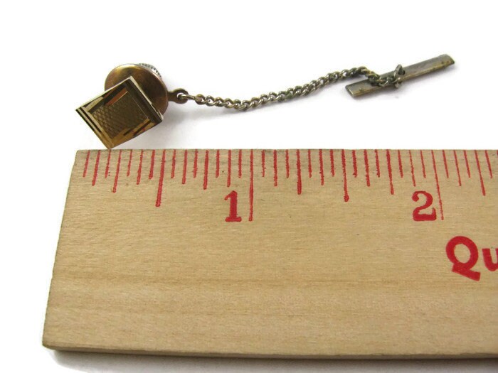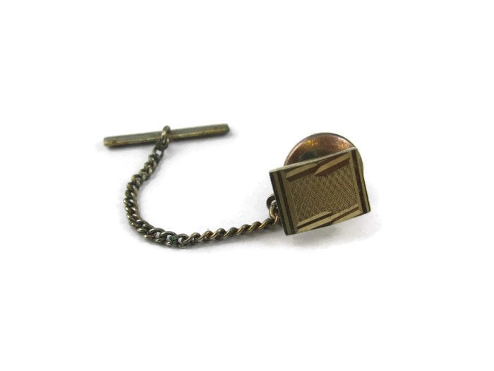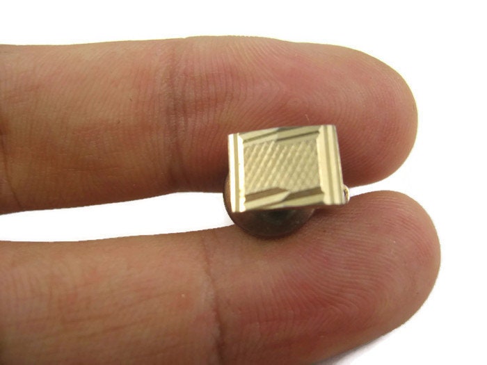 Vintage Tie Tack Tie Pin: Grooved Border Textured Center Gold Tone Rectangle