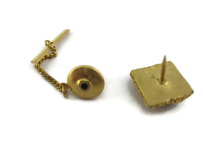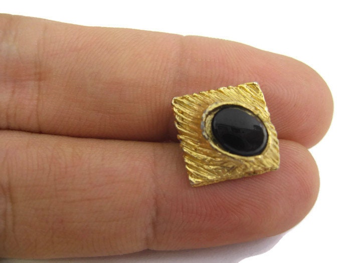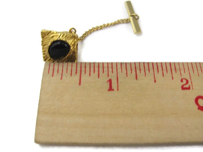 Vintage Tie Tack Tie Pin: Black Accent Gold Tone Art Deco Style Setting