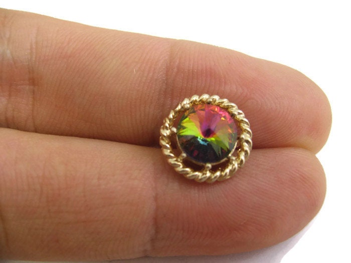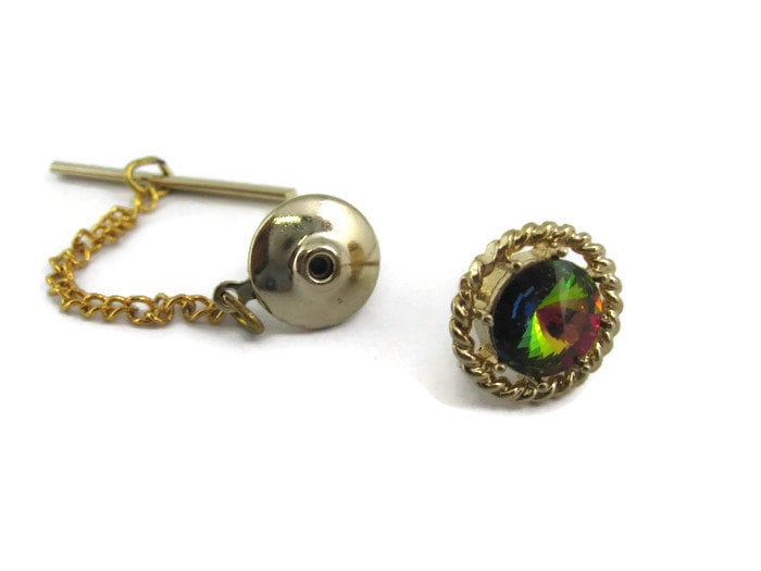 Vintage Tie Tack Tie Pin: Very Nice Rainbow Multi Color Jewel Gold Tone Twist Design Setting ~ This really is a stunning jewelry piece! ~