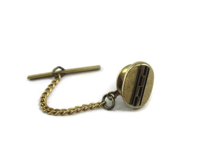 Vintage Tie Tack Pin: Retro Stripe Center Textured Gold Tone