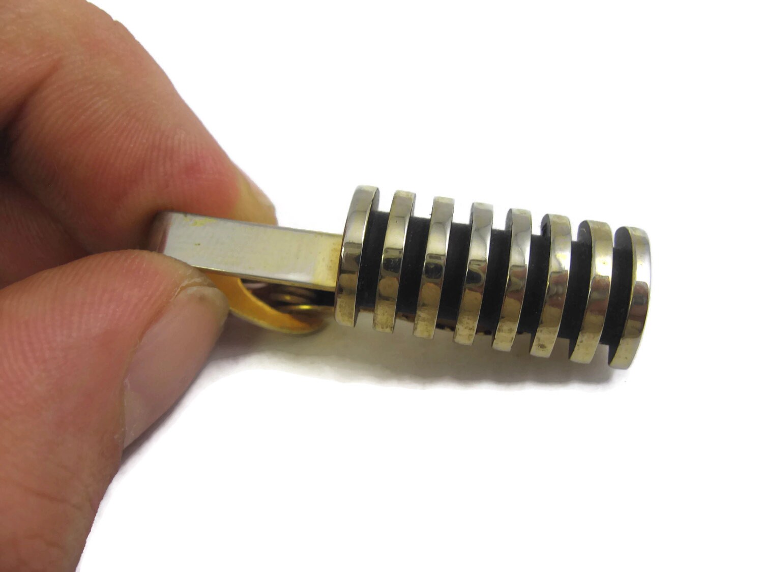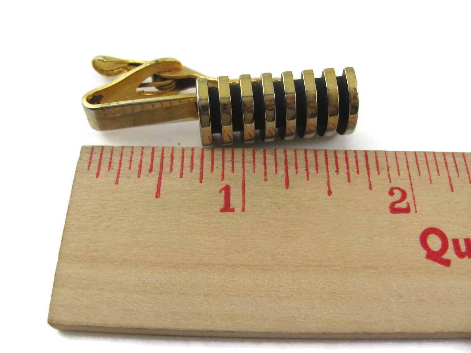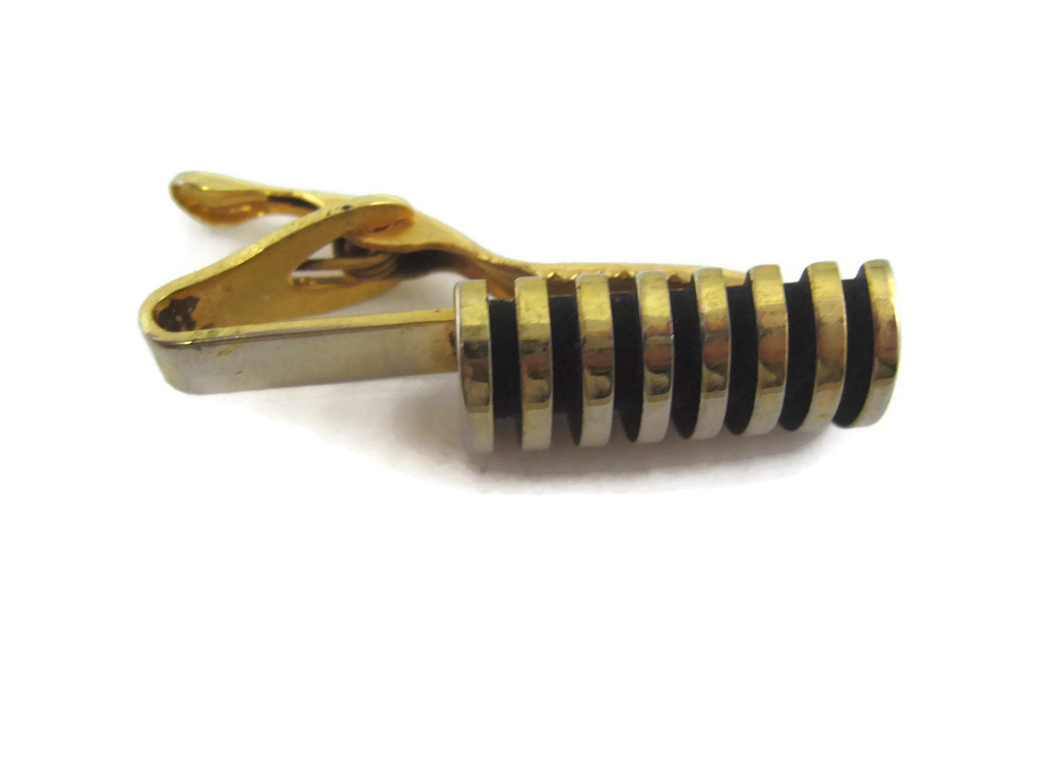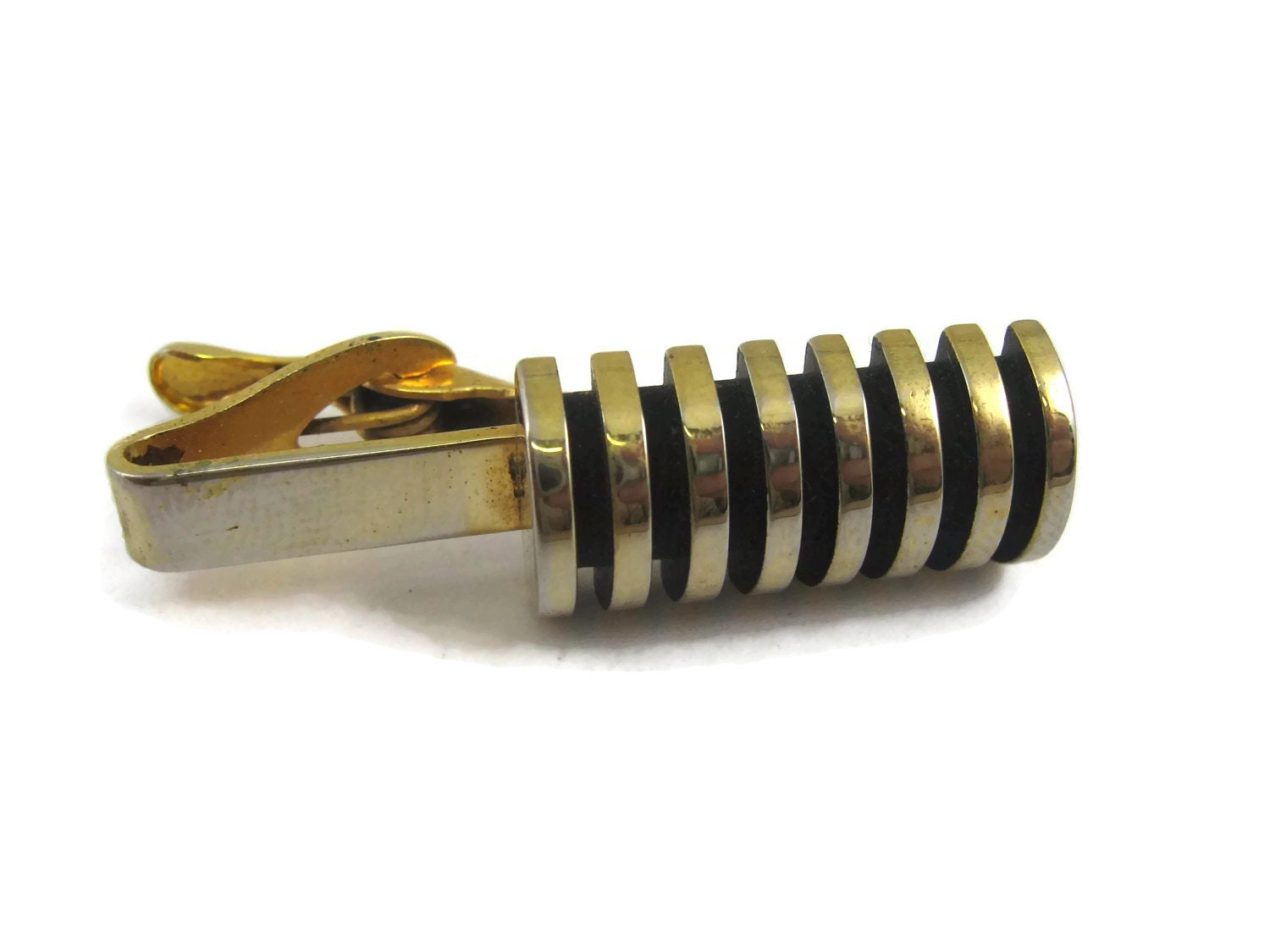 Vintage Tie Bar Clip: Stunning Ridged Cylinder Shape Stack Design