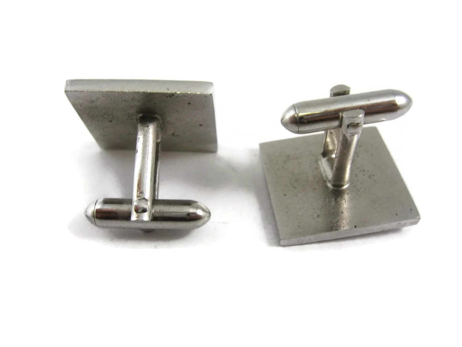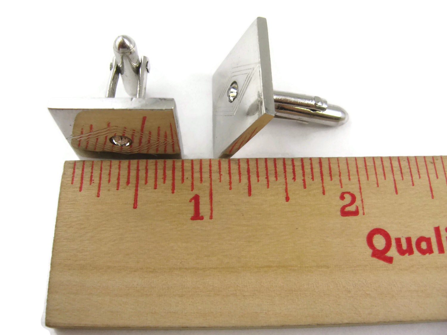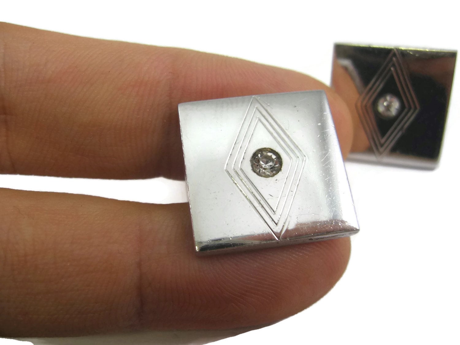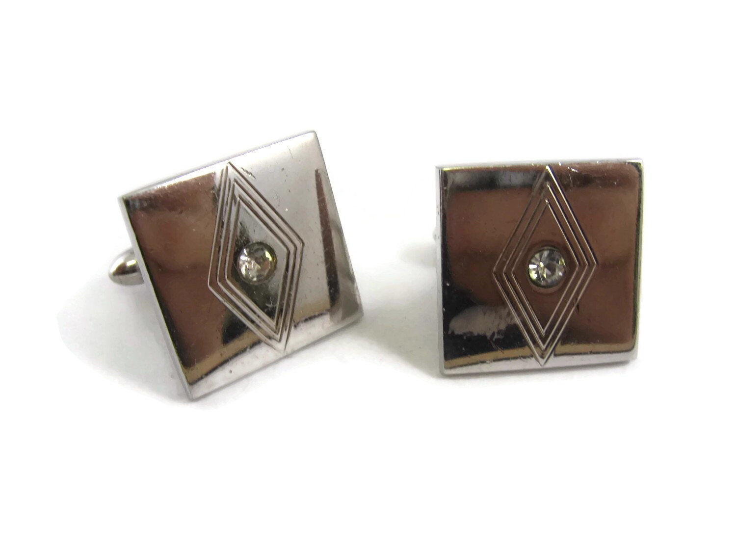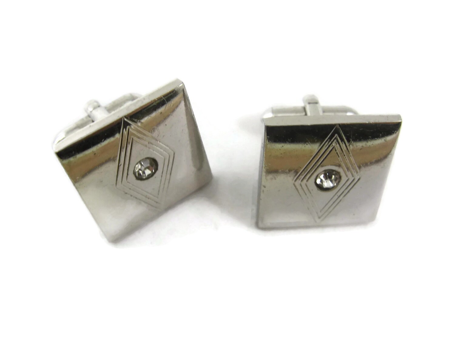 Vintage Cufflinks for Men: Clear Jewel Silver Tone Square