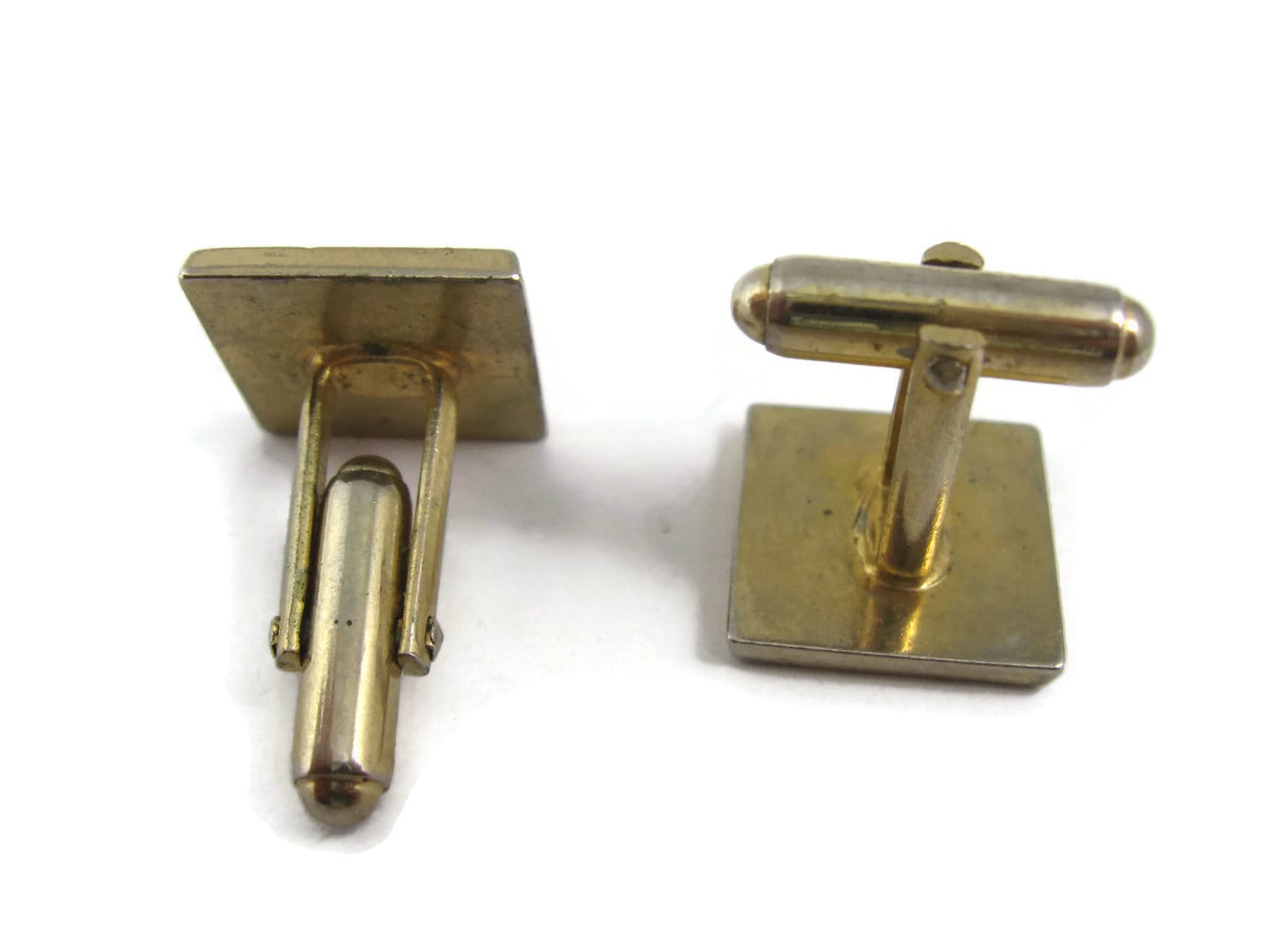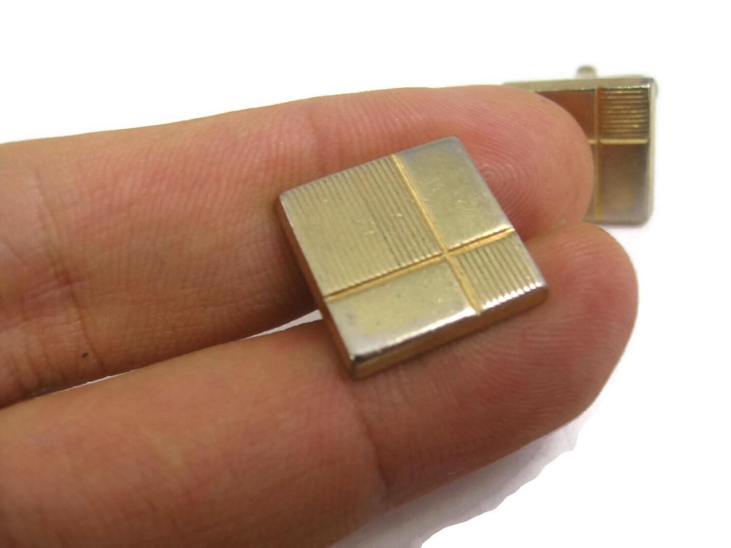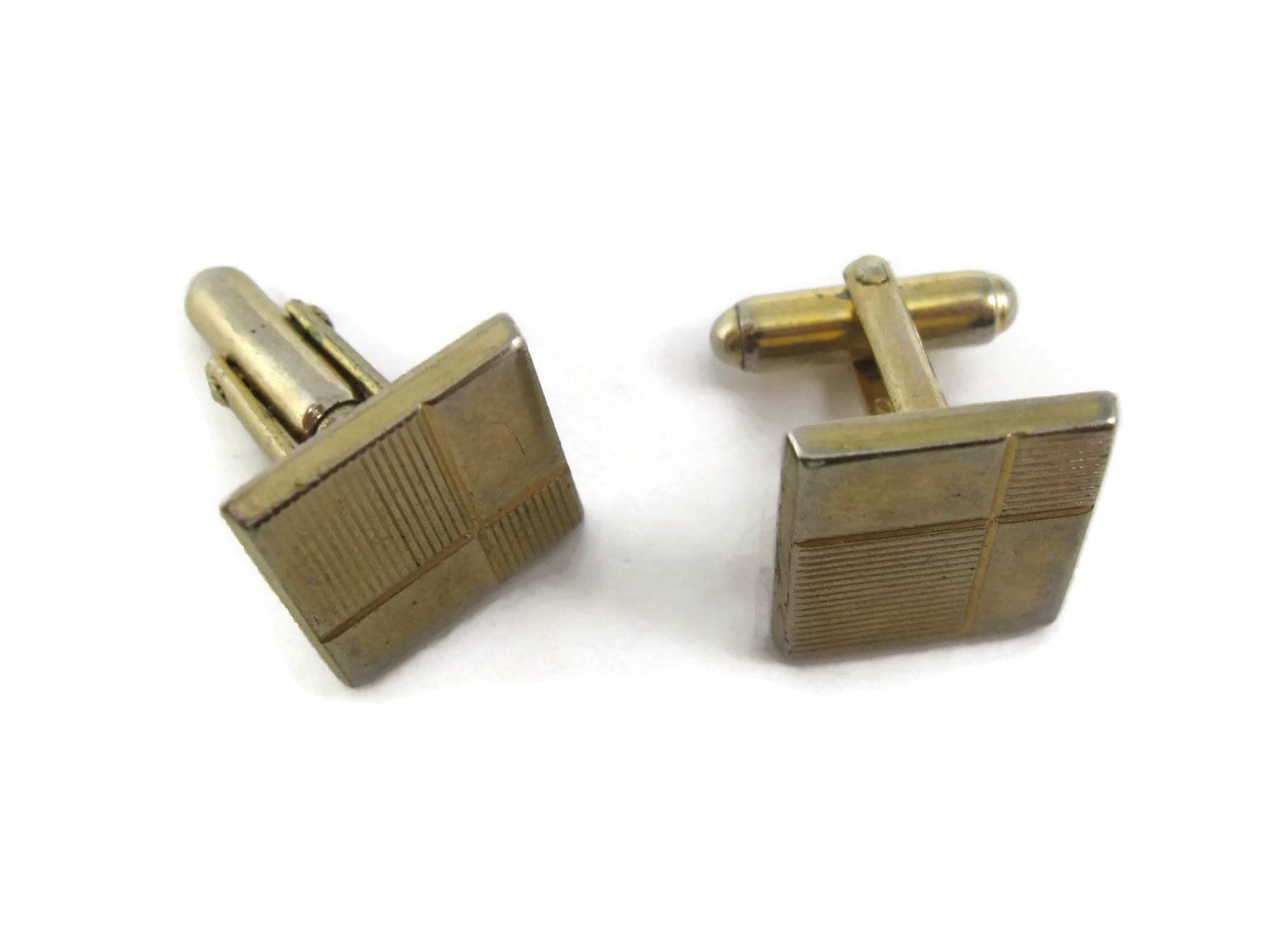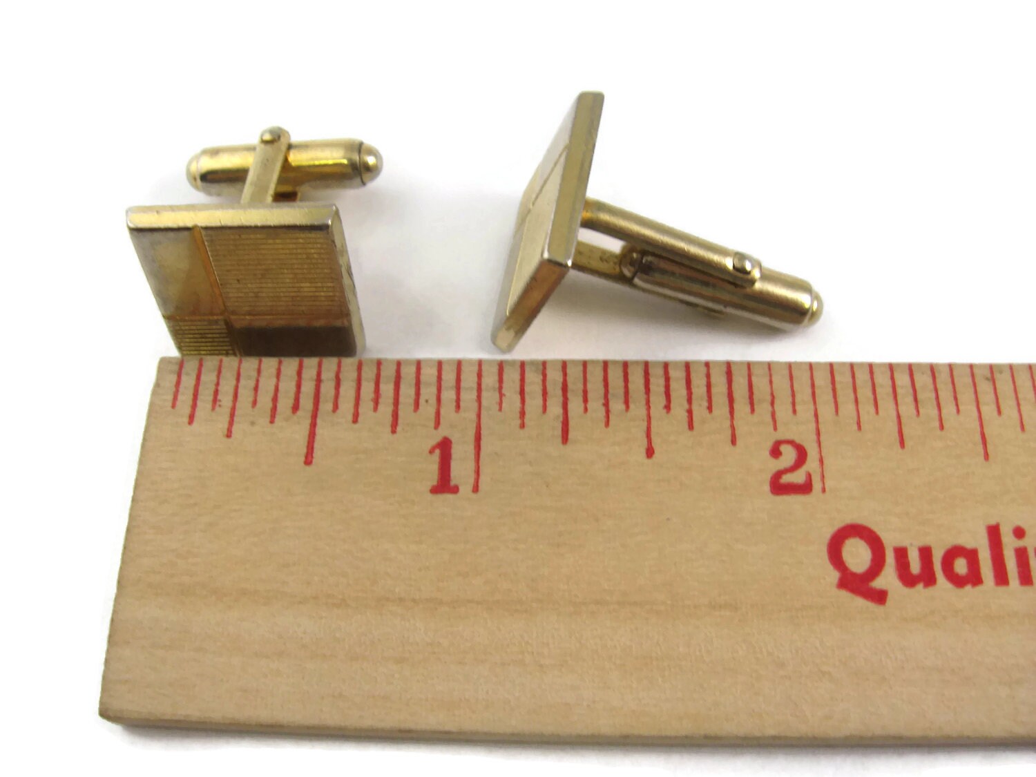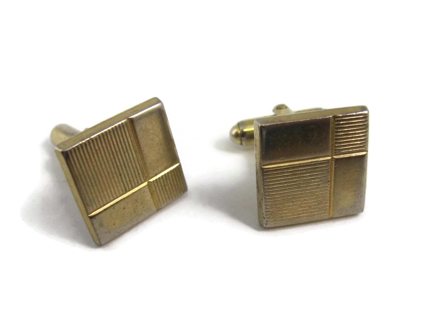 Vintage Cufflinks for Men: Gold Tone Grooved Design Square