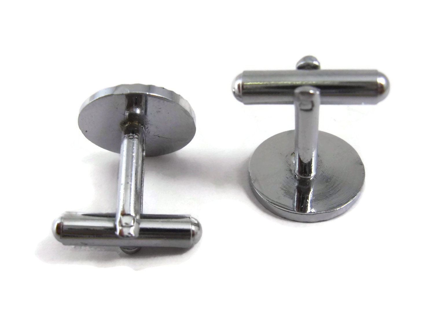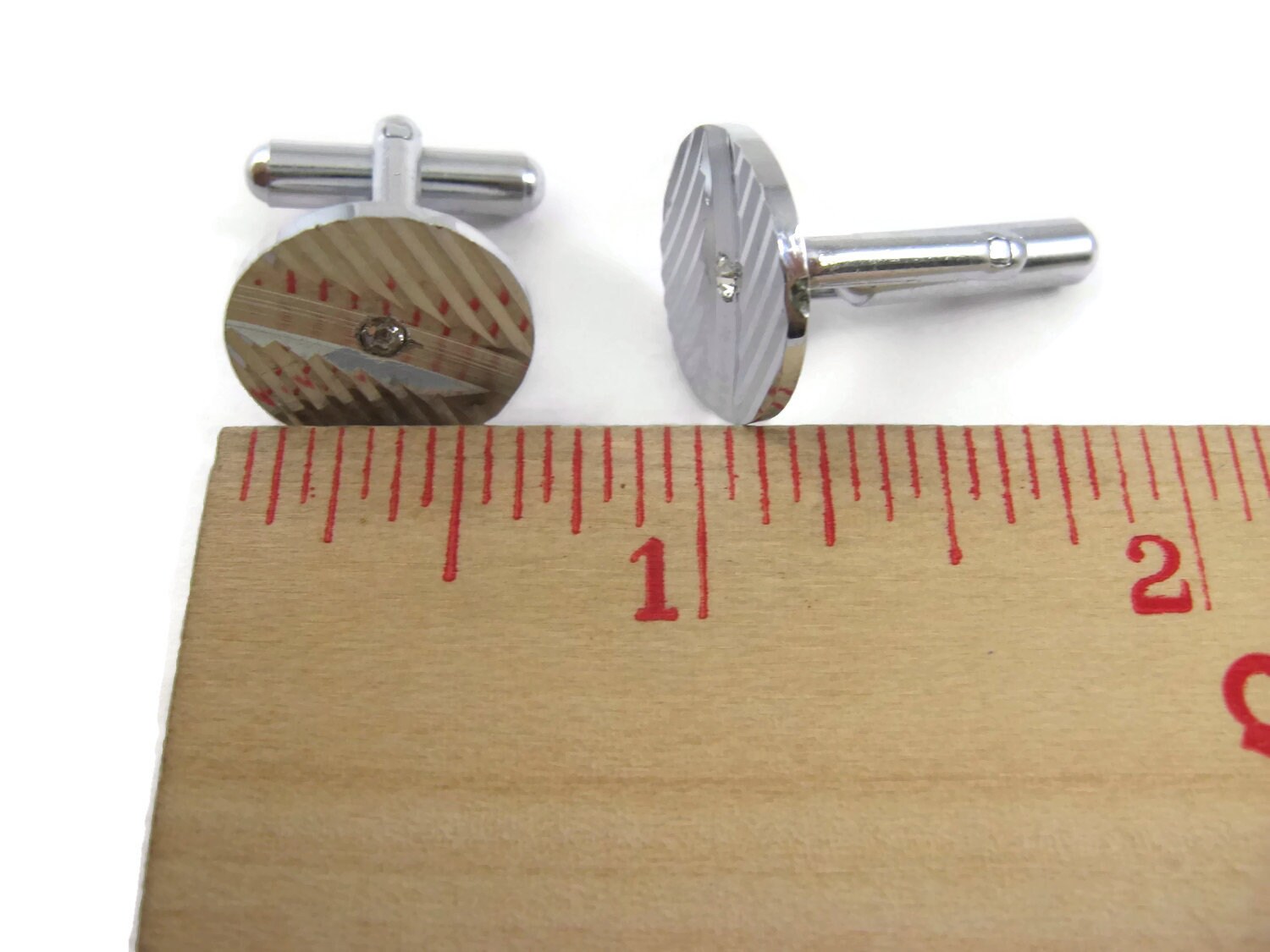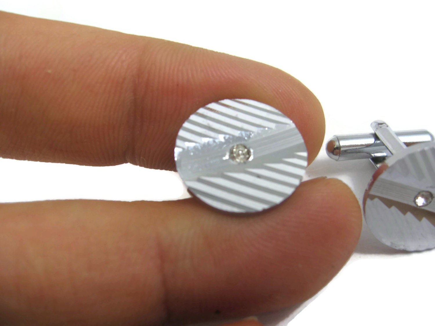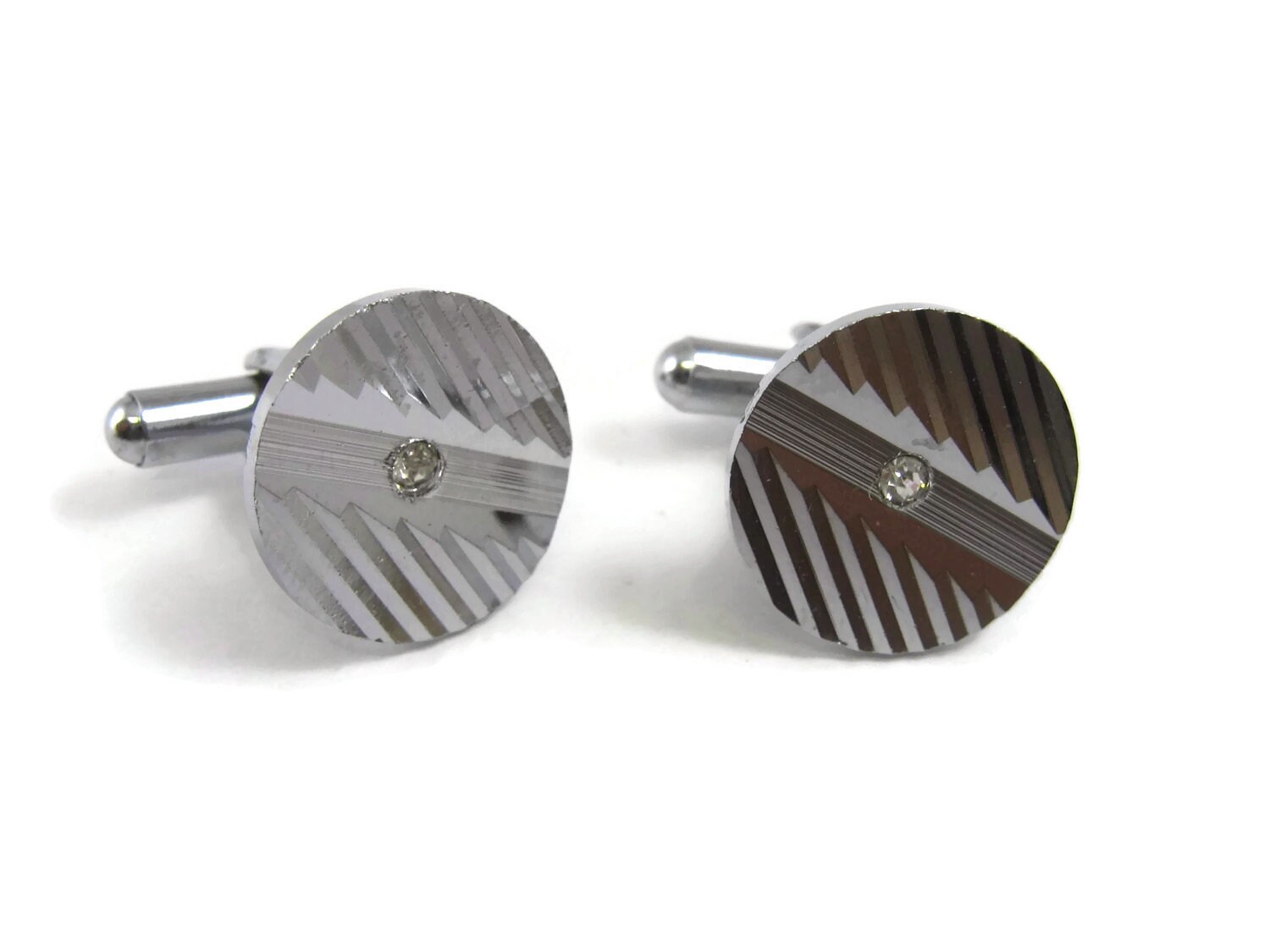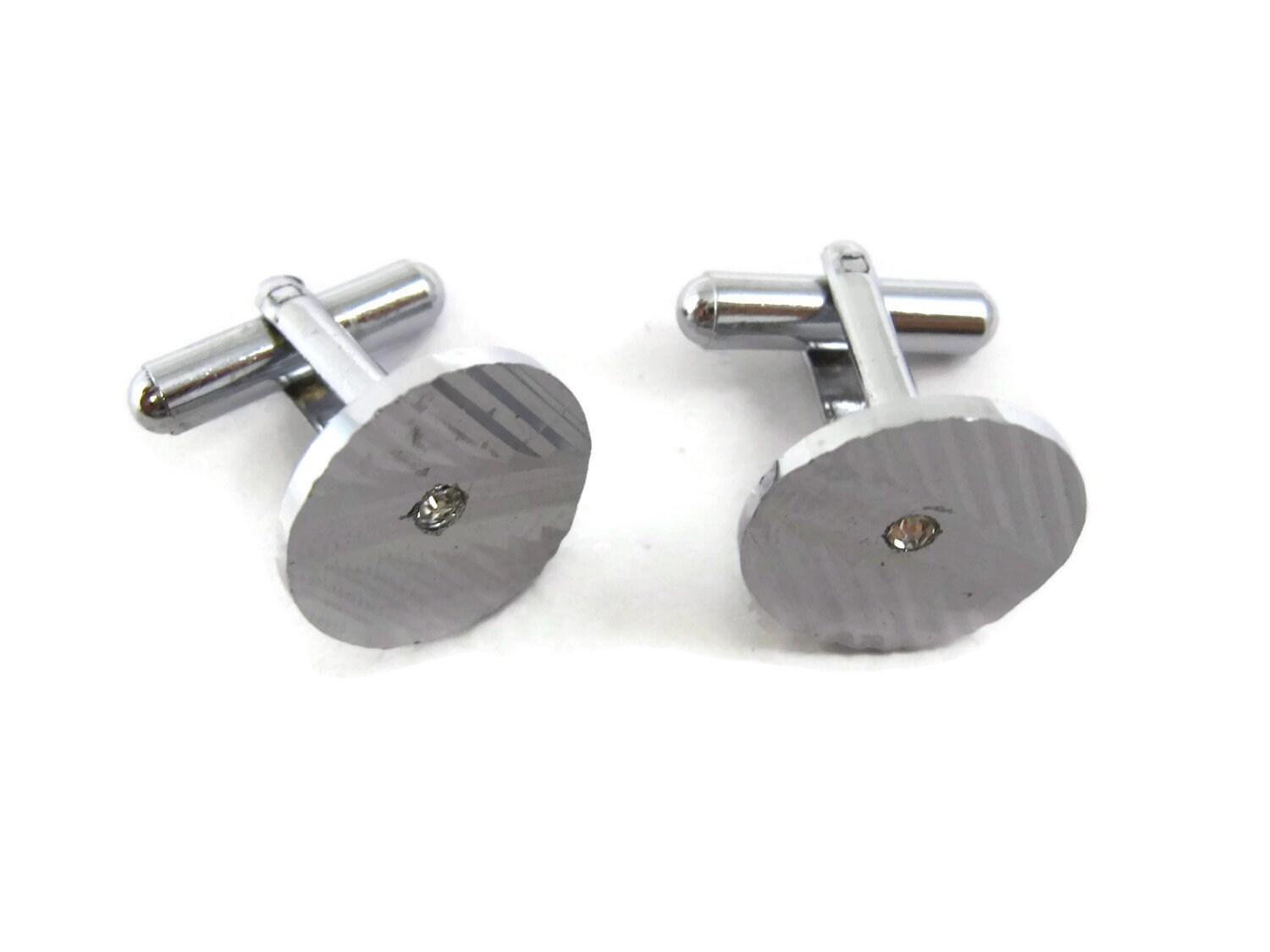 Vintage Cufflinks for Men: Silver Tone Circle Clear Jewel Center