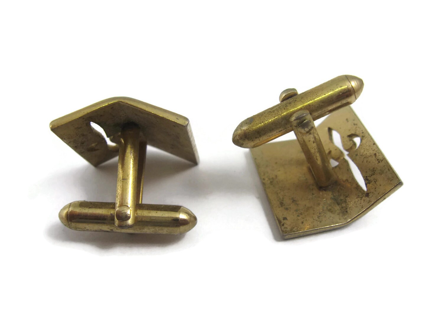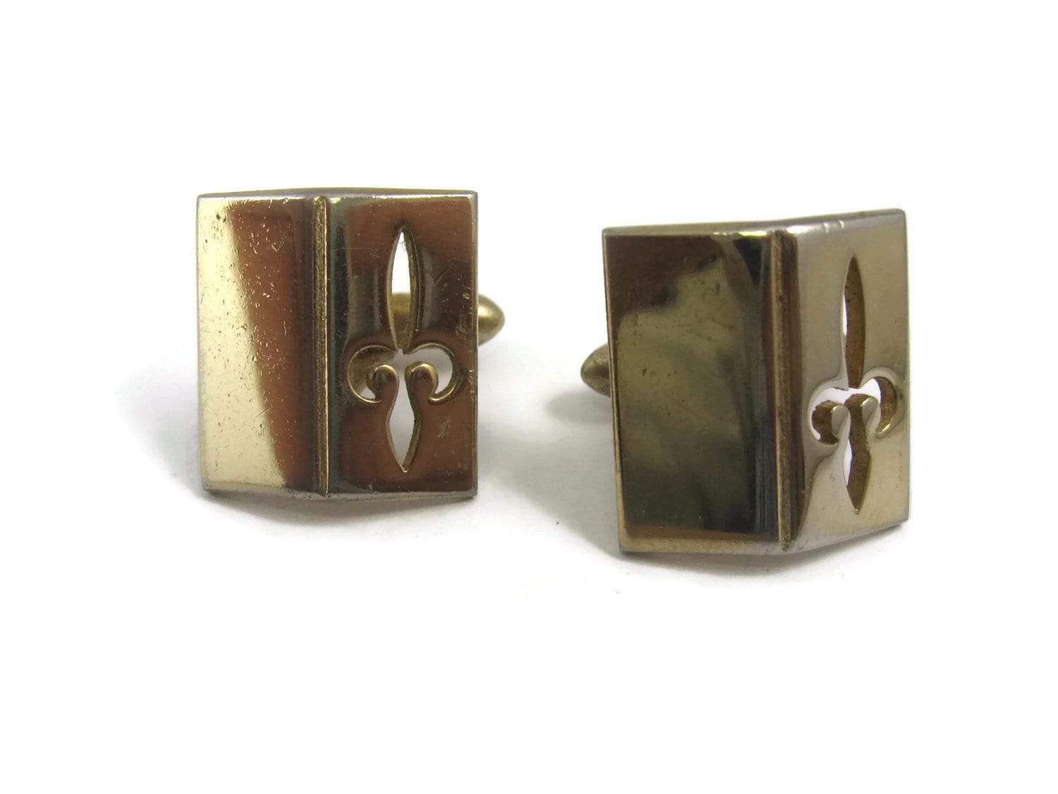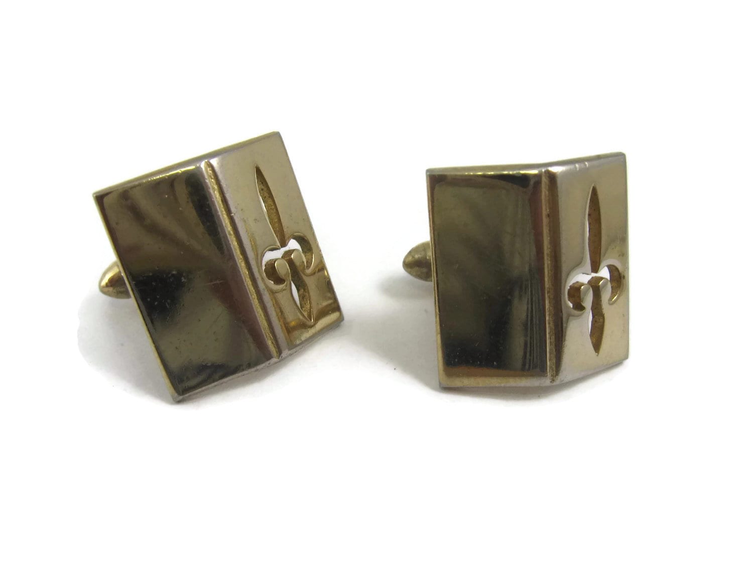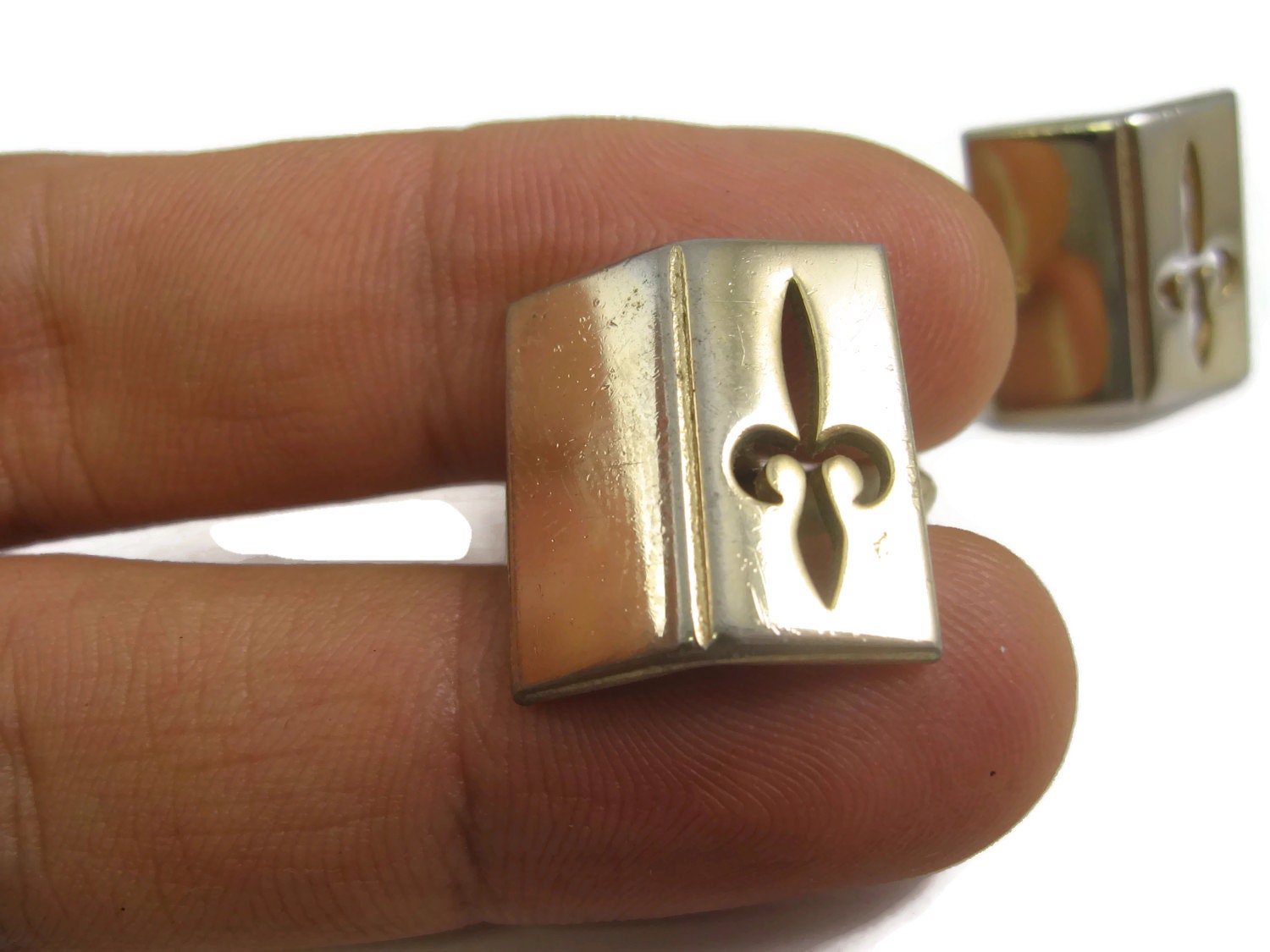 Vintage Cufflinks for Men: Creased Middle Design Fleur De Lis See Through