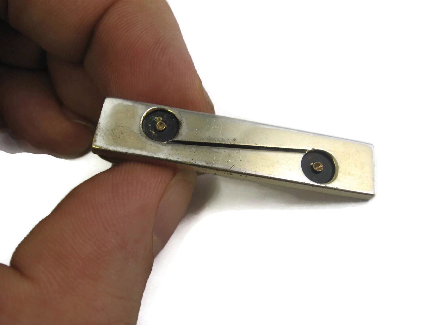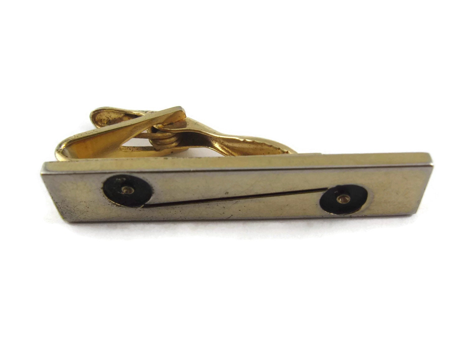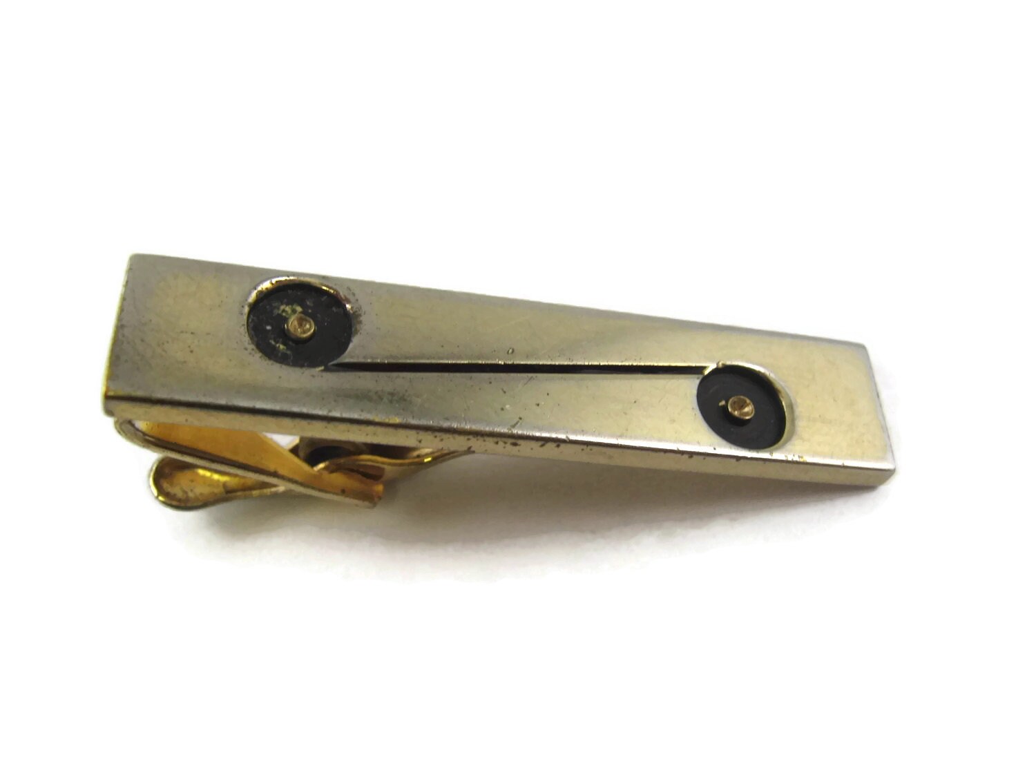 Vintage Men's Tie Bar Clip Jewelry: Connecting Circles Modernist Design