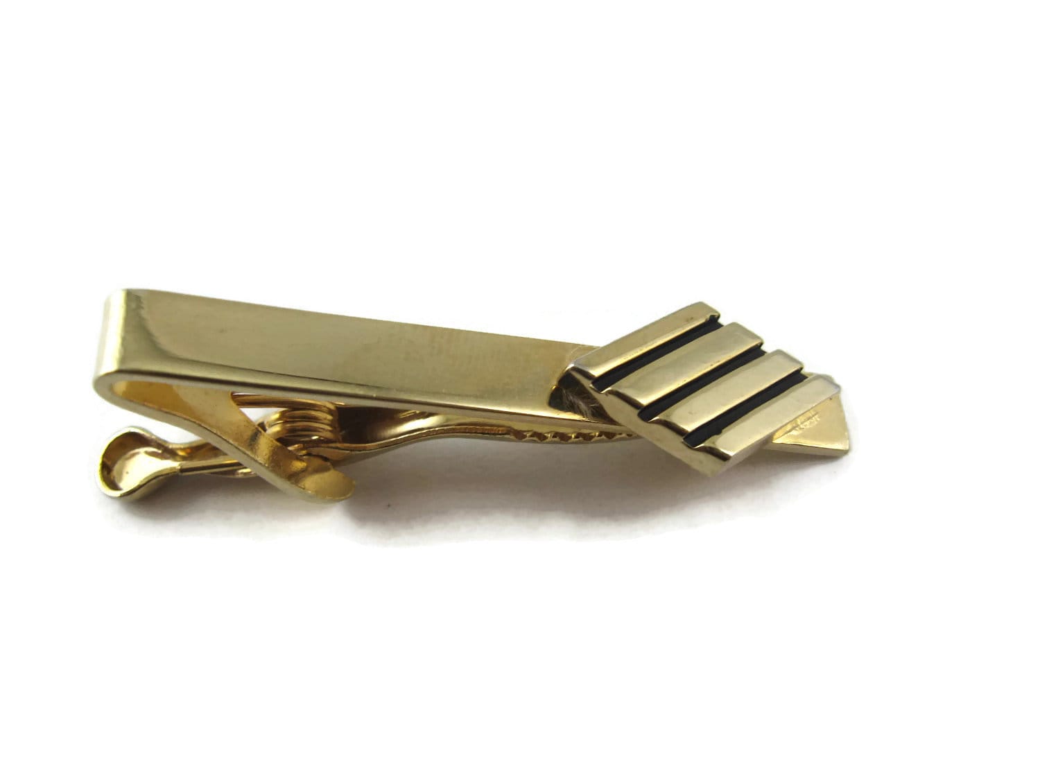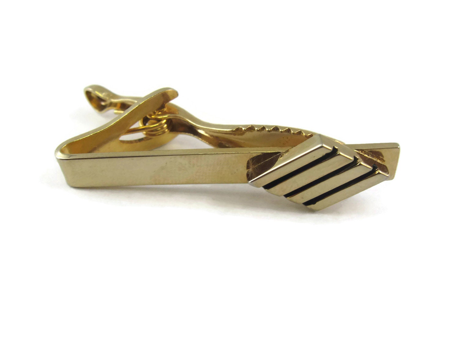 Vintage Men's Tie Bar Clip Jewelry: Great Grooved Diamond Shape Accent Modernist