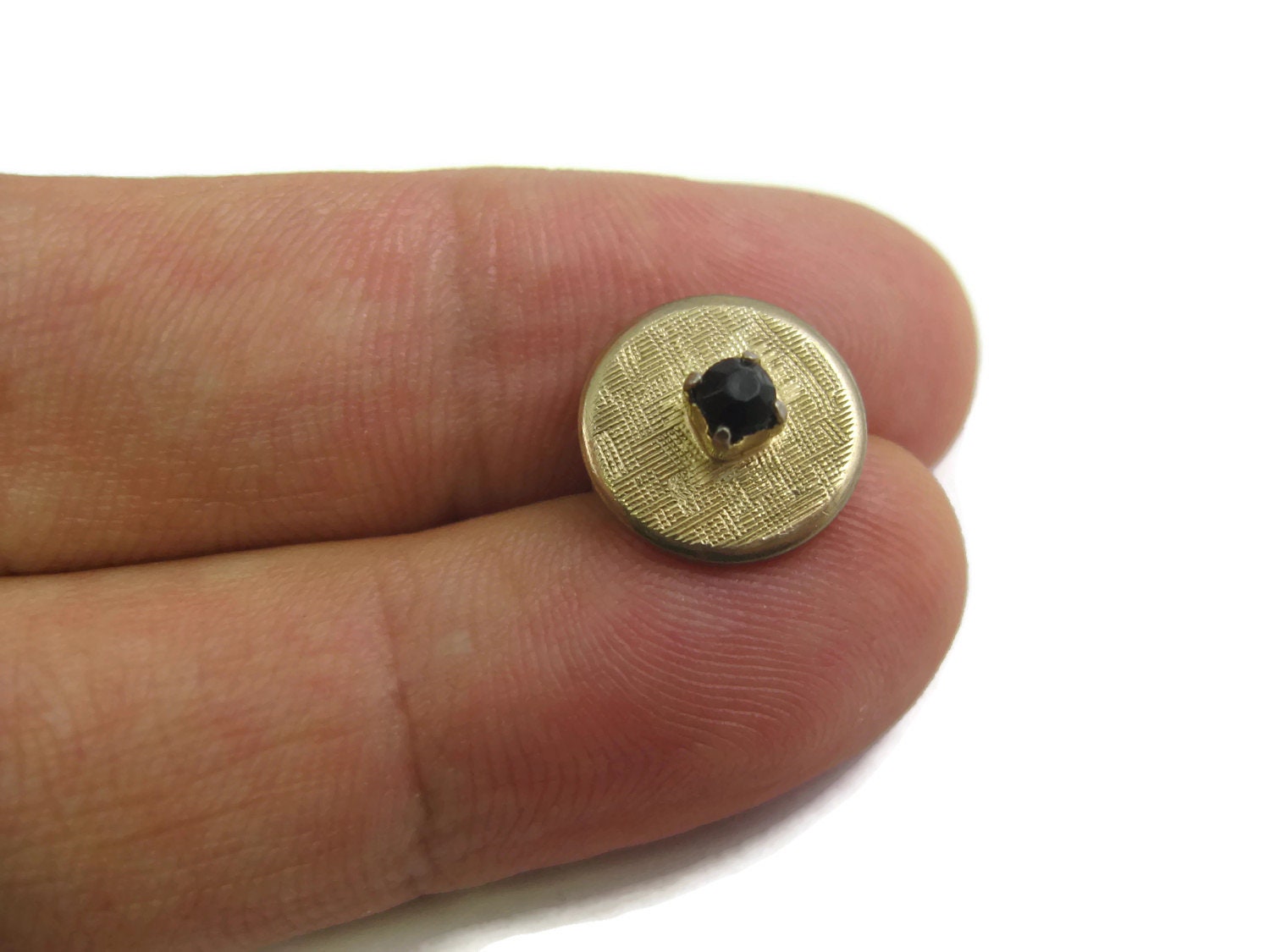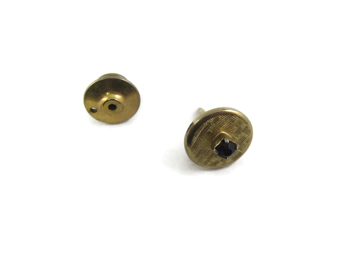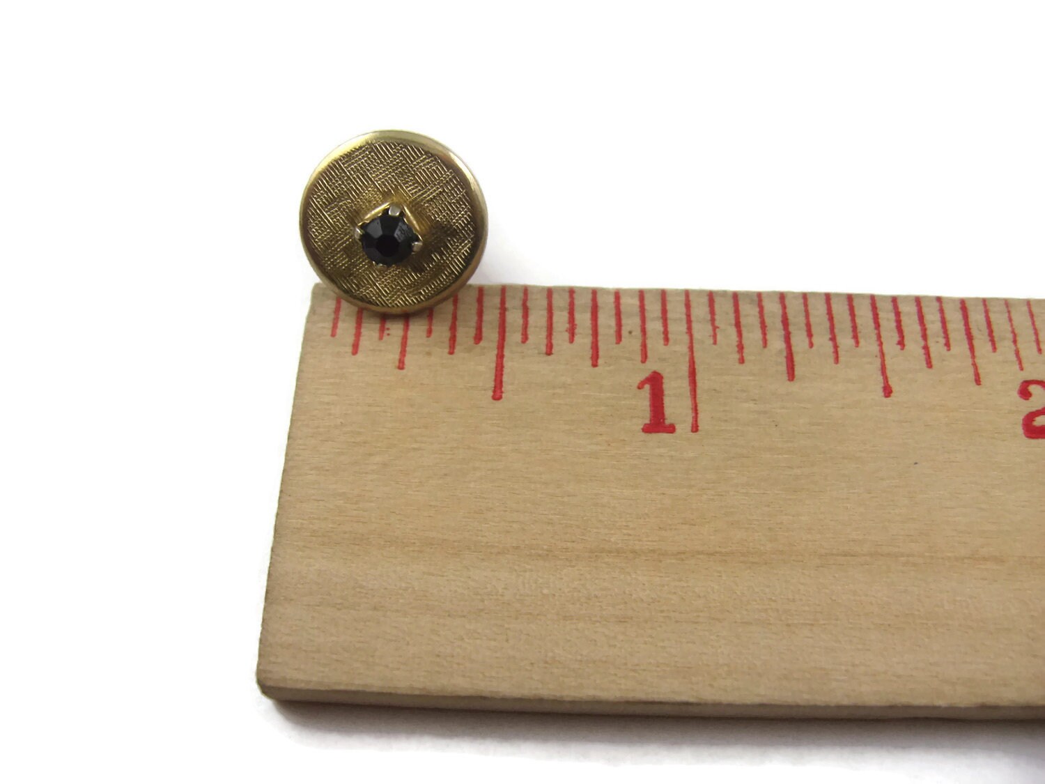 Vintage Men's Tie Tack Pin Jewelry: Black Jewel Center Textured Gold Tone Round Setting