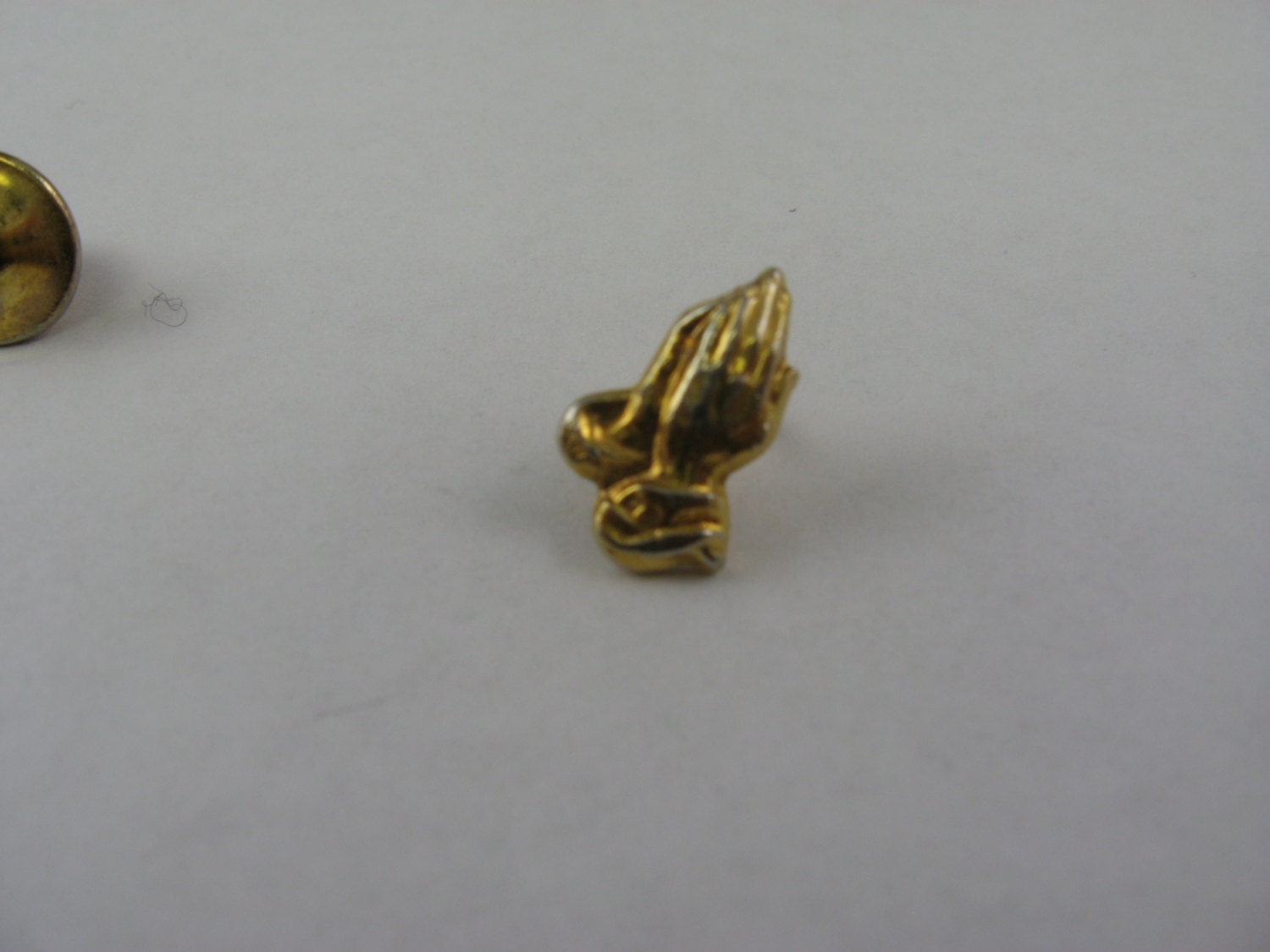Vintage Men's Tie Tack Lapel Pin Jewelry: Praying Hands Religious Design