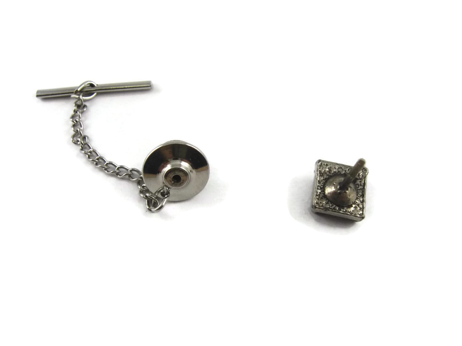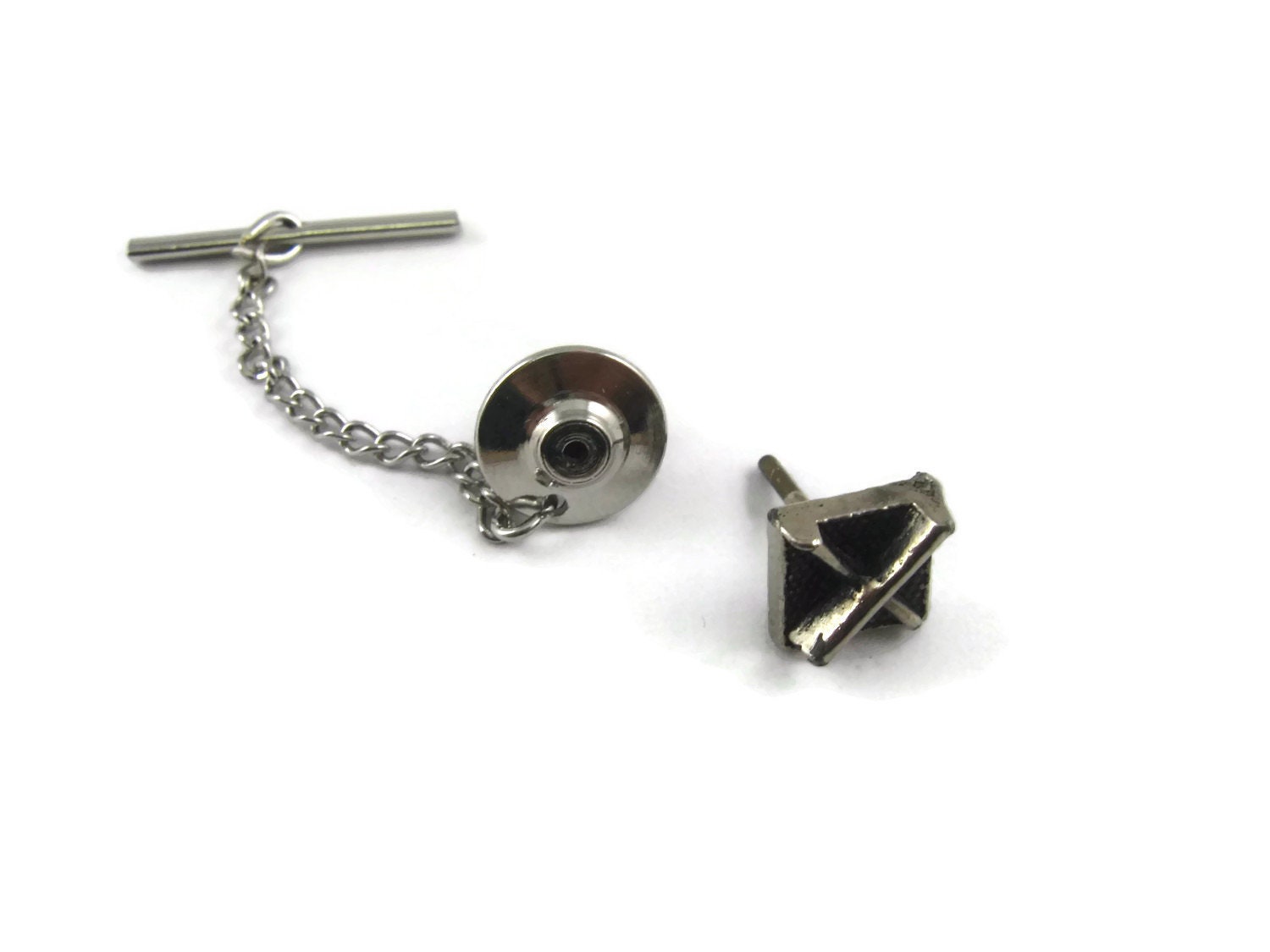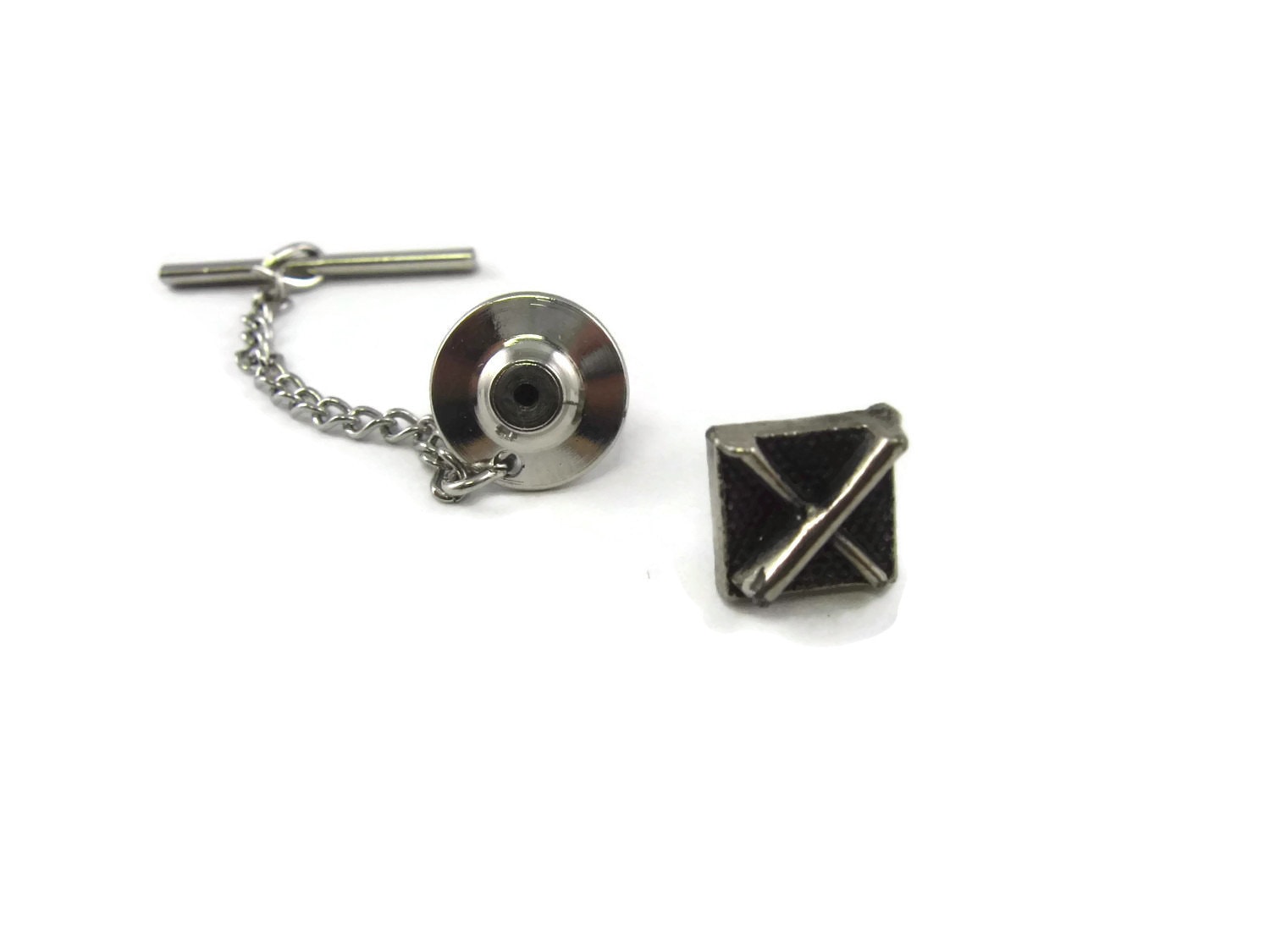 Vintage Men's Tie Tack Lapel Pin Jewelry: Square Body Crossed Bars Design