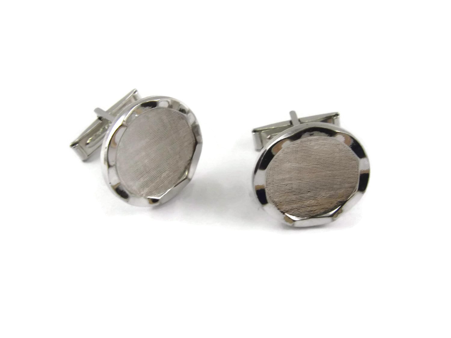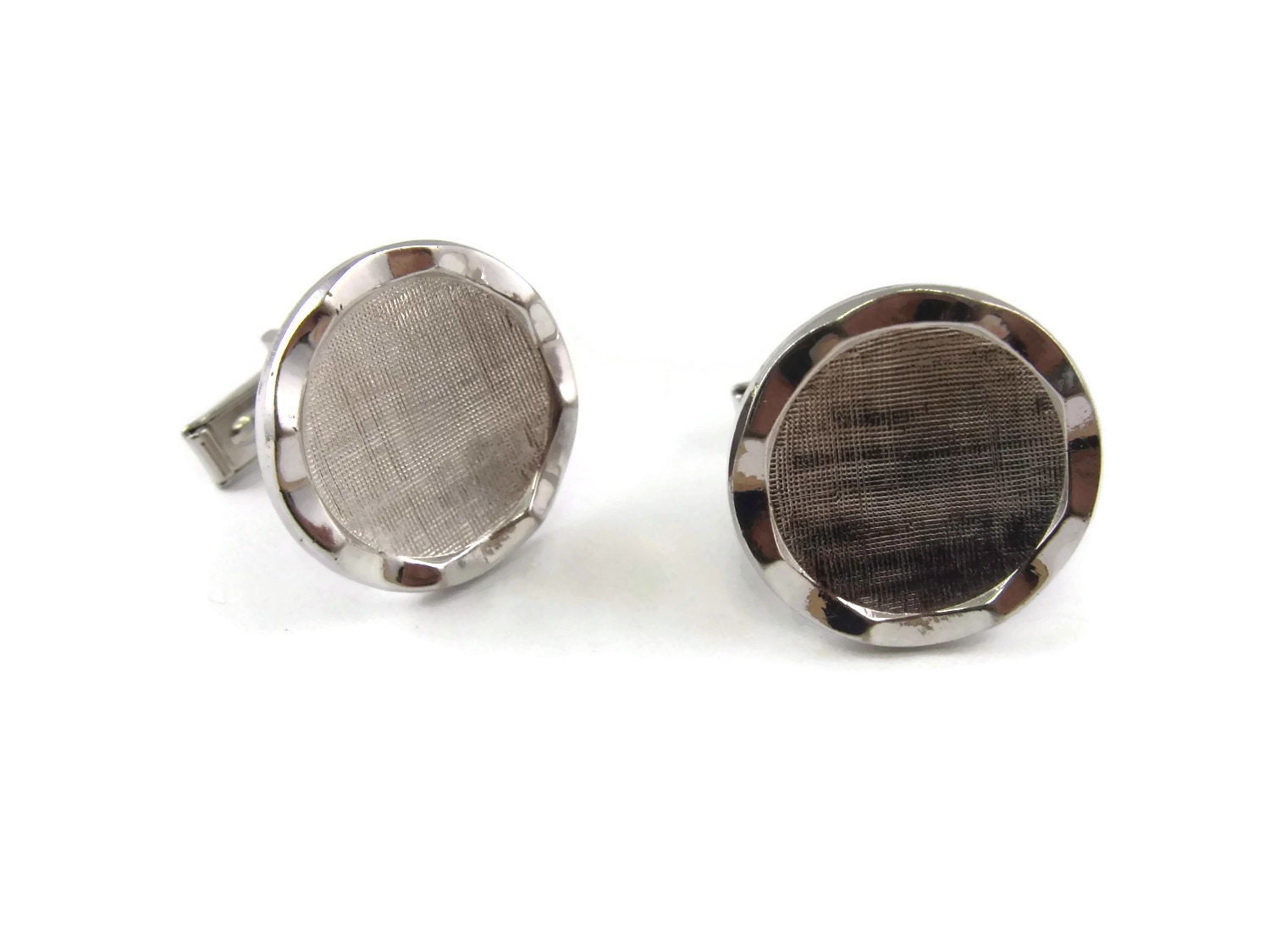 Vintage Cufflinks for Men: Great Silver Tone Round Textured Design