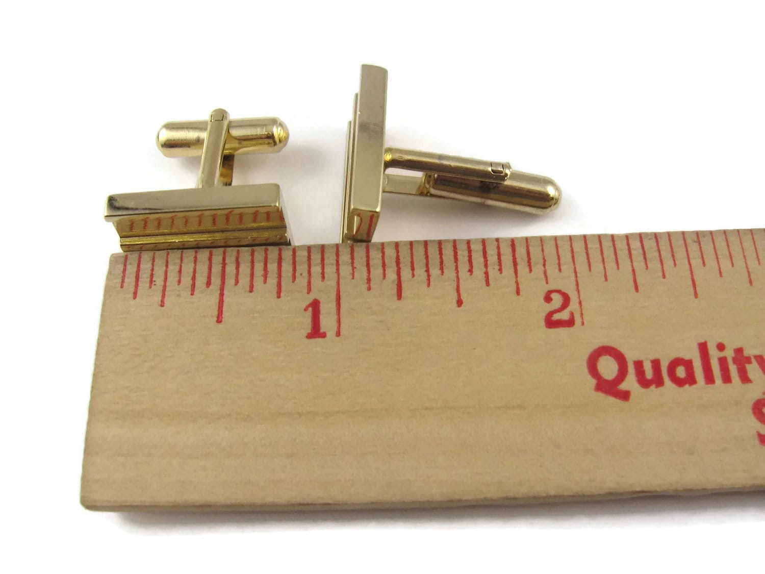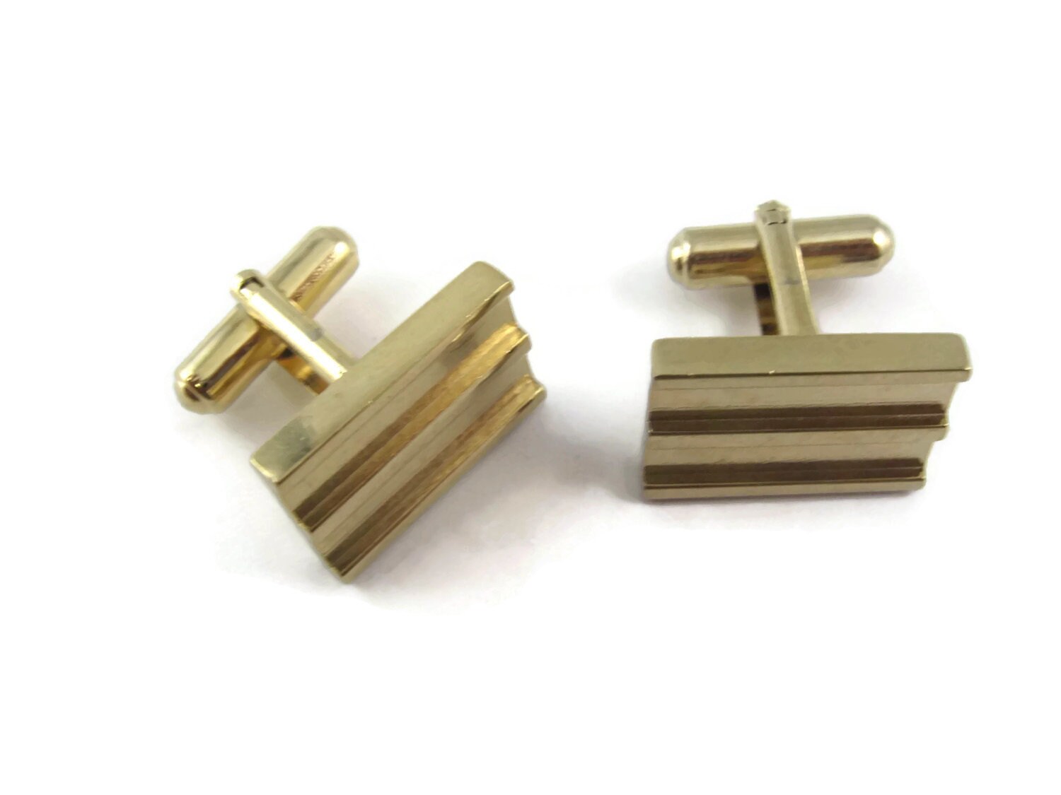 Vintage Cufflinks for Men: Pair Blanks Double Groove Rectangle Gold Tone