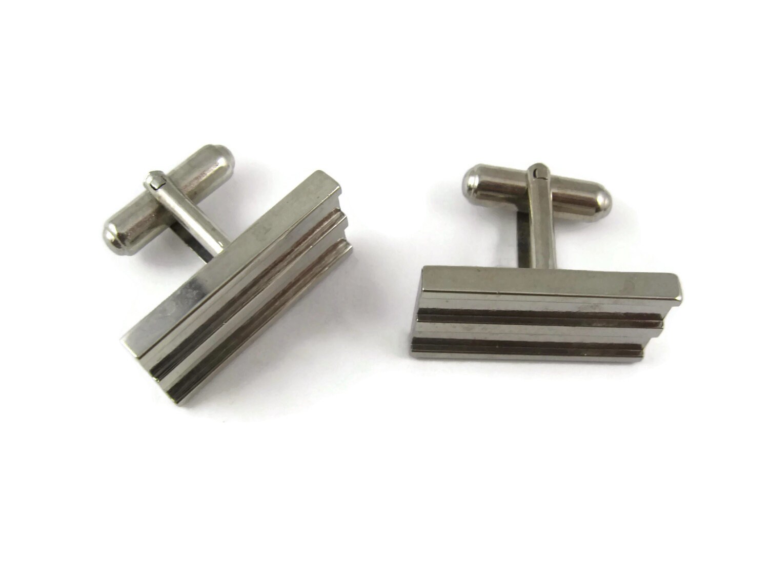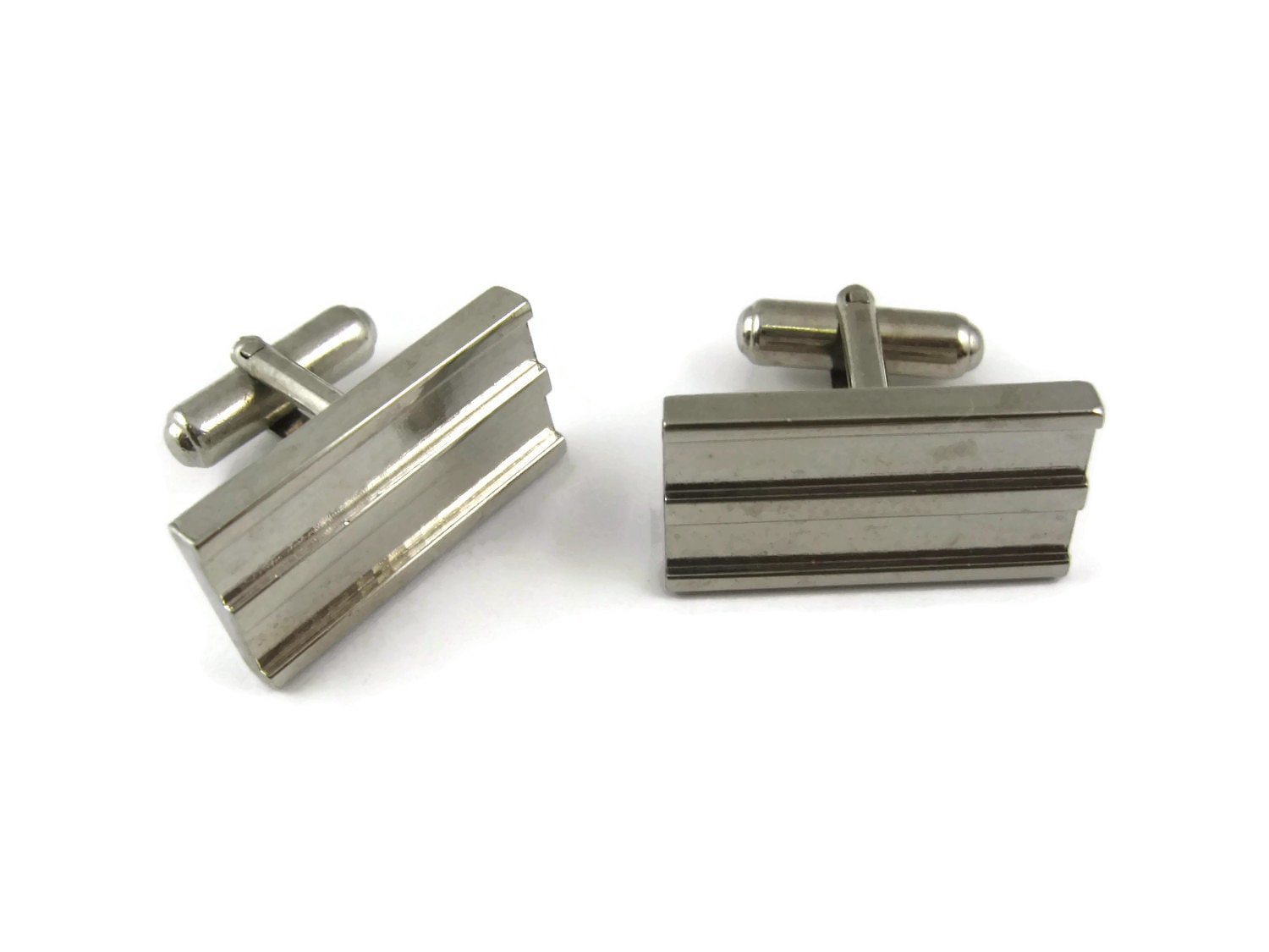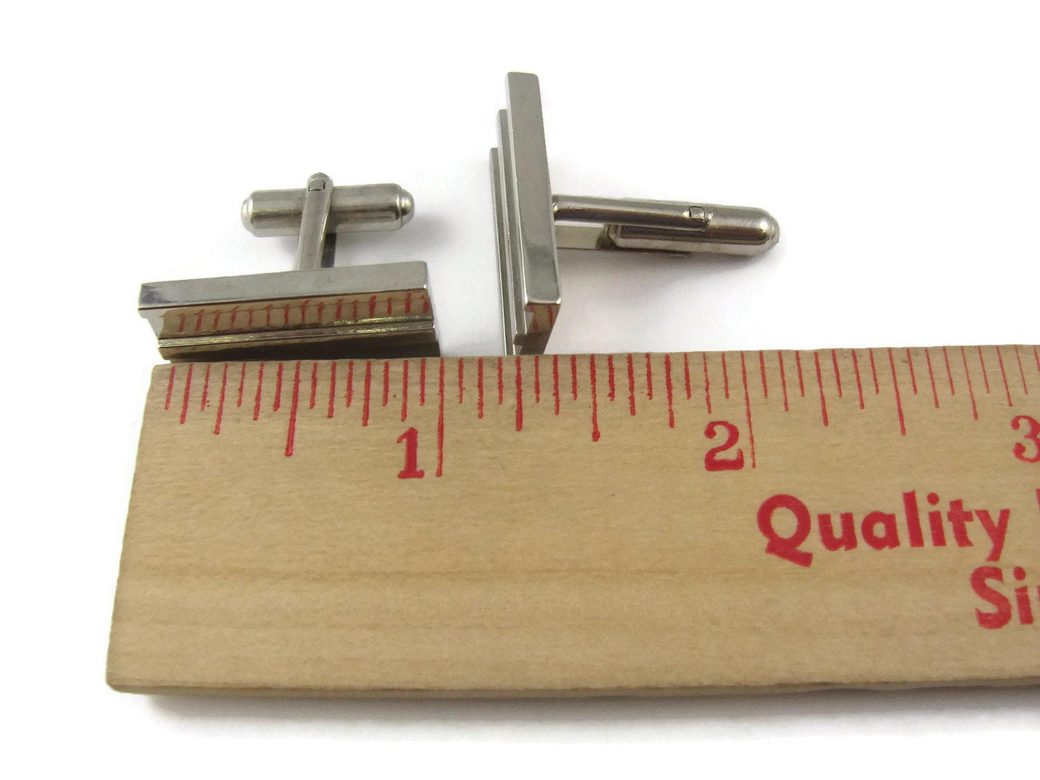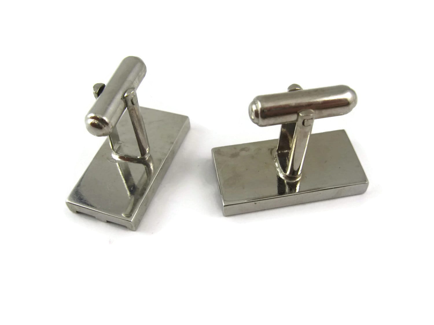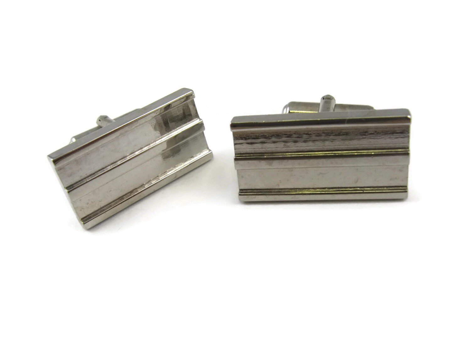 Vintage Cufflinks Pair Blanks Double Groove Rectangle Silver Tone Men's Jewelry Accessory
