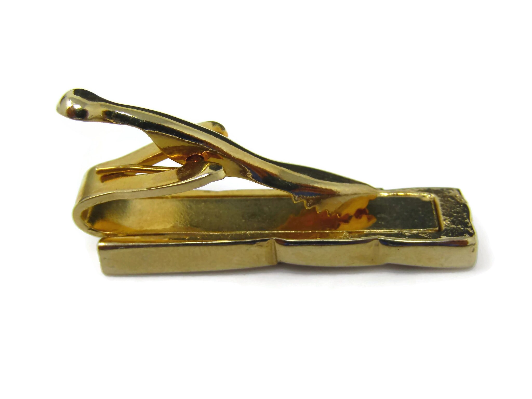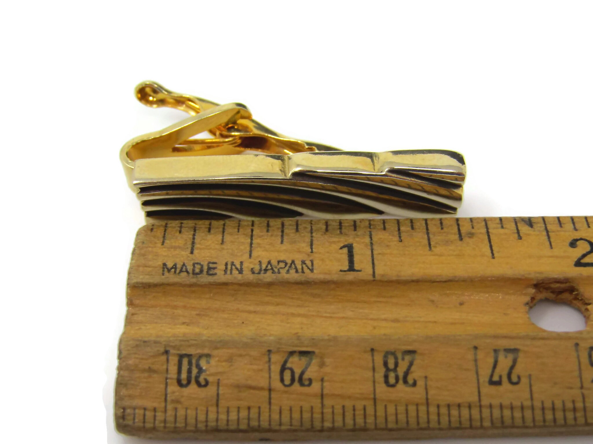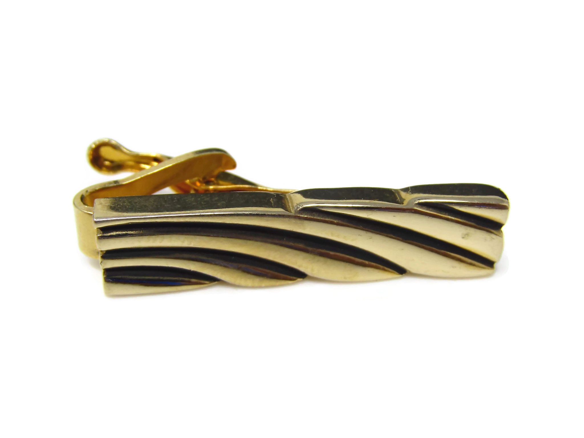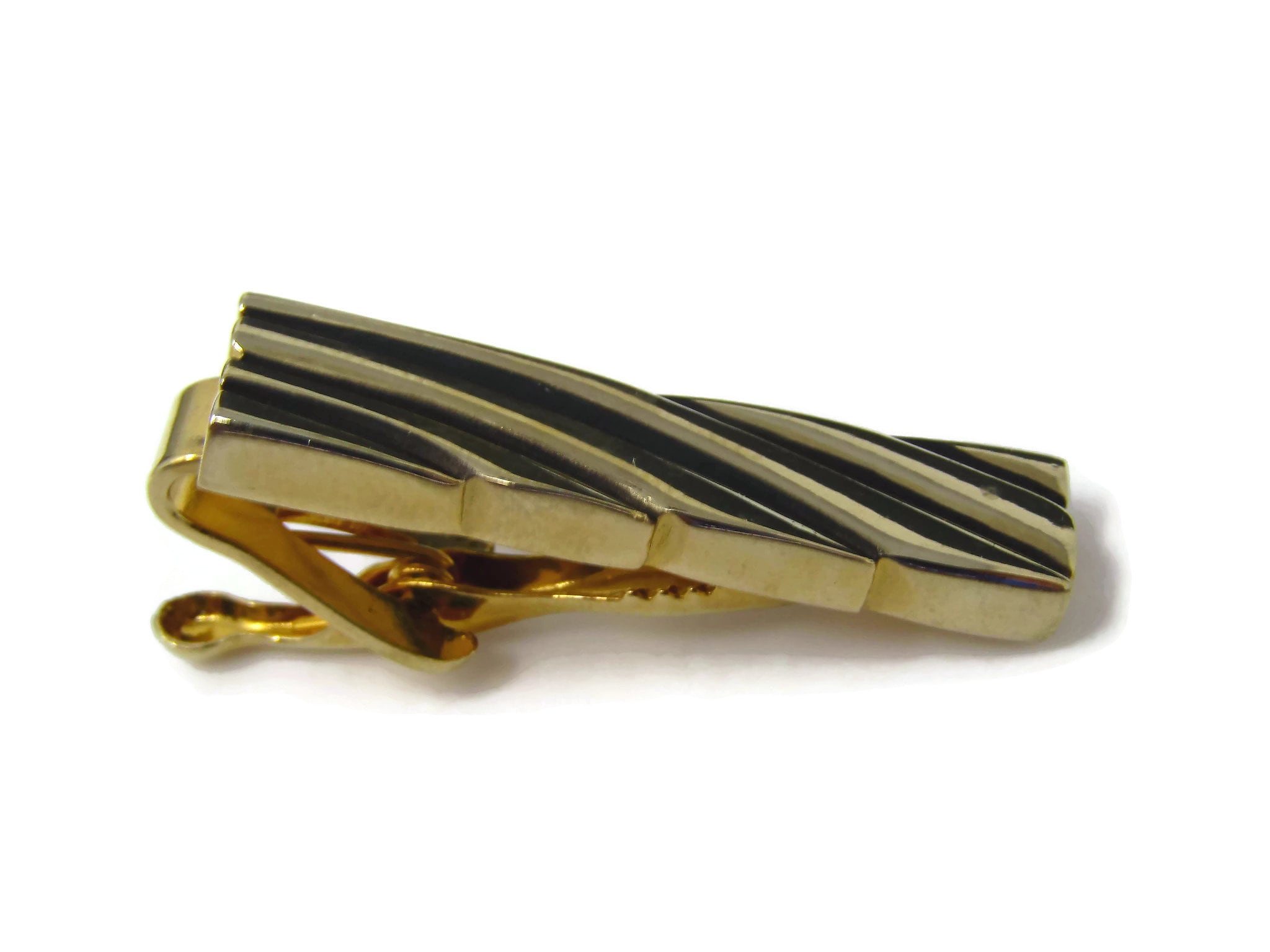 Vintage Tie Clip Tie Bar: Gorgeous Swirl Line Grooves Modernist Gold Tone