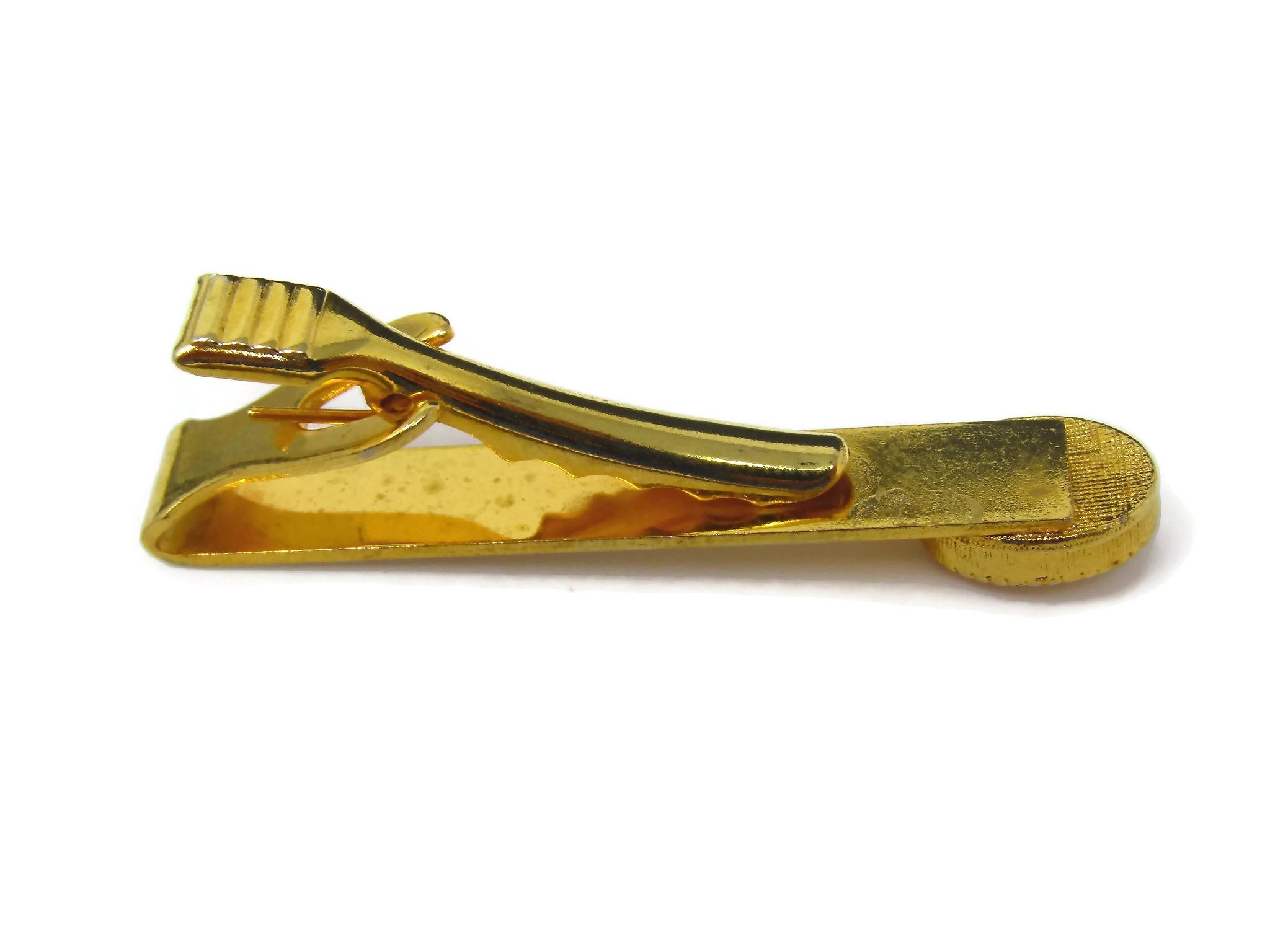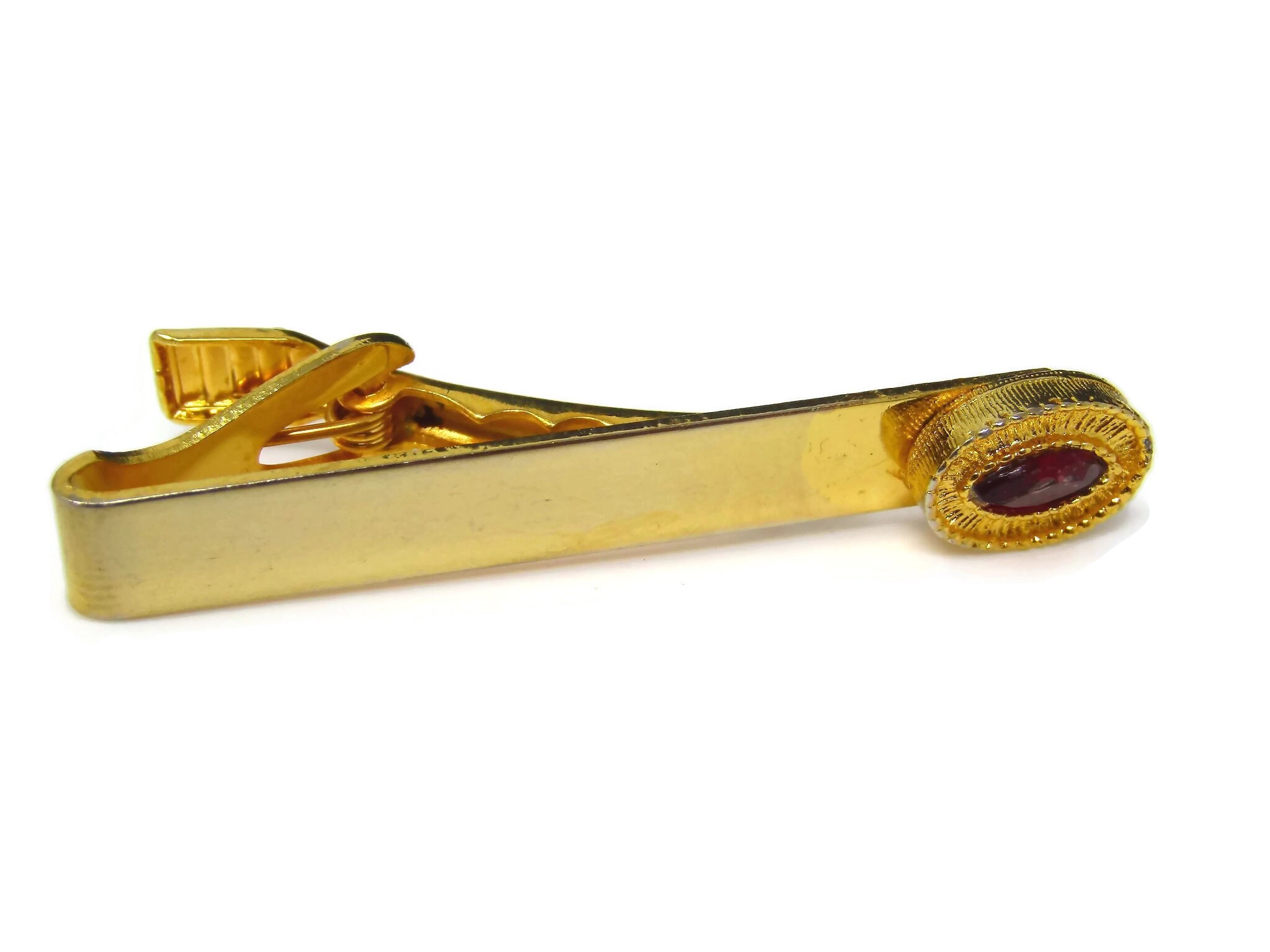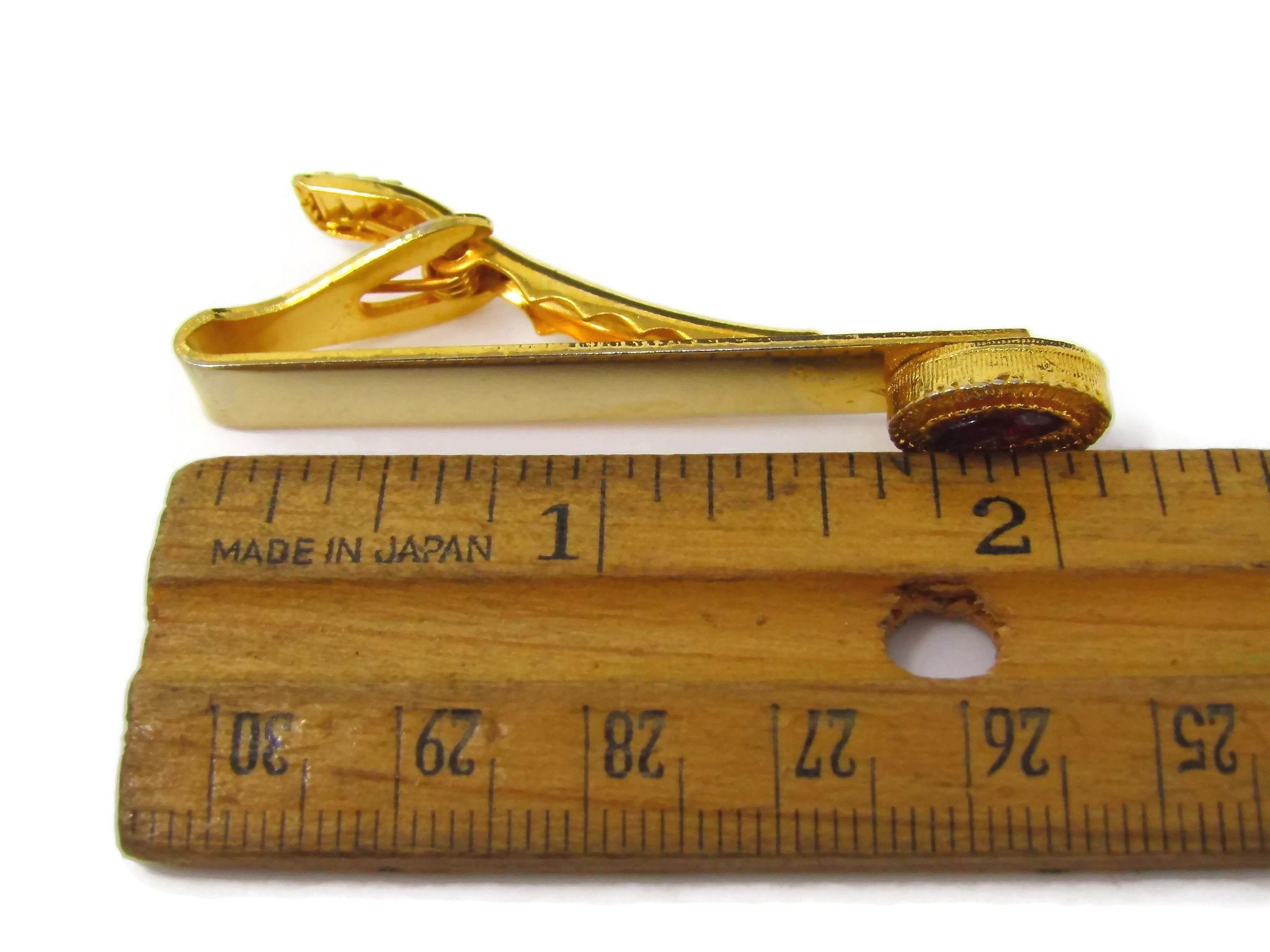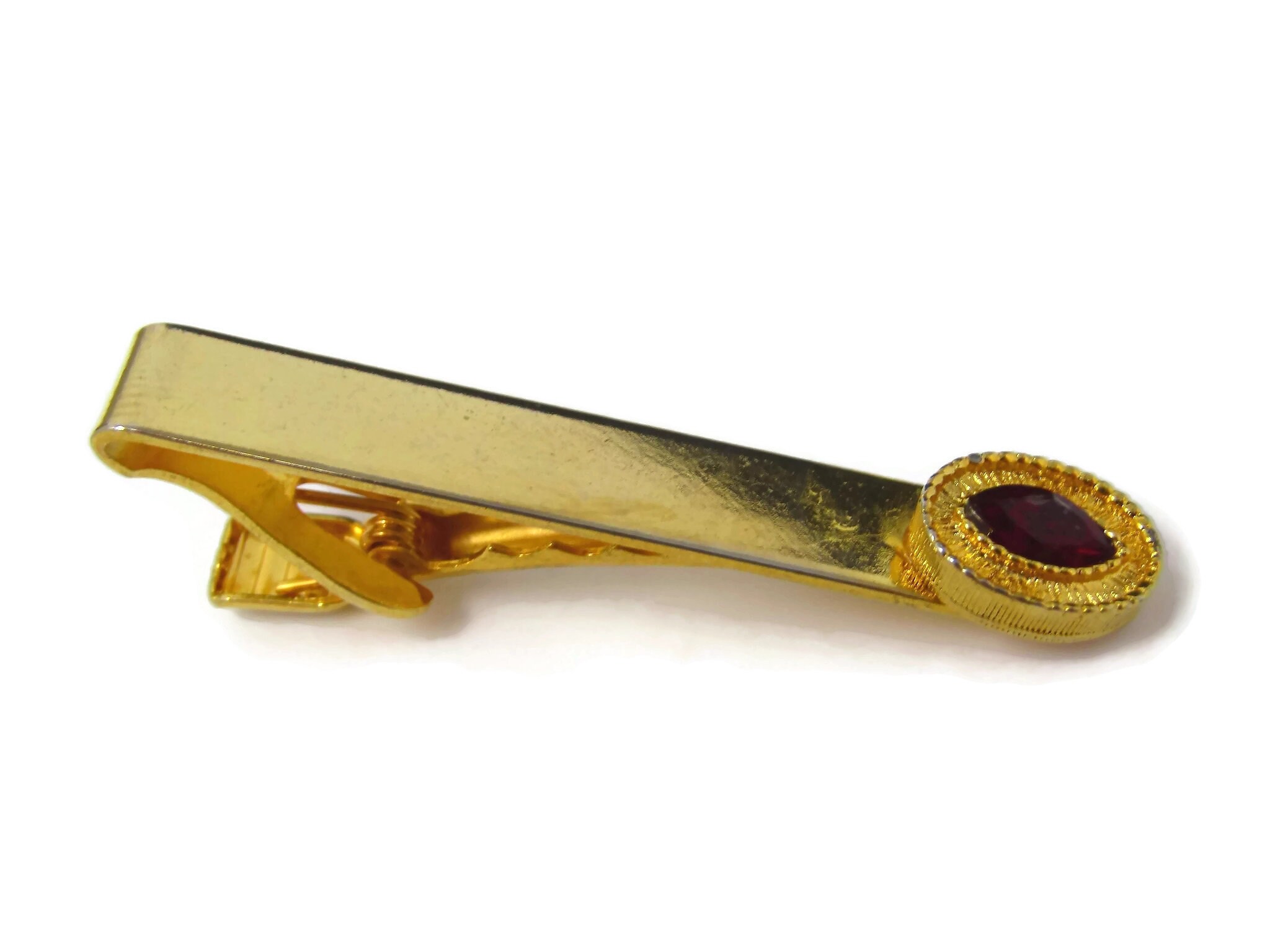 Vintage Tie Clip Tie Bar: Red Jewel Accent Gold Tone Design