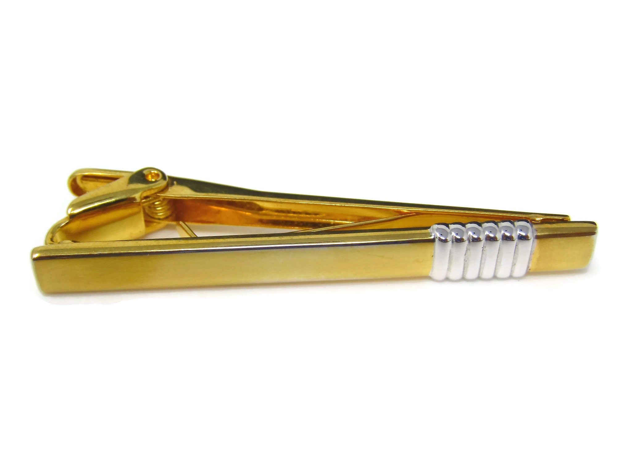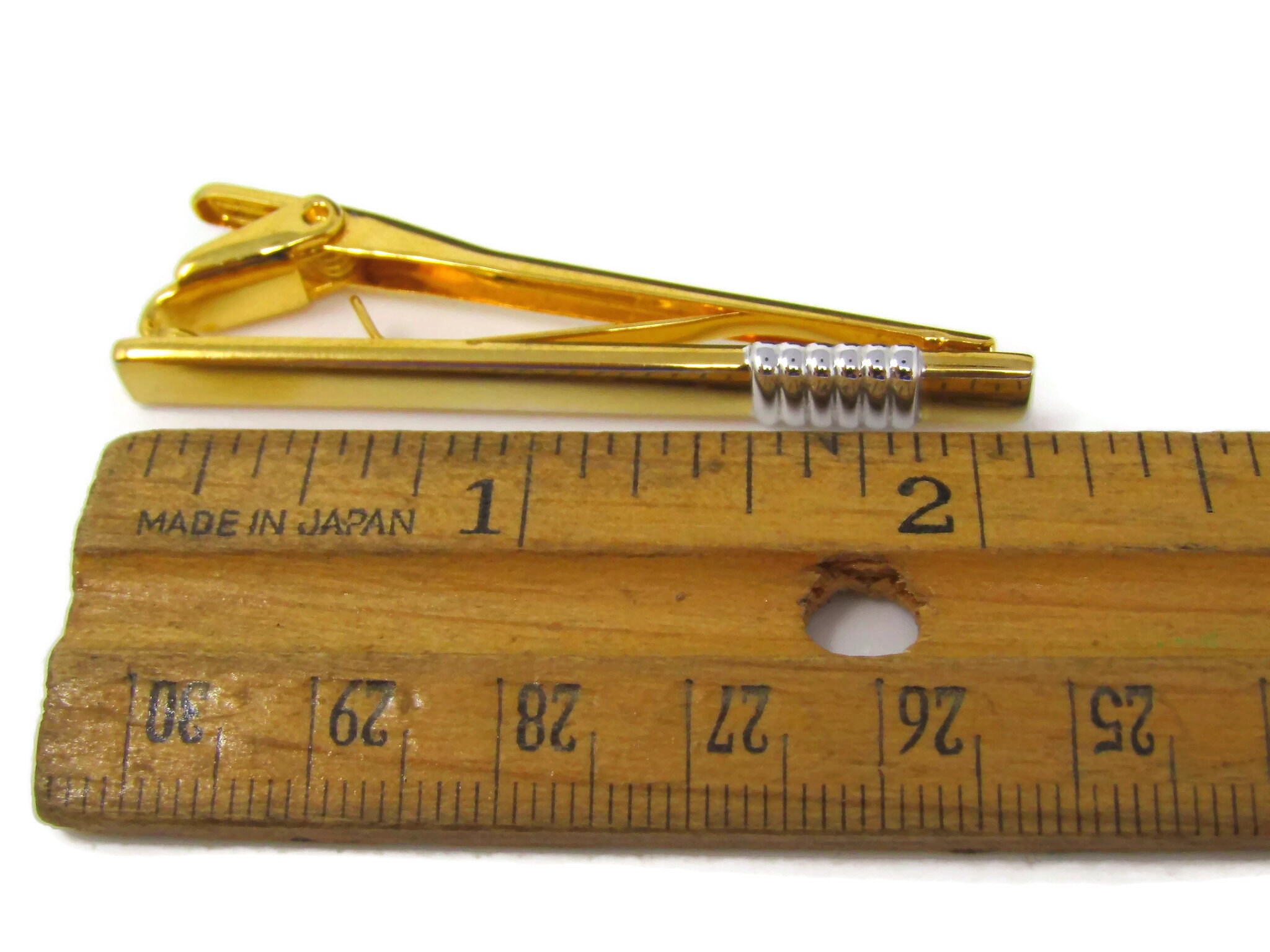 Vintage Tie Clip Tie Bar: Silver Tone Bar Wrap Ridge Gold Tone Design Nice