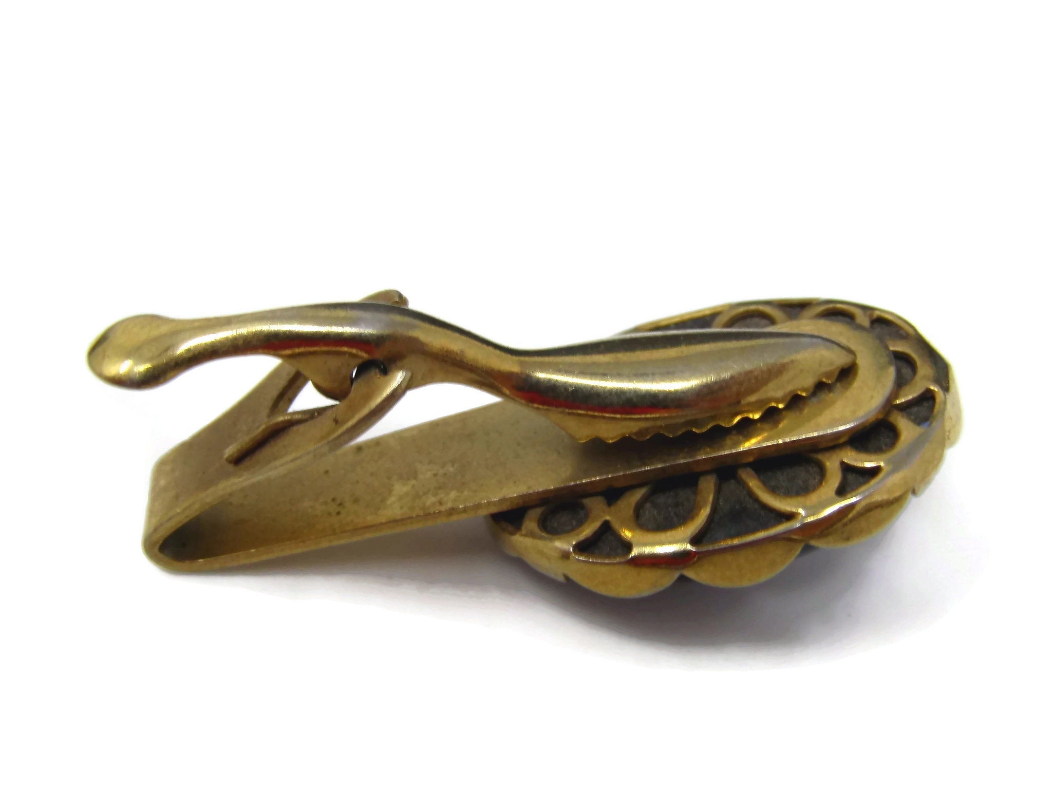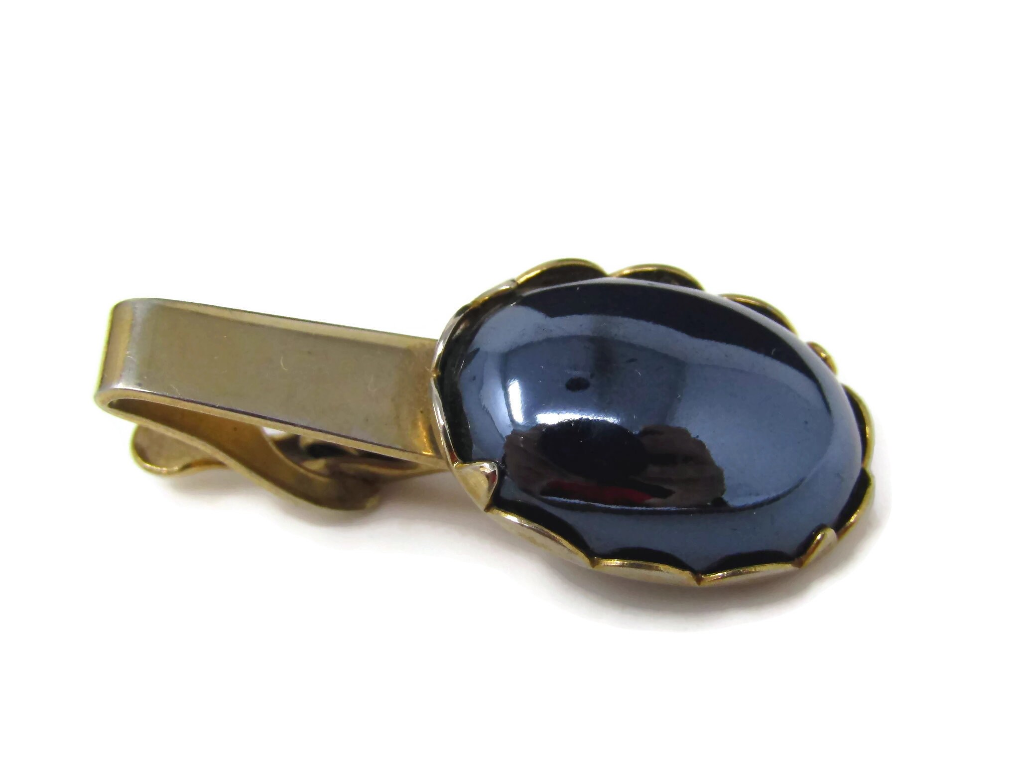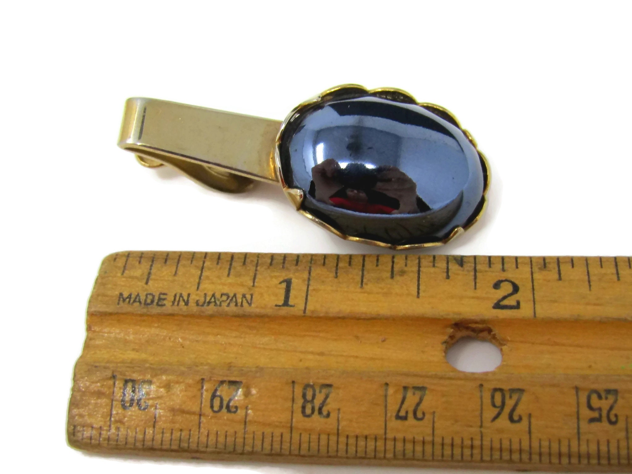 Vintage Tie Clip Tie Bar: Large Gray Hematite Like Accent Nice Design