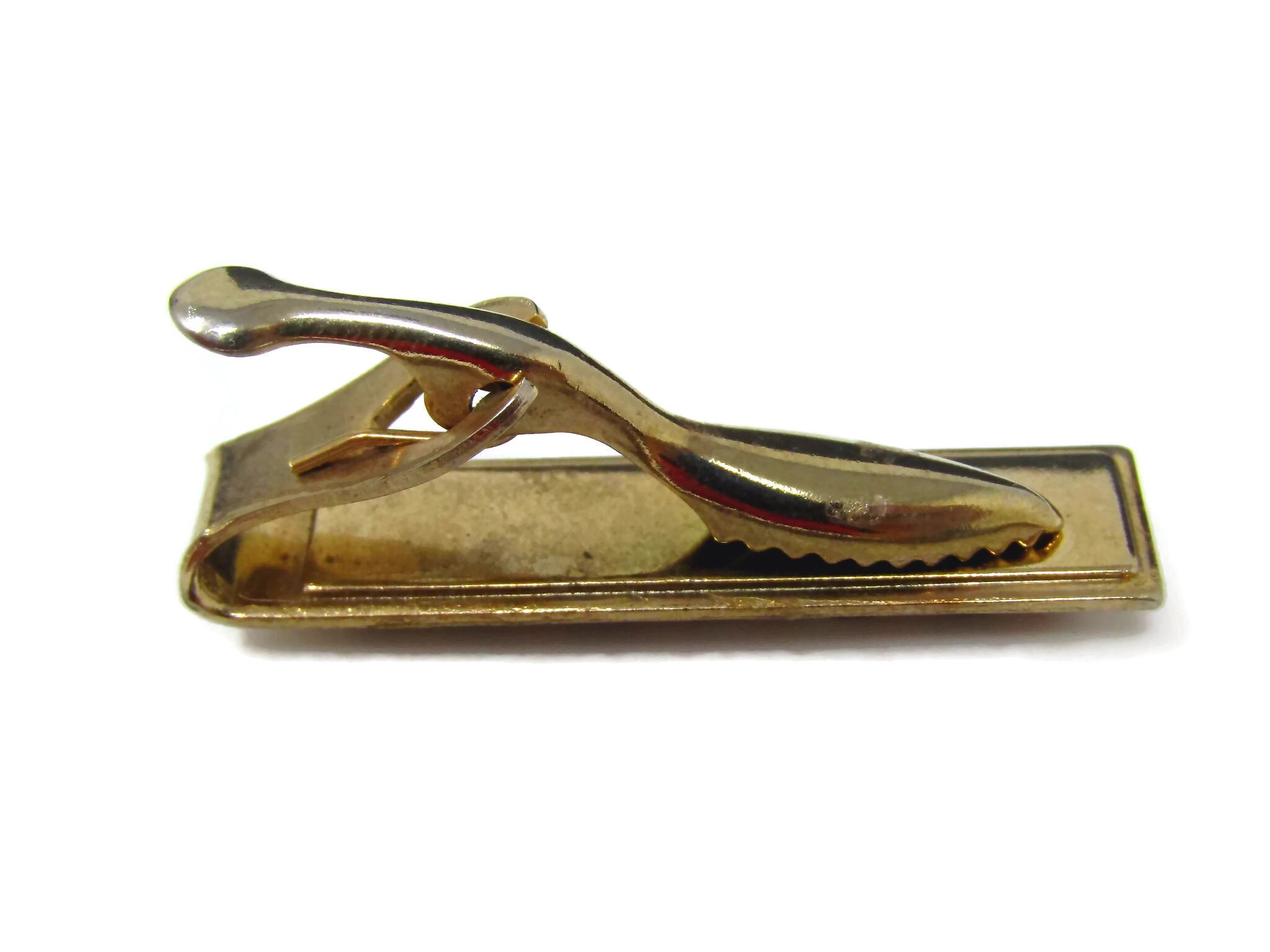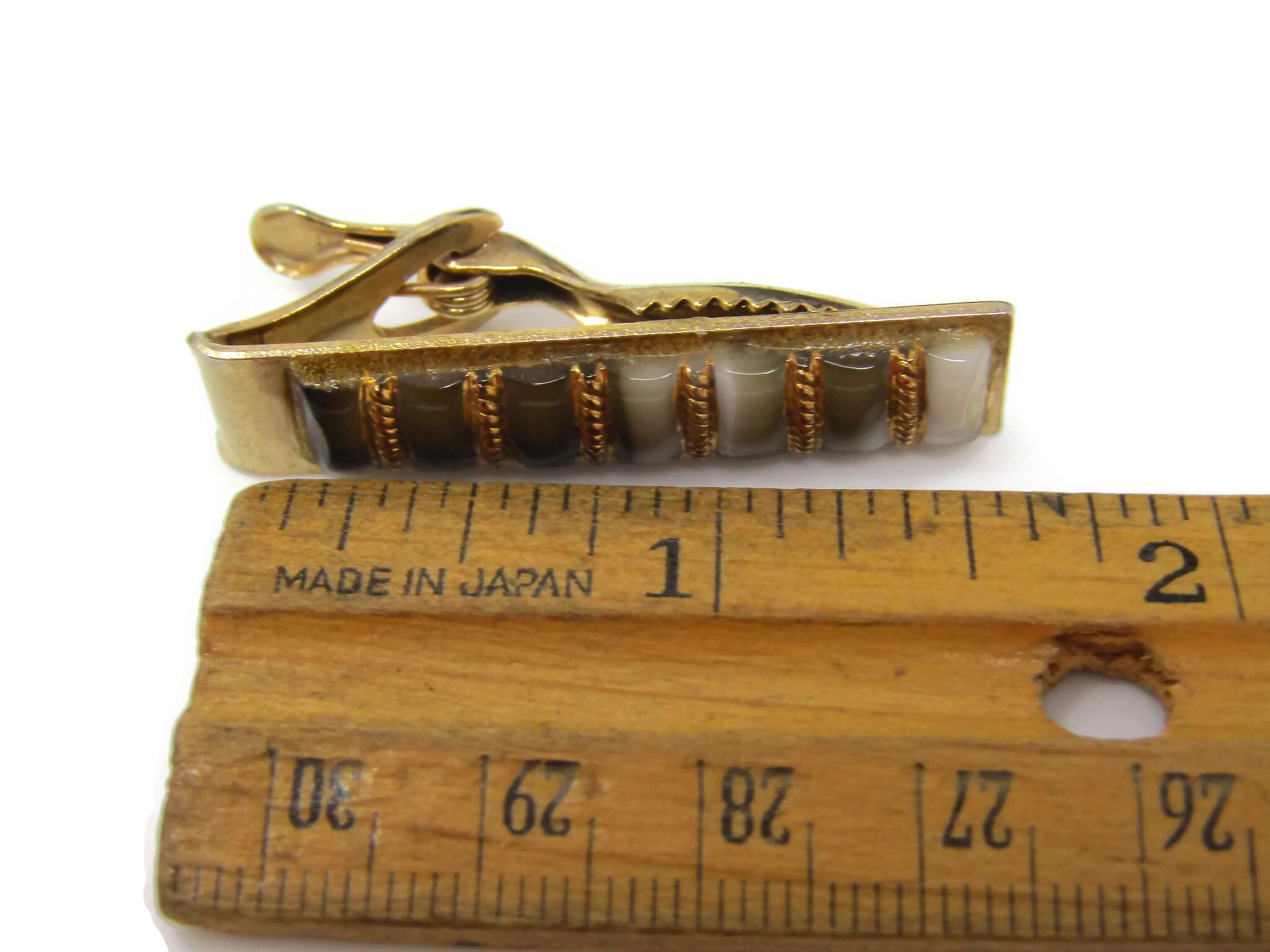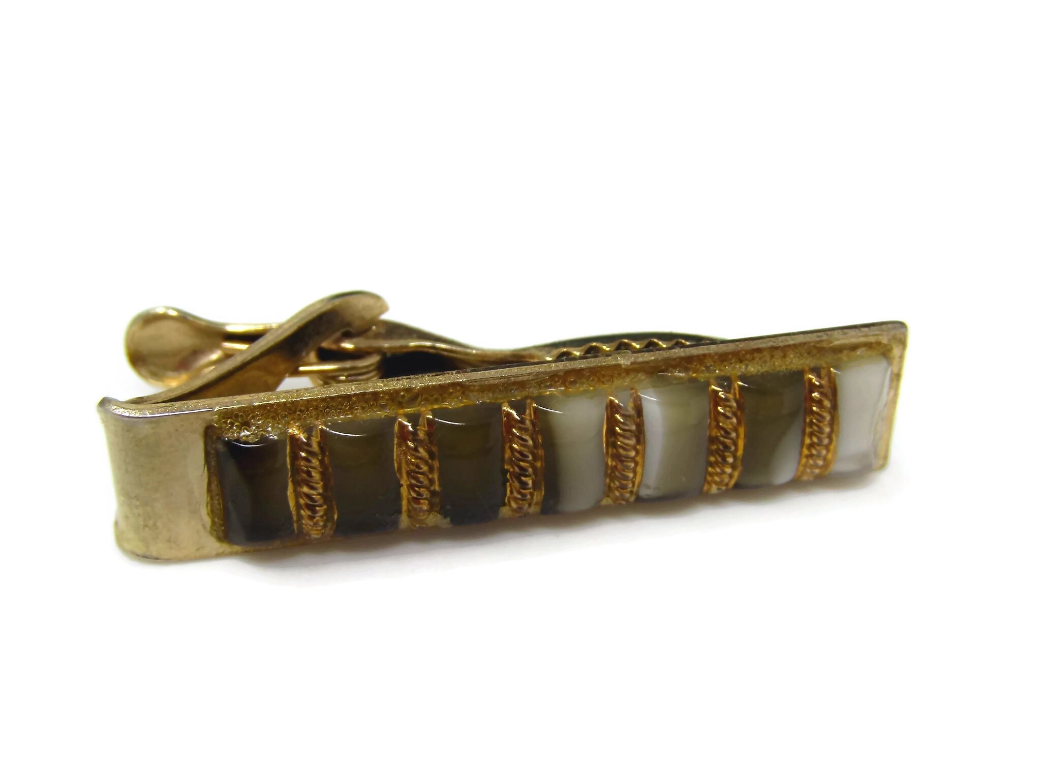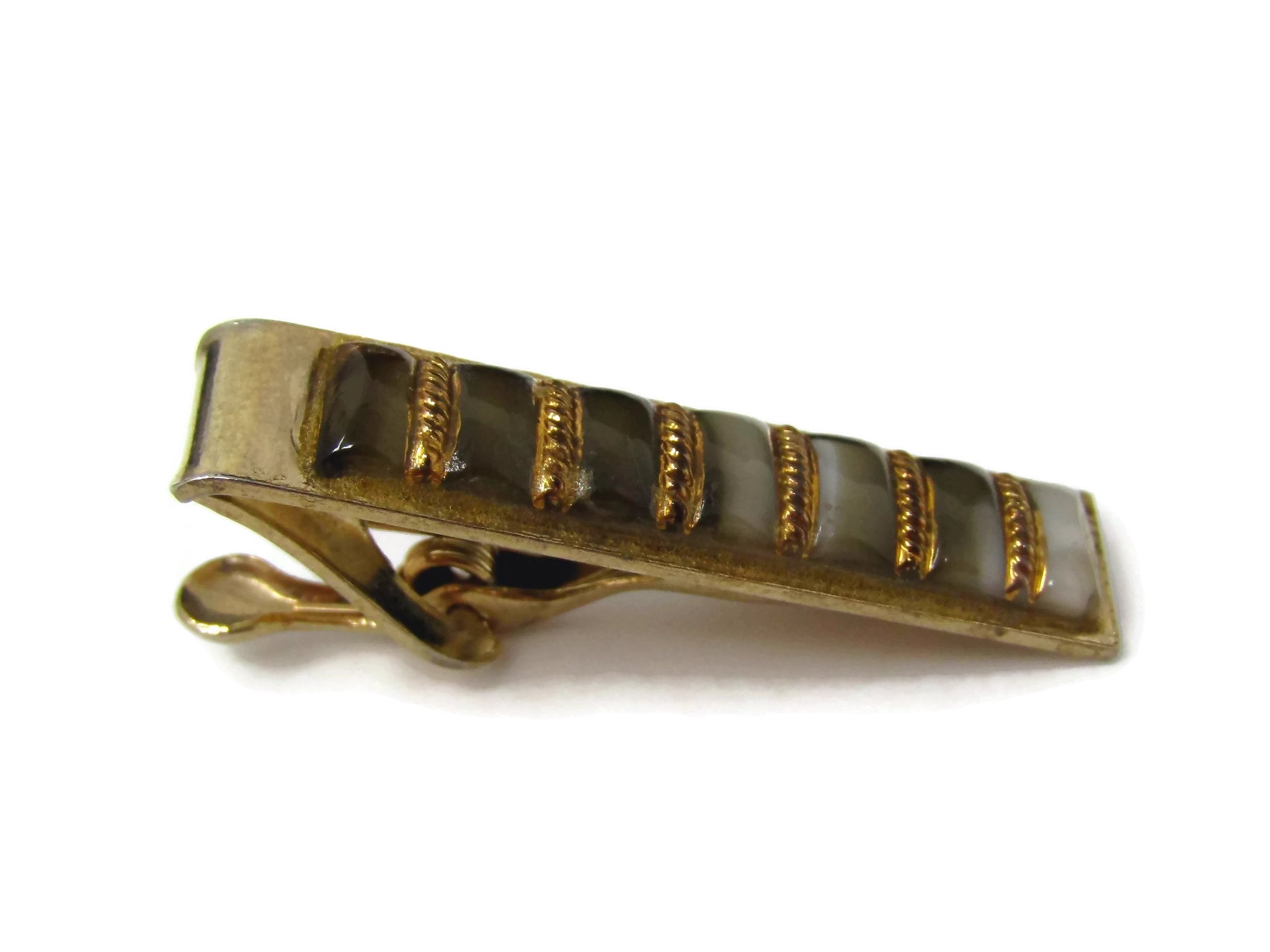Vintage Tie Clip Tie Bar: Banded Stripe Glass Design