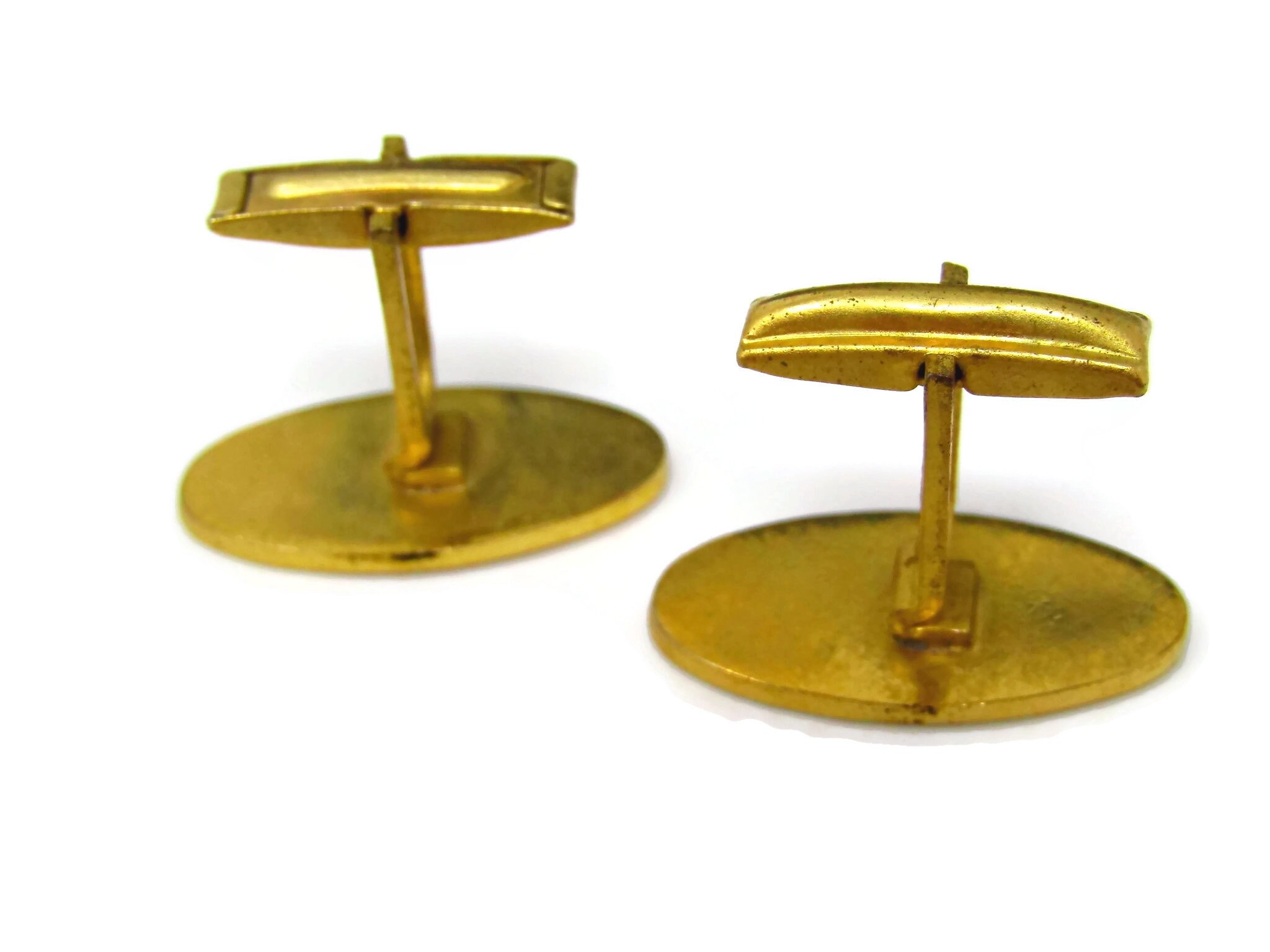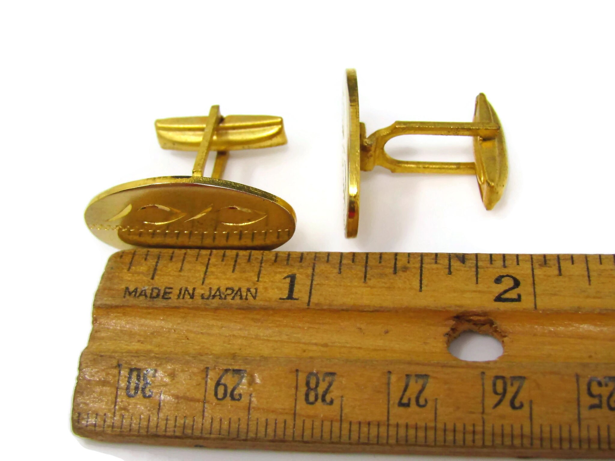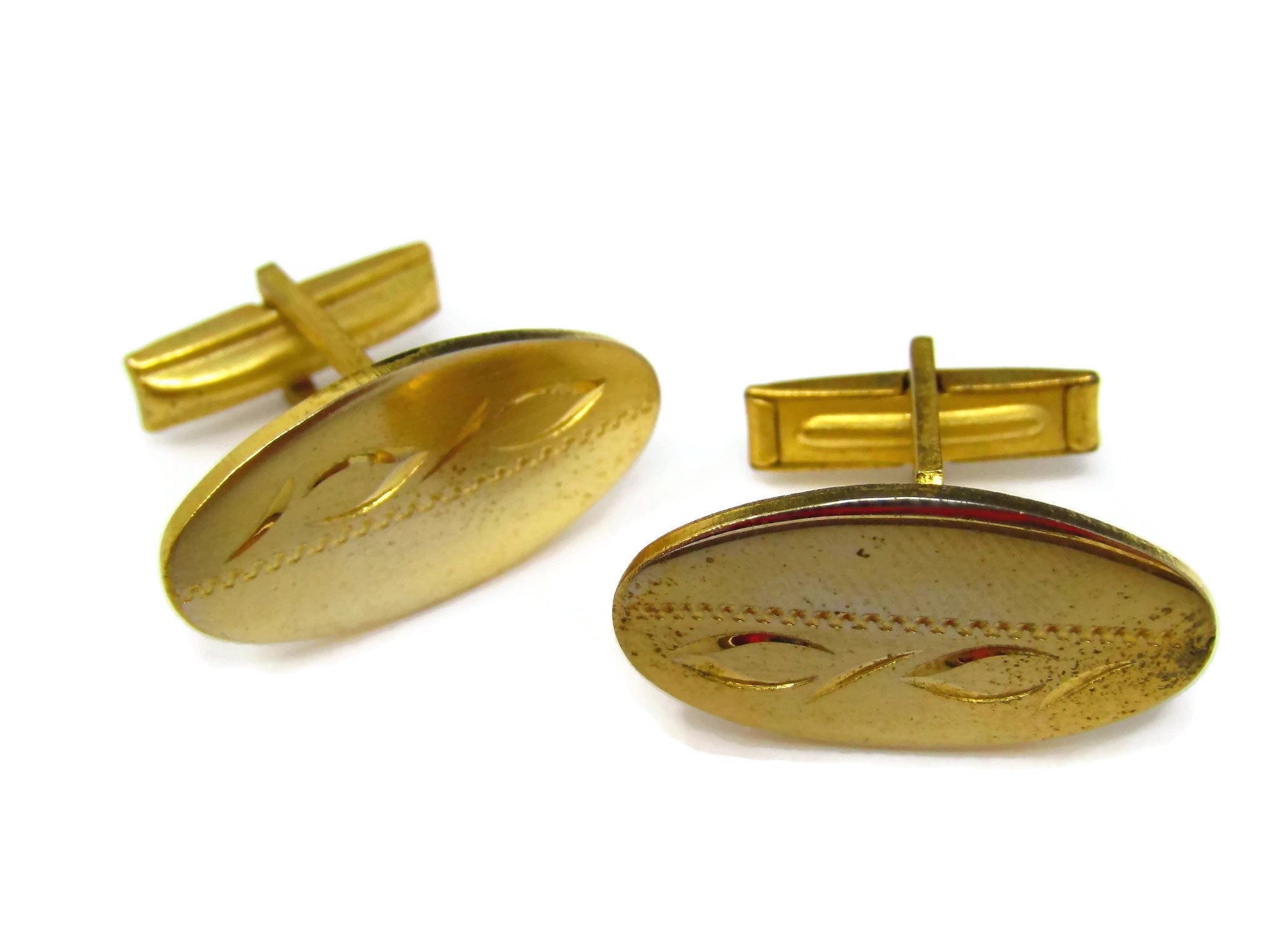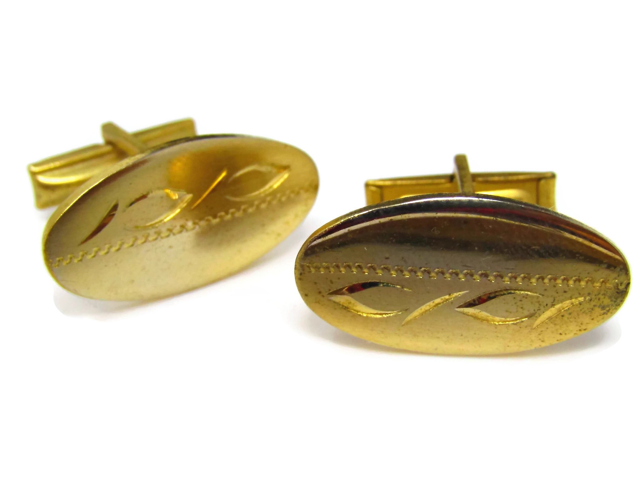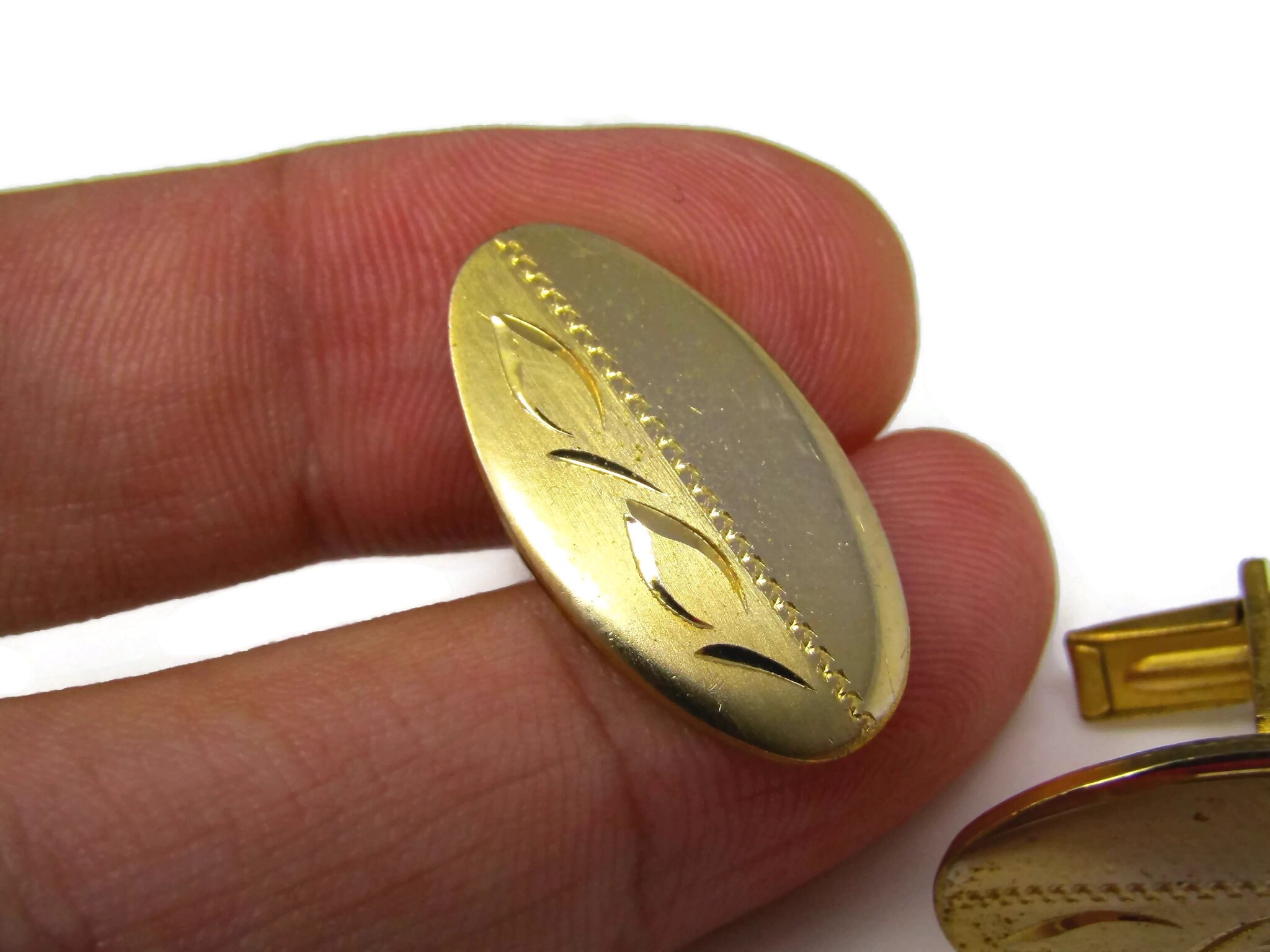 Vintage Cufflinks for Men: Leaf Etch Gold Tone Ovals