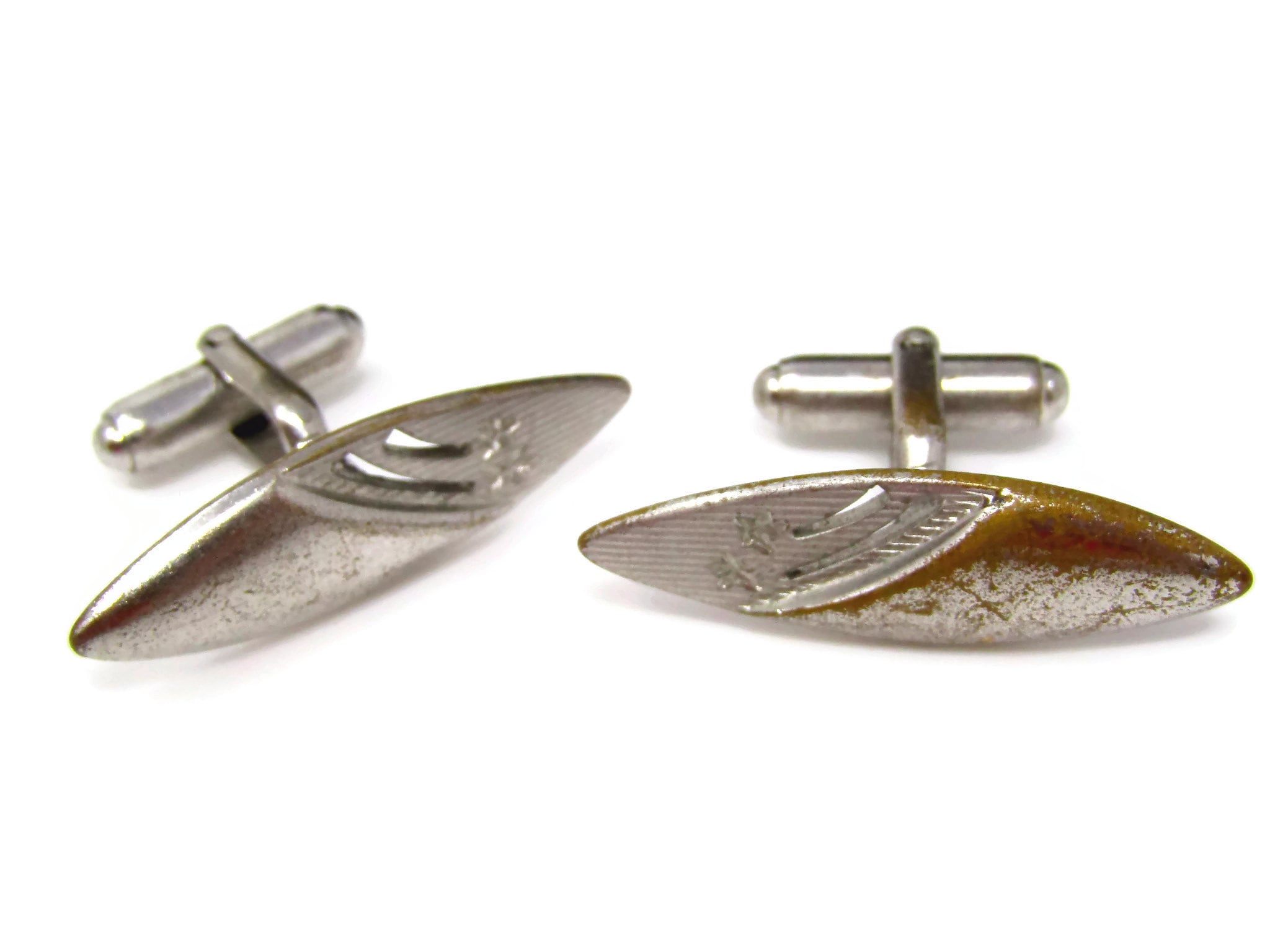Vintage Cufflinks for Men: Shooting Star Retro Design & Patina Silver Tone