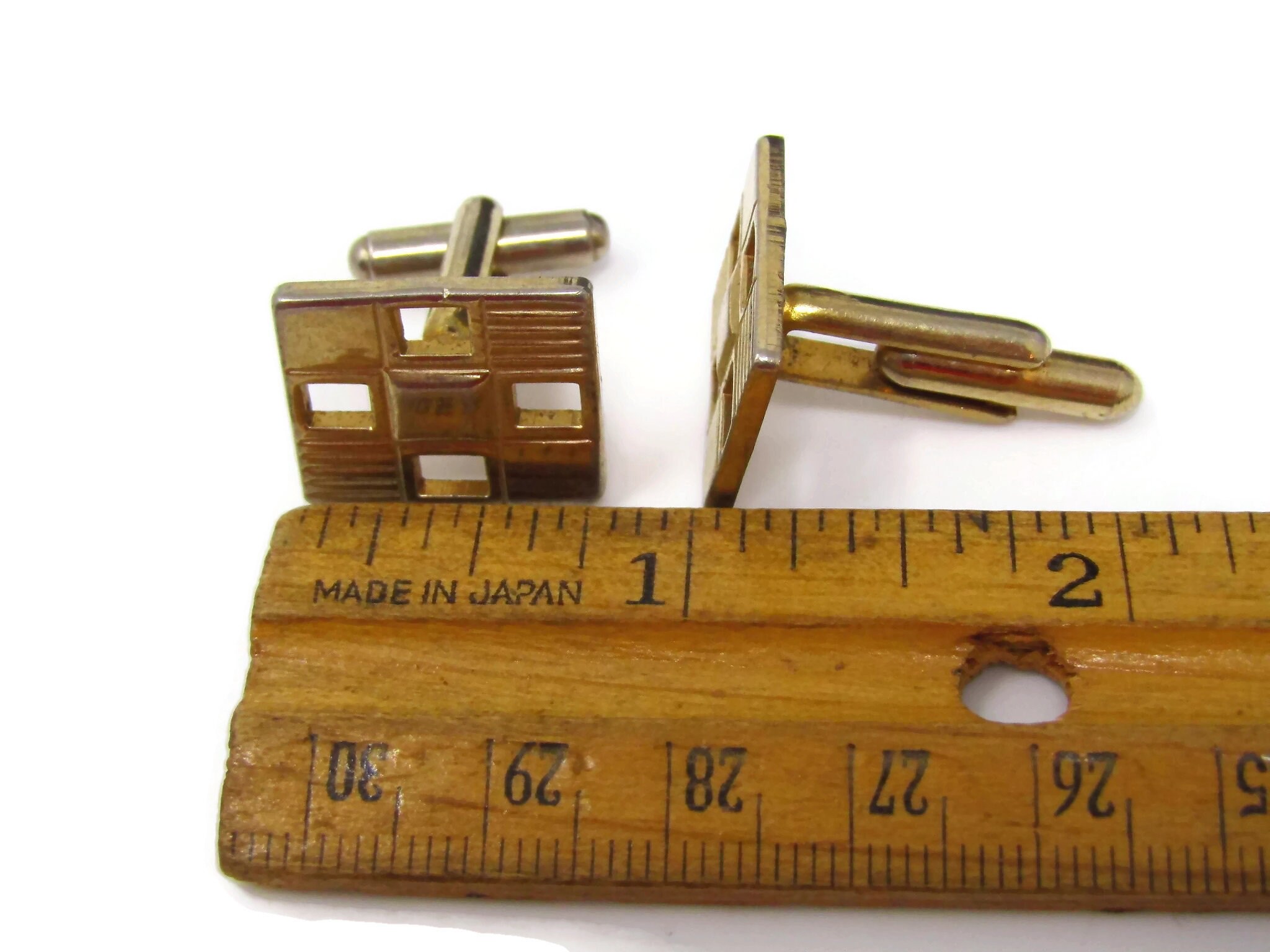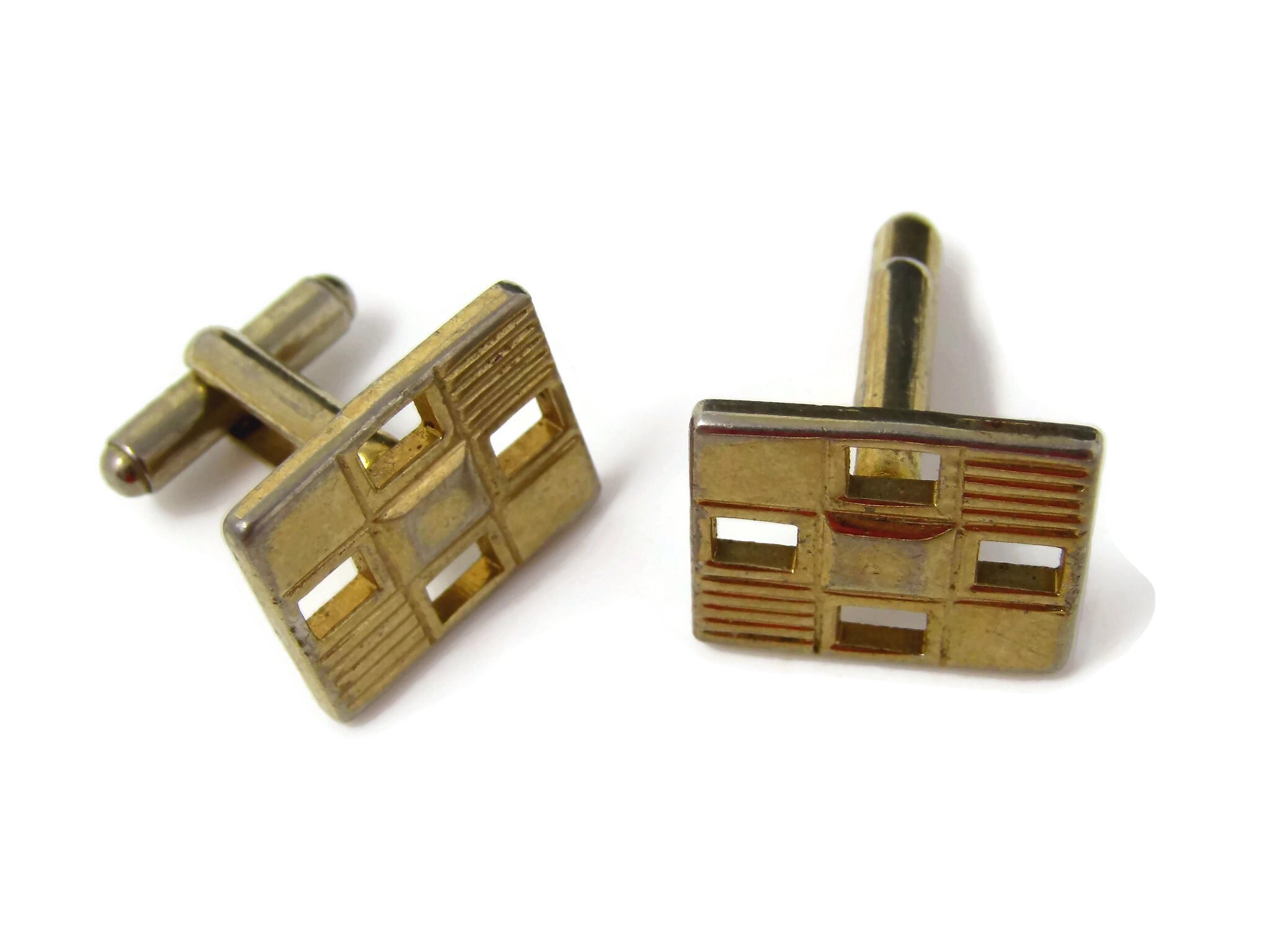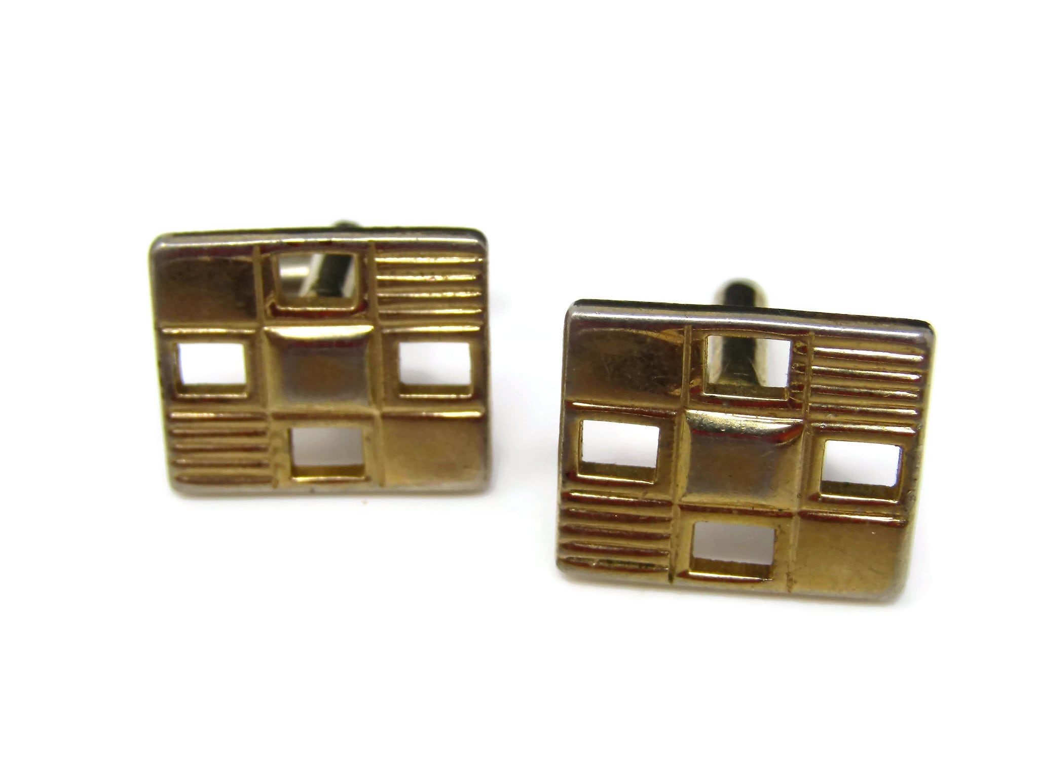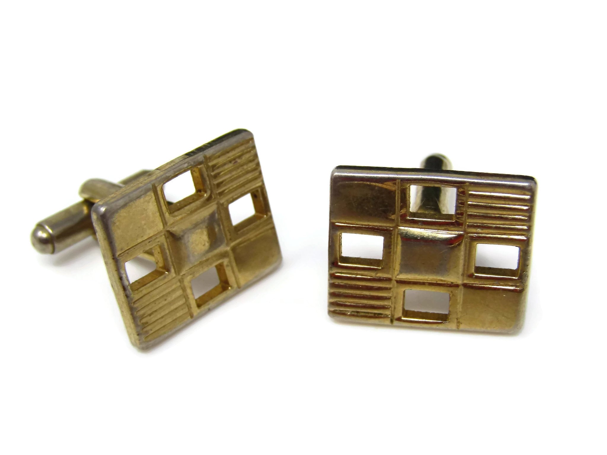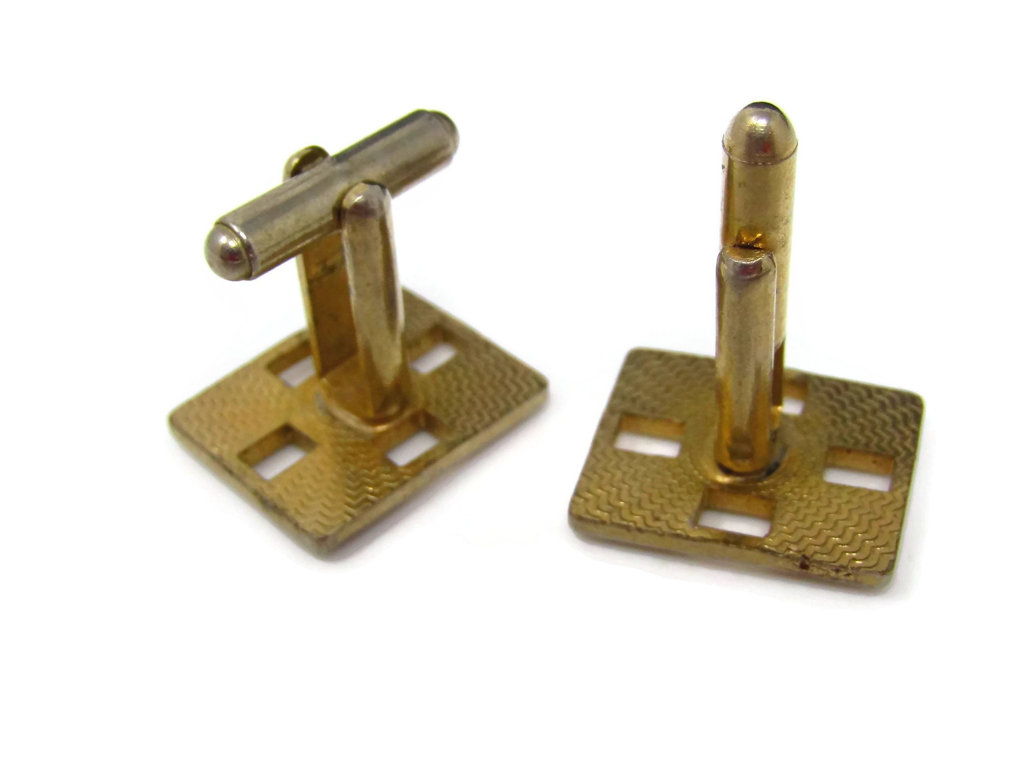Vintage Cufflinks for Men: Checkered Design Open Squares Nice Gold Tone