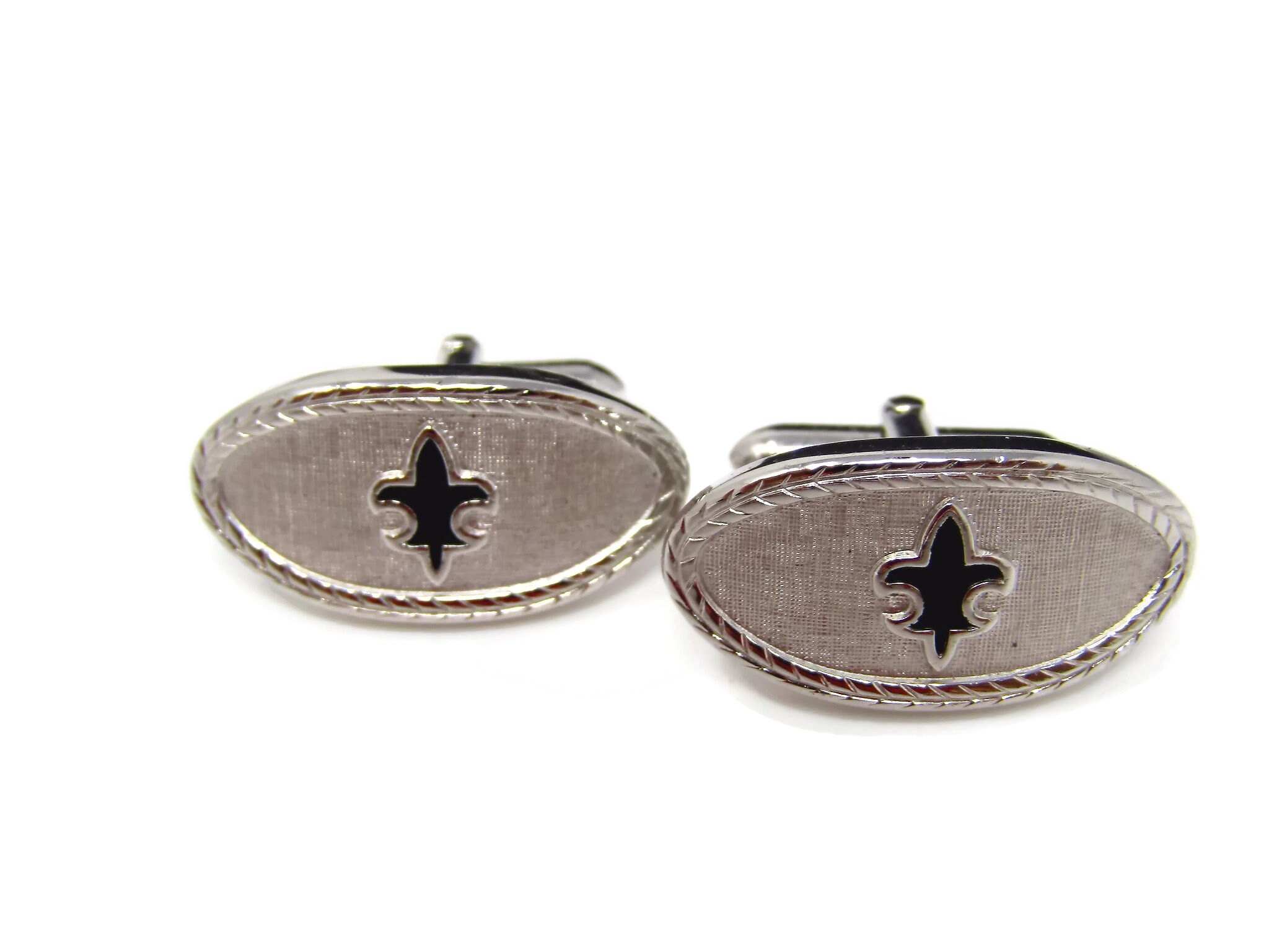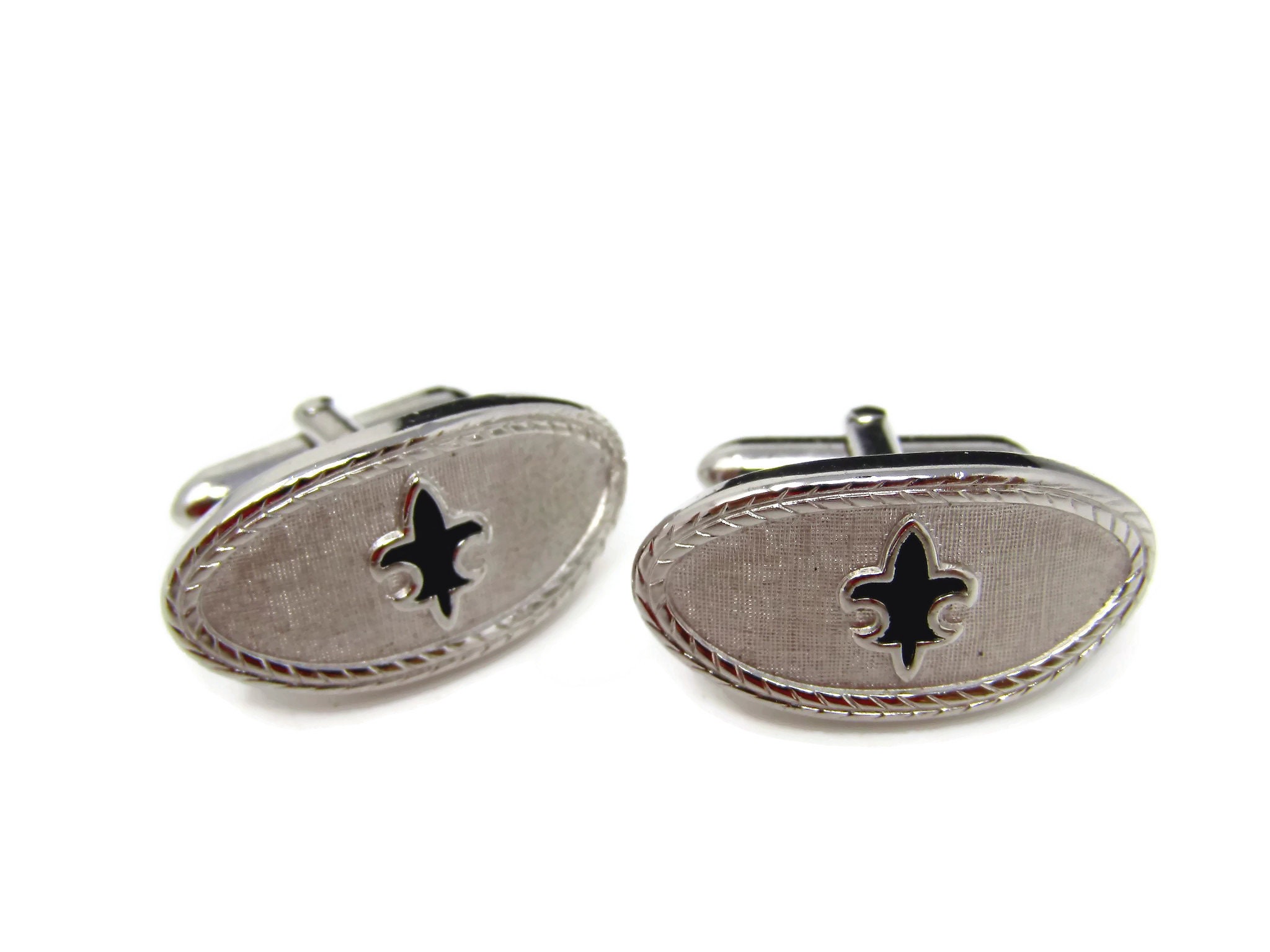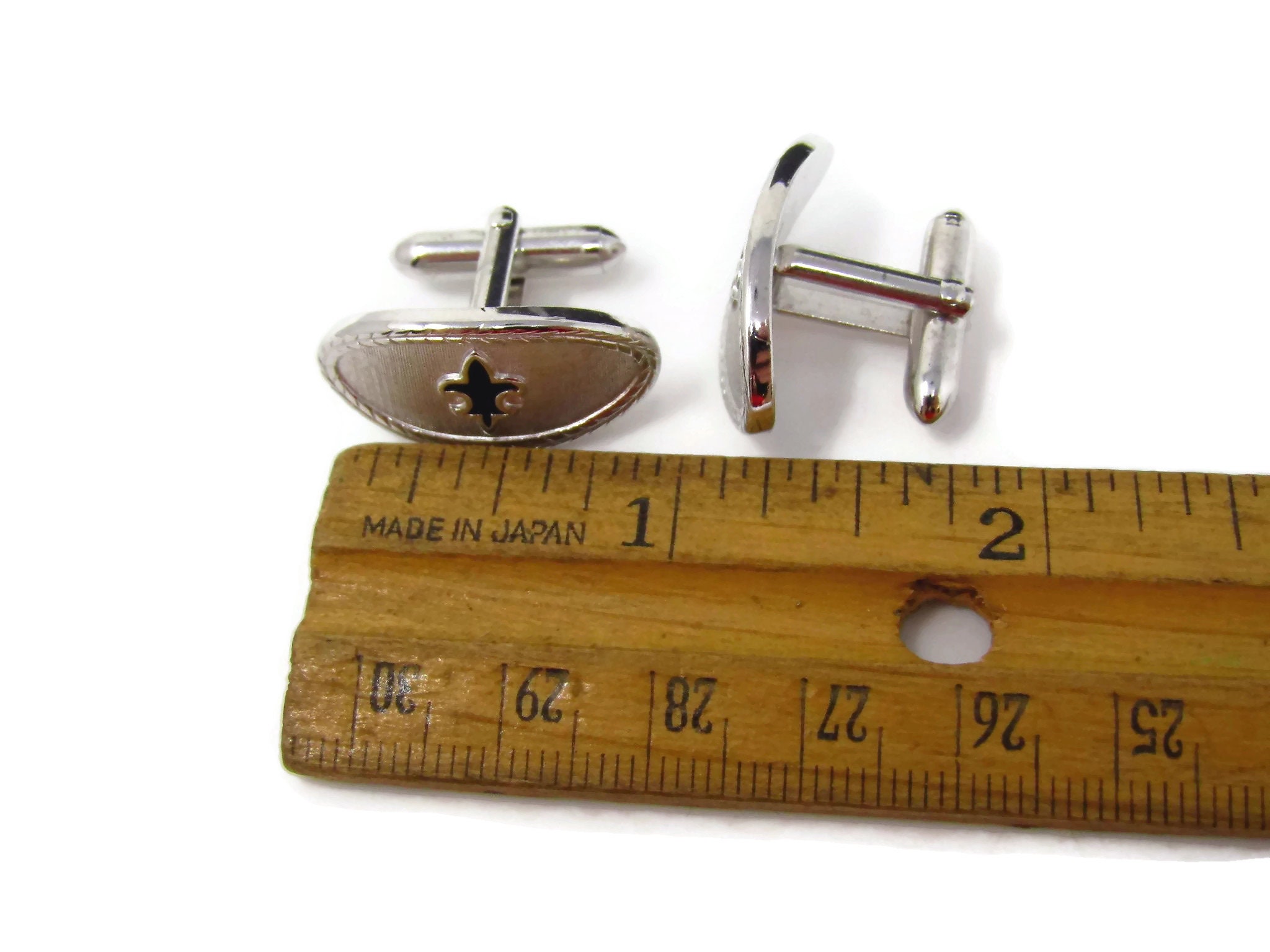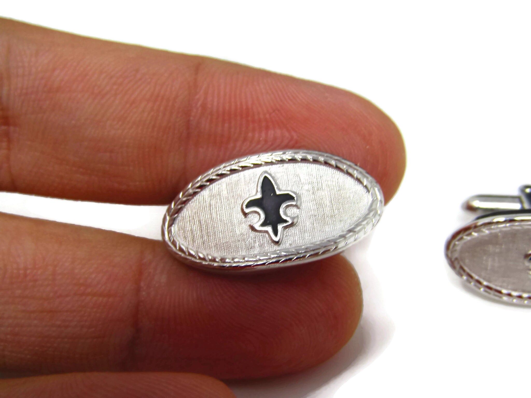 Vintage Cufflinks for Men: Fleur De Lis Lily Beautiful Textured Silver Tone