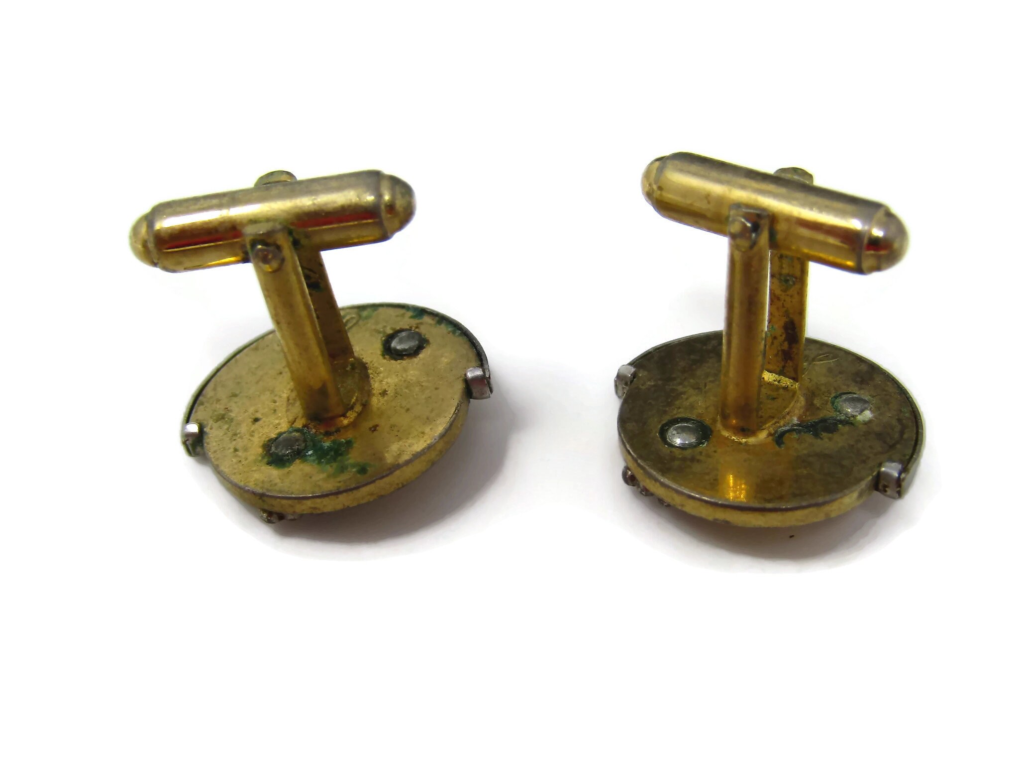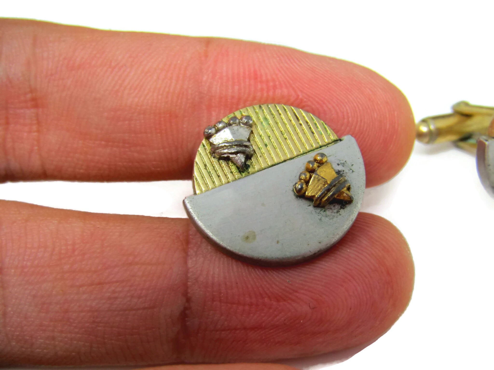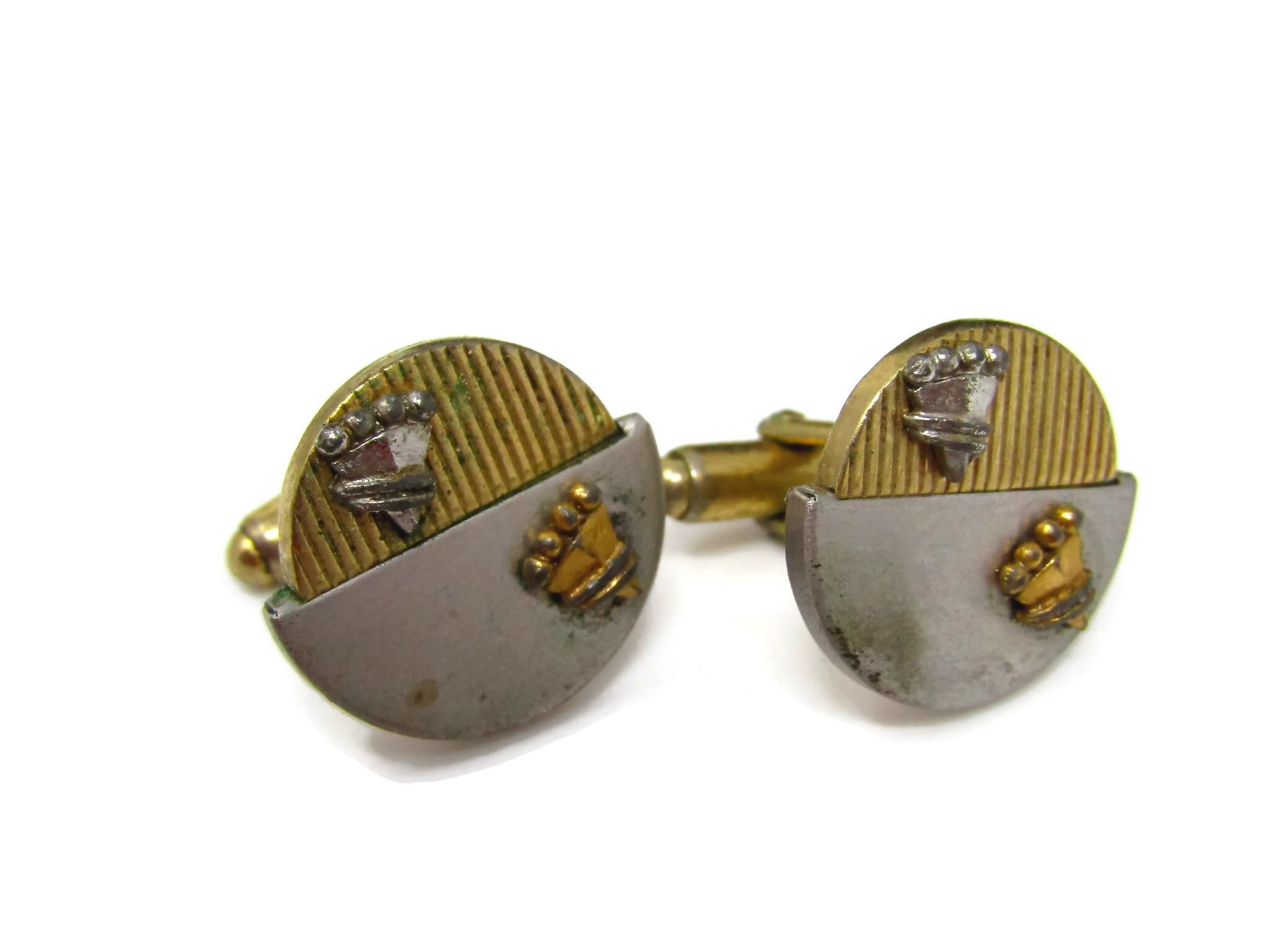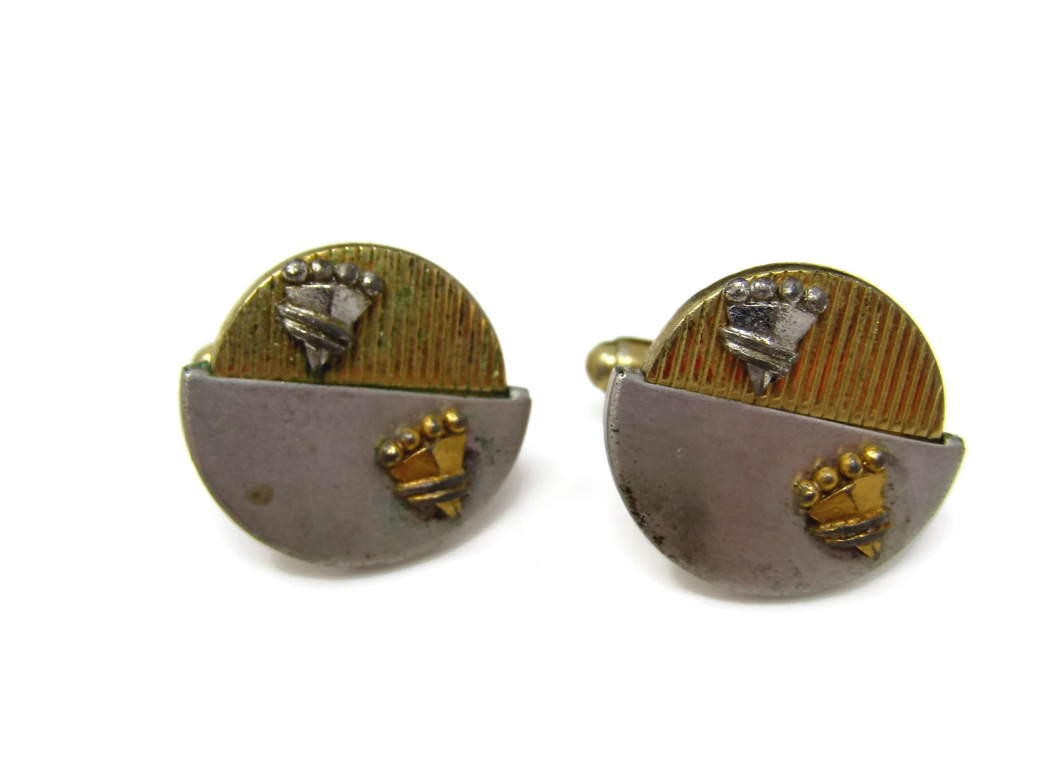 Vintage Cufflinks for Men: Double Shield Art Deco Half Silver Tone Half Gold Tone