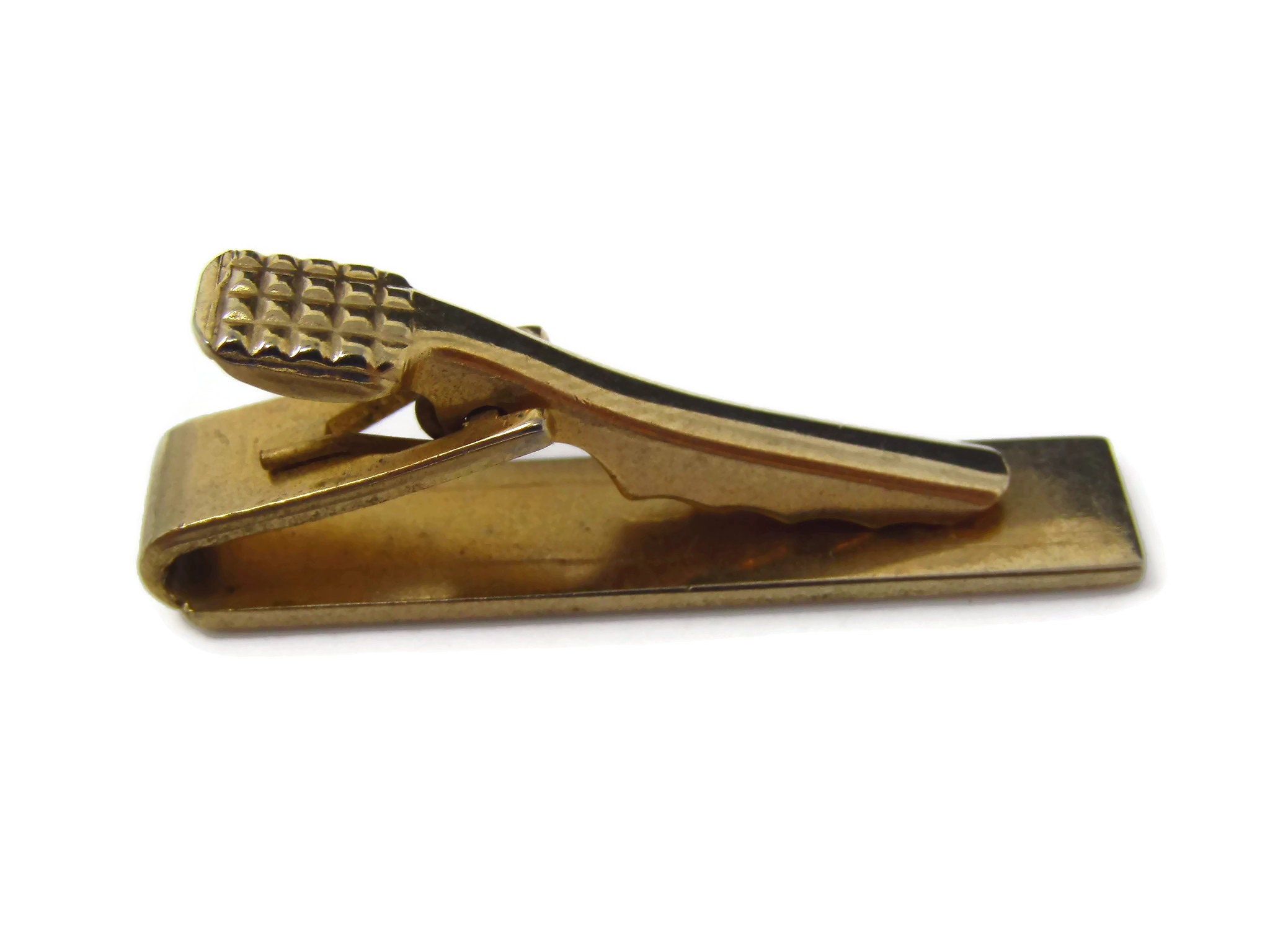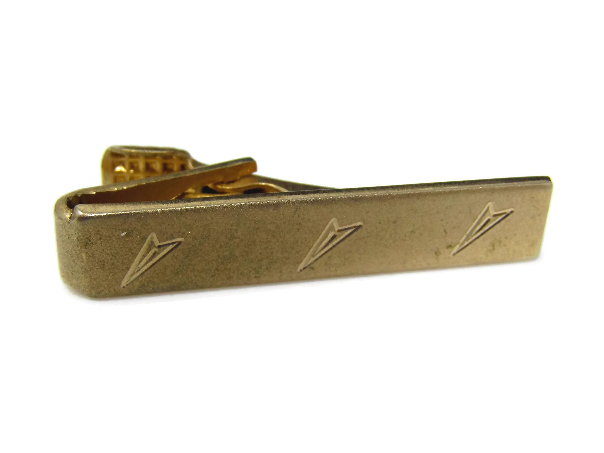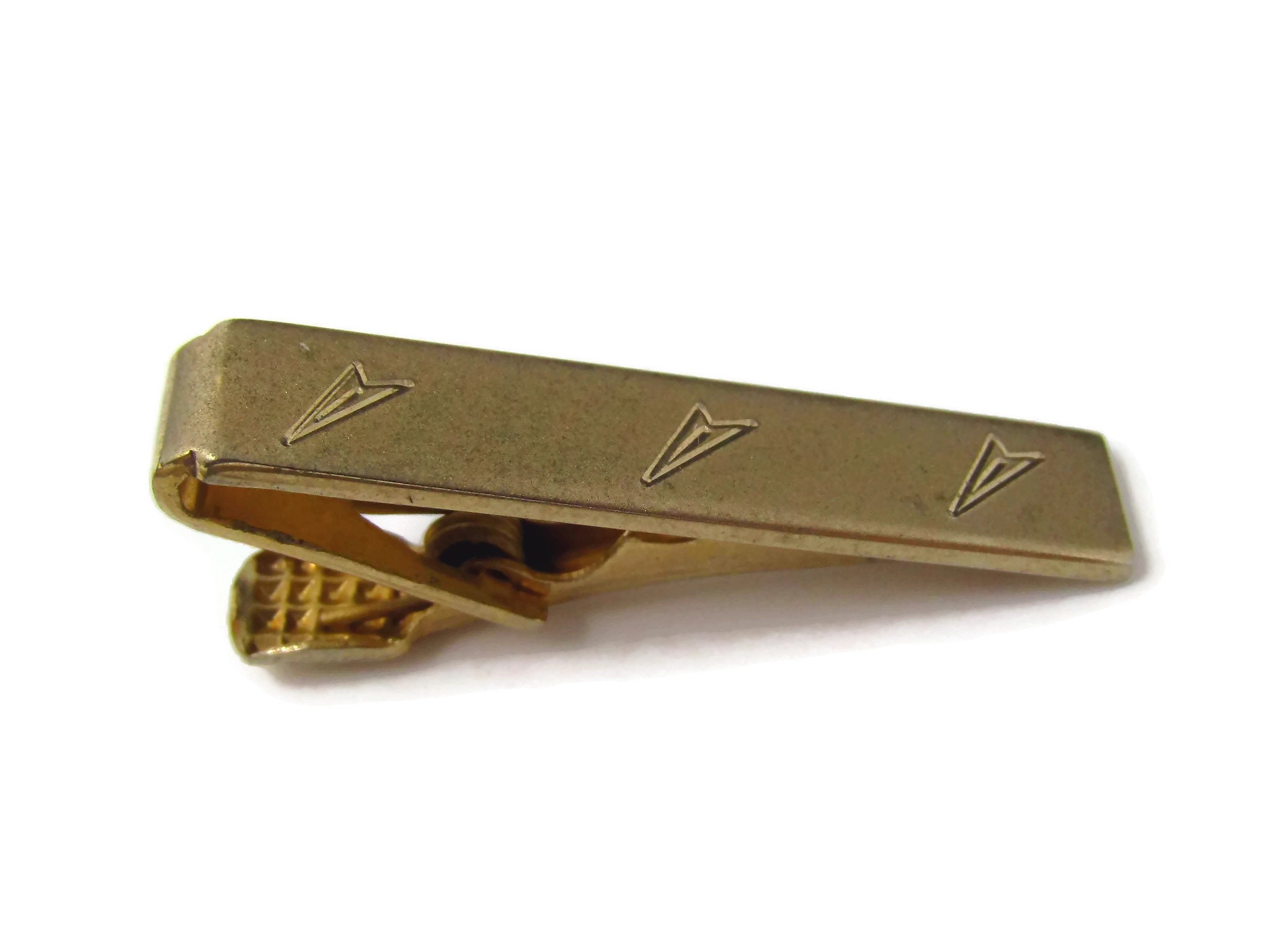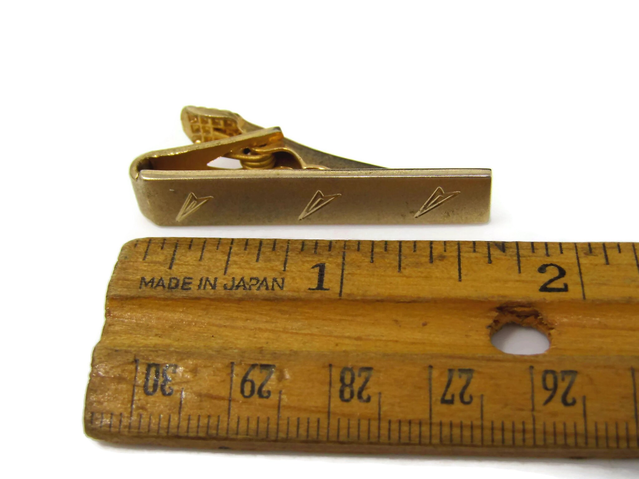 Vintage Tie Clip Tie Bar: Triple Etched Arrow Chevron Shape Nice Gold Tone