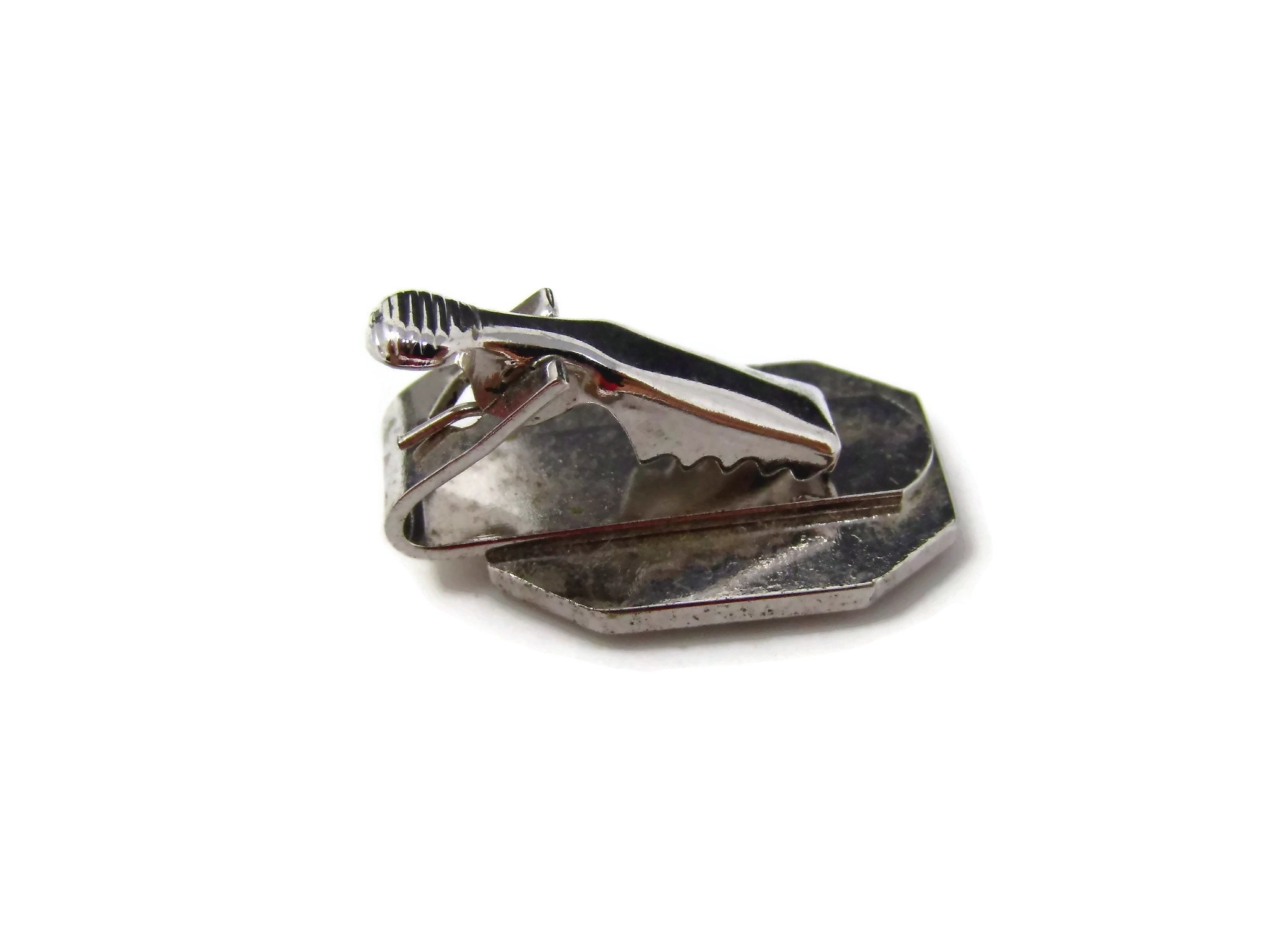 Vintage Tie Clip Tie Bar: Octagonal Silver Tone Nice Design