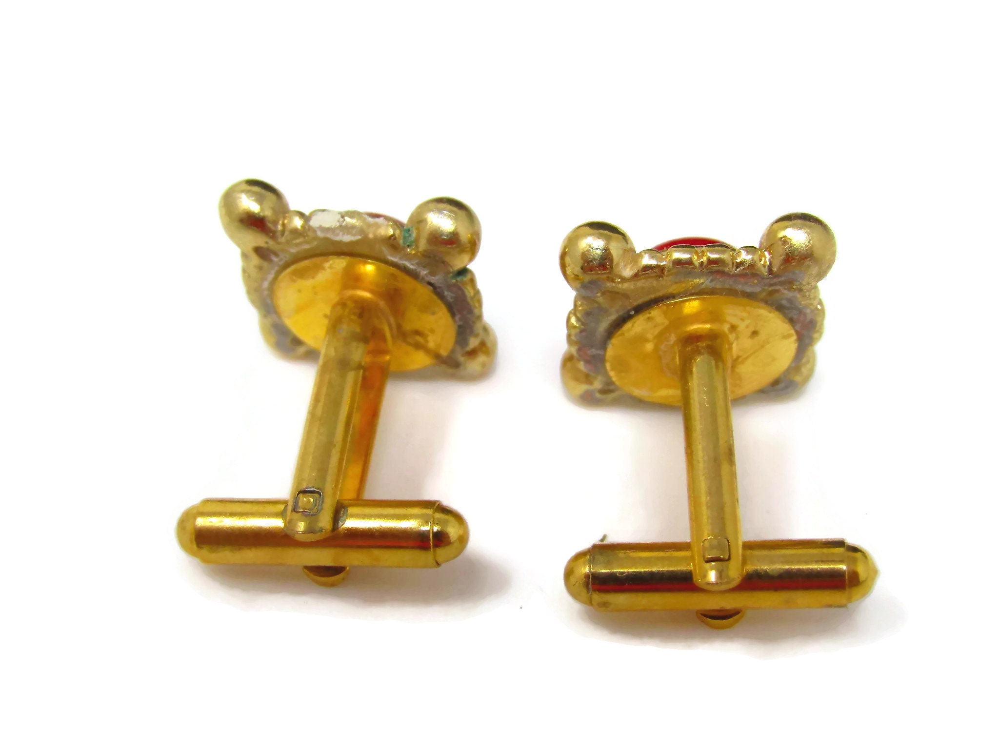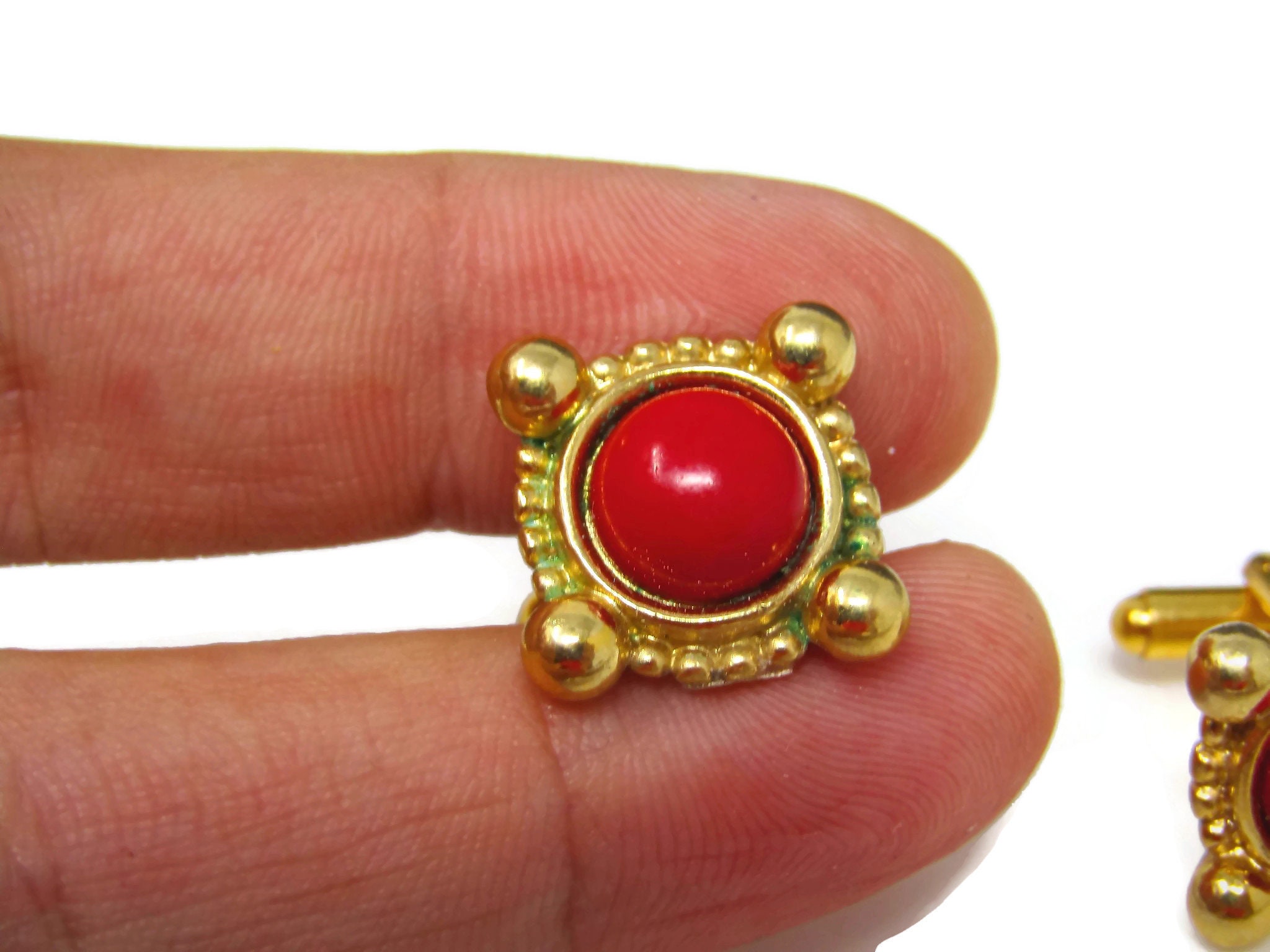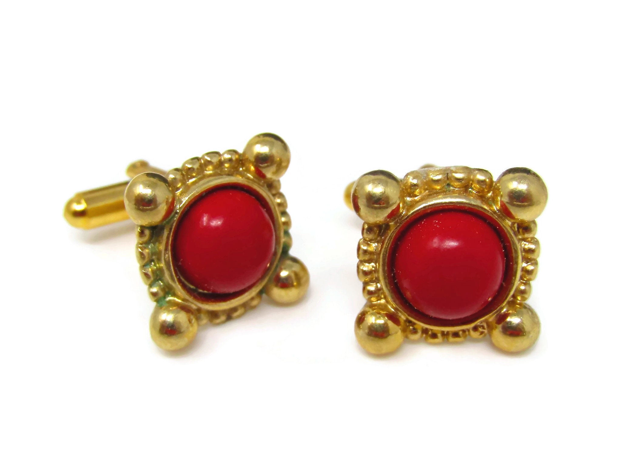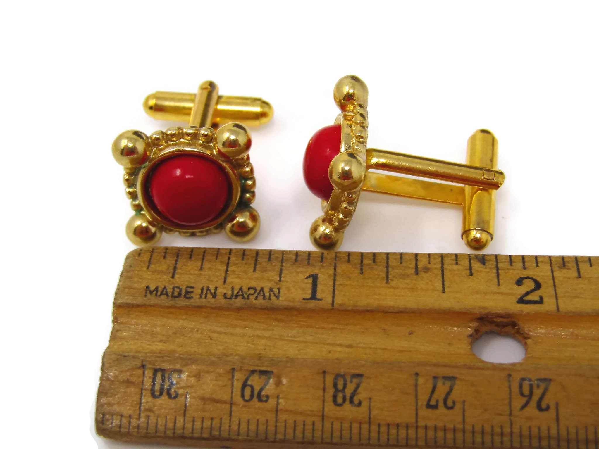 Vintage Cufflinks for Men: Red Round Center Excellent Setting Gold Tone